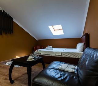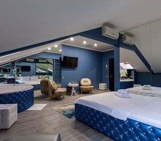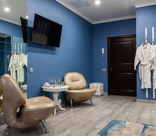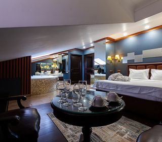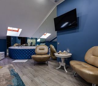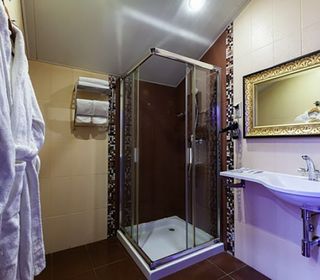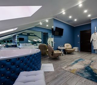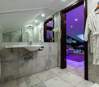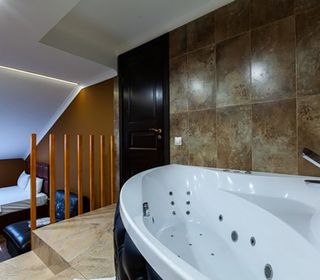 Номер люкс с большой гидромассажной ванной подарит незабываемый отдых. Теплая вода улучшает кровоснабжение, позволяя расслабиться и забыть обо всем на свете. От усталости не останется и следа после сеанса гидромассажа.