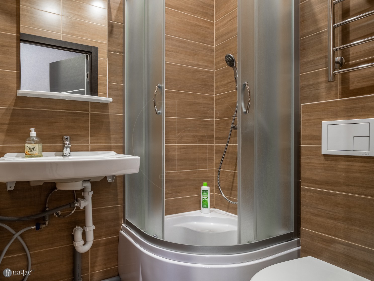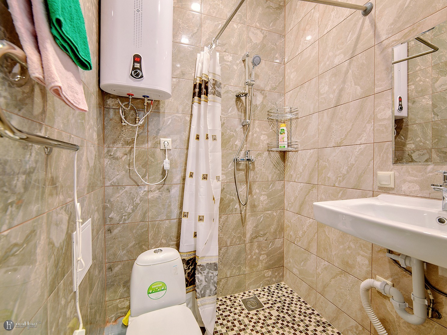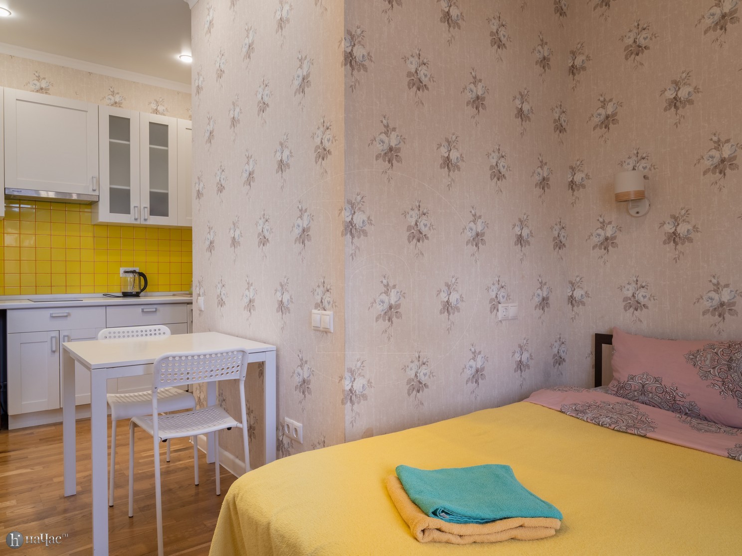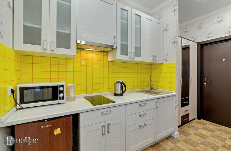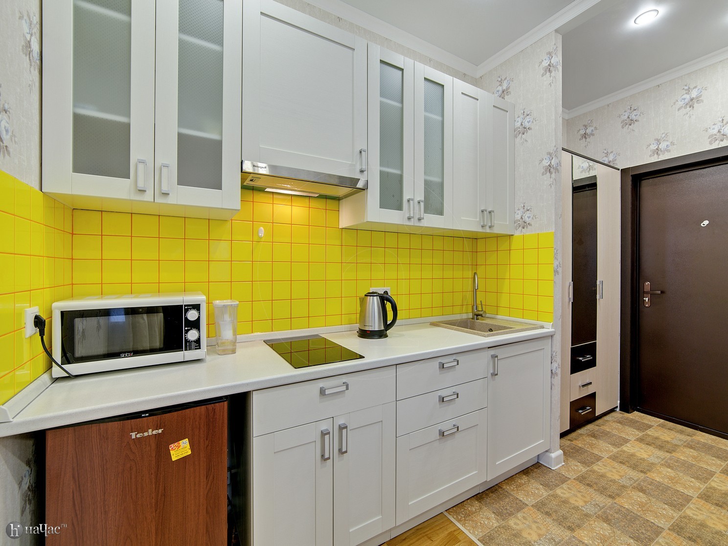 В самой квартире вас ждет уют и функциональность. Здесь есть удобная двуспальная кровать для вашего отдыха. Wi-Fi и телевизор обеспечат развлечение и связь. На кухне вы найдете все необходимое: чайник, холодильник, микроволновая печь. В апартаментах имеется стиральная машина, утюг, фен — все для вашего комфорта.