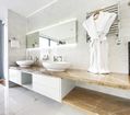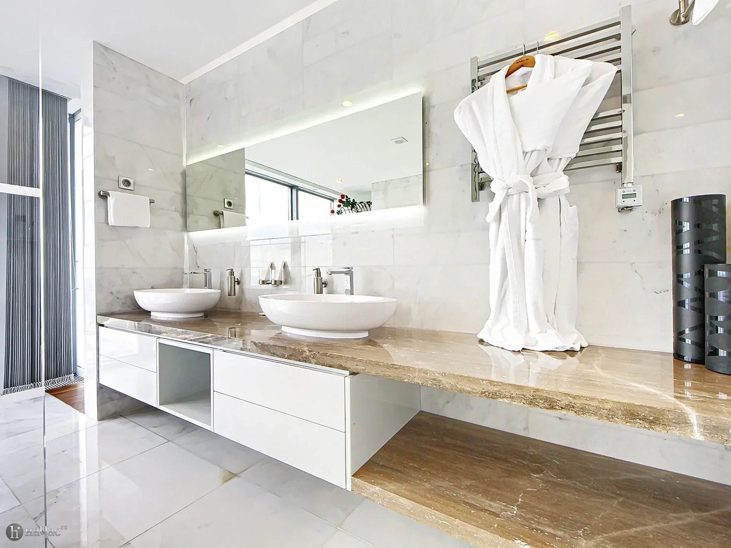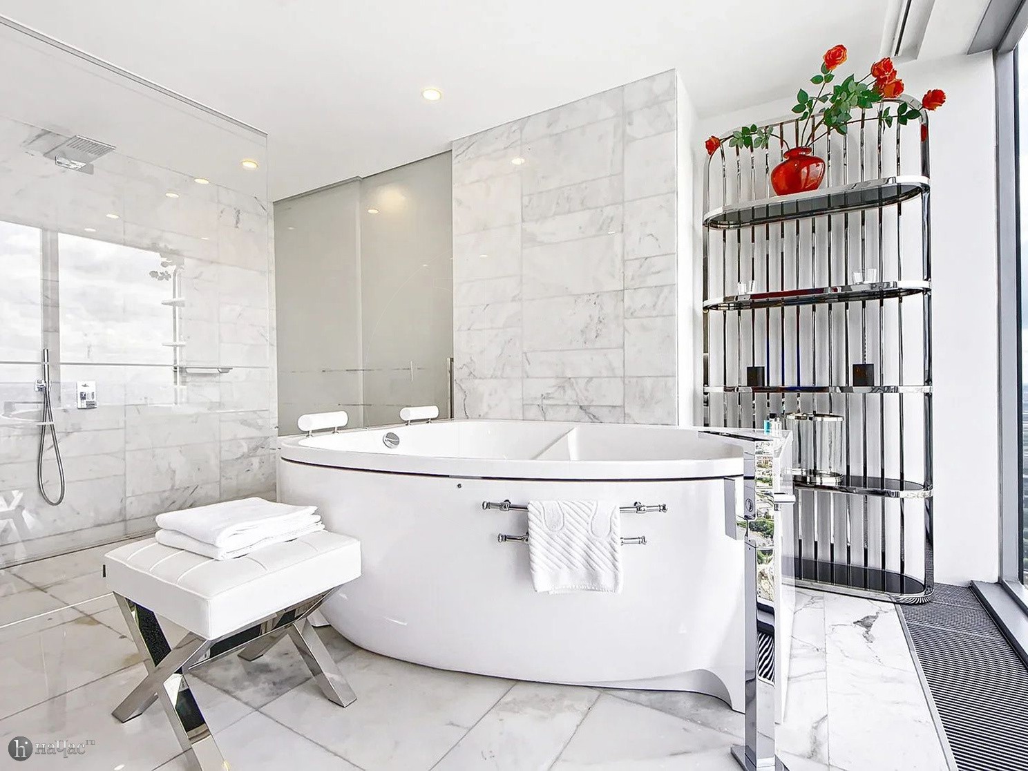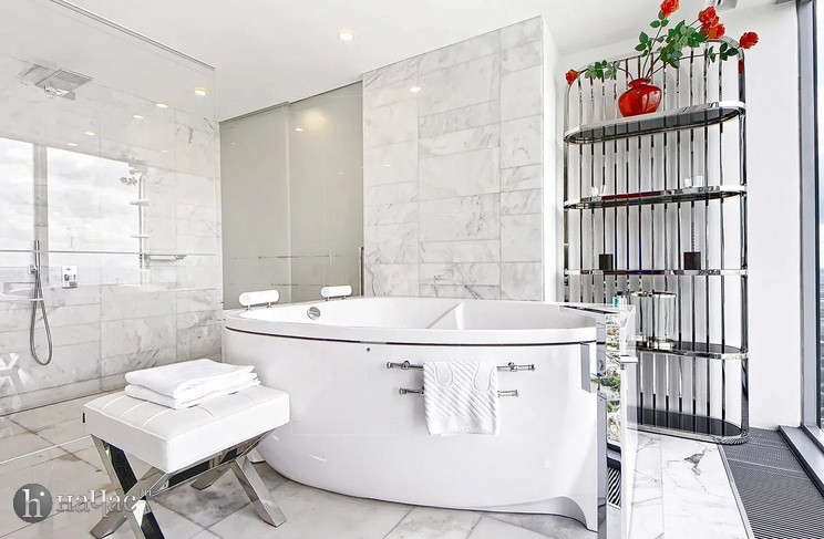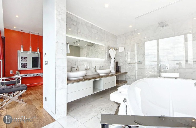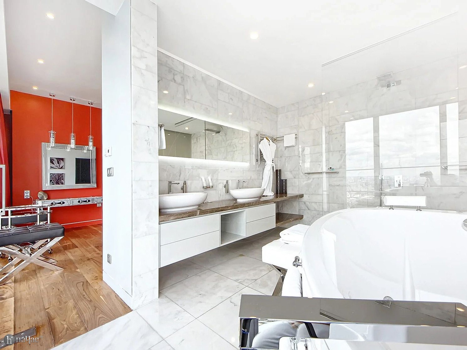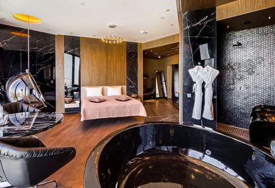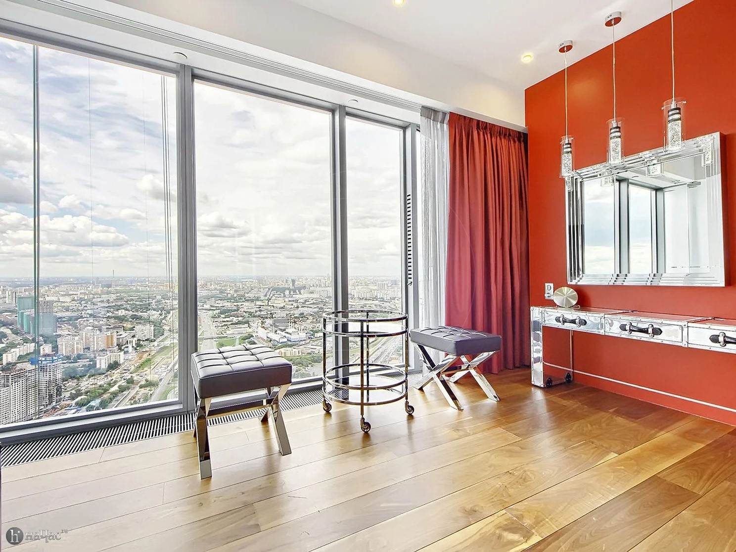 Центром притяжения, без сомнения, становится роскошное панорамное джакузи, в который так приятно погрузиться, глядя на вечерние огни города, уходящие к самому западу столицы. После можно ополоснуться под тропическим душем, ощущая всю мощь водяных струй. А чтобы ничто не отвлекало от отдыха, в вашем распоряжении вся необходимая техника: огромный 85-дюймовый Смарт ТВ для настоящего кинопоказа, безупречная акустика Harman Kardon для создания идеального саундтрека вашему вечеру, компактная мини-кухня с кофемашиной для утреннего пробуждения и даже стиральная машина с гардеробной для полного ощущения домашнего уюта. Для вашего удобства всегда под рукой планшет службы обслуживания номеров.