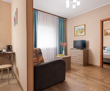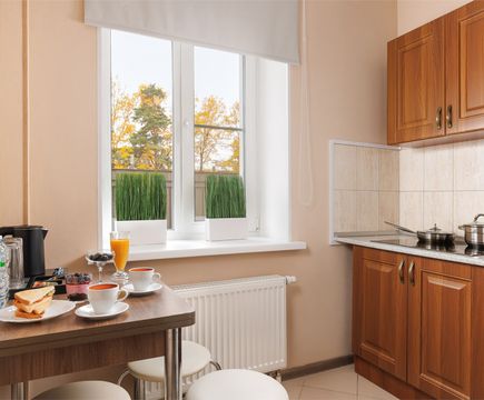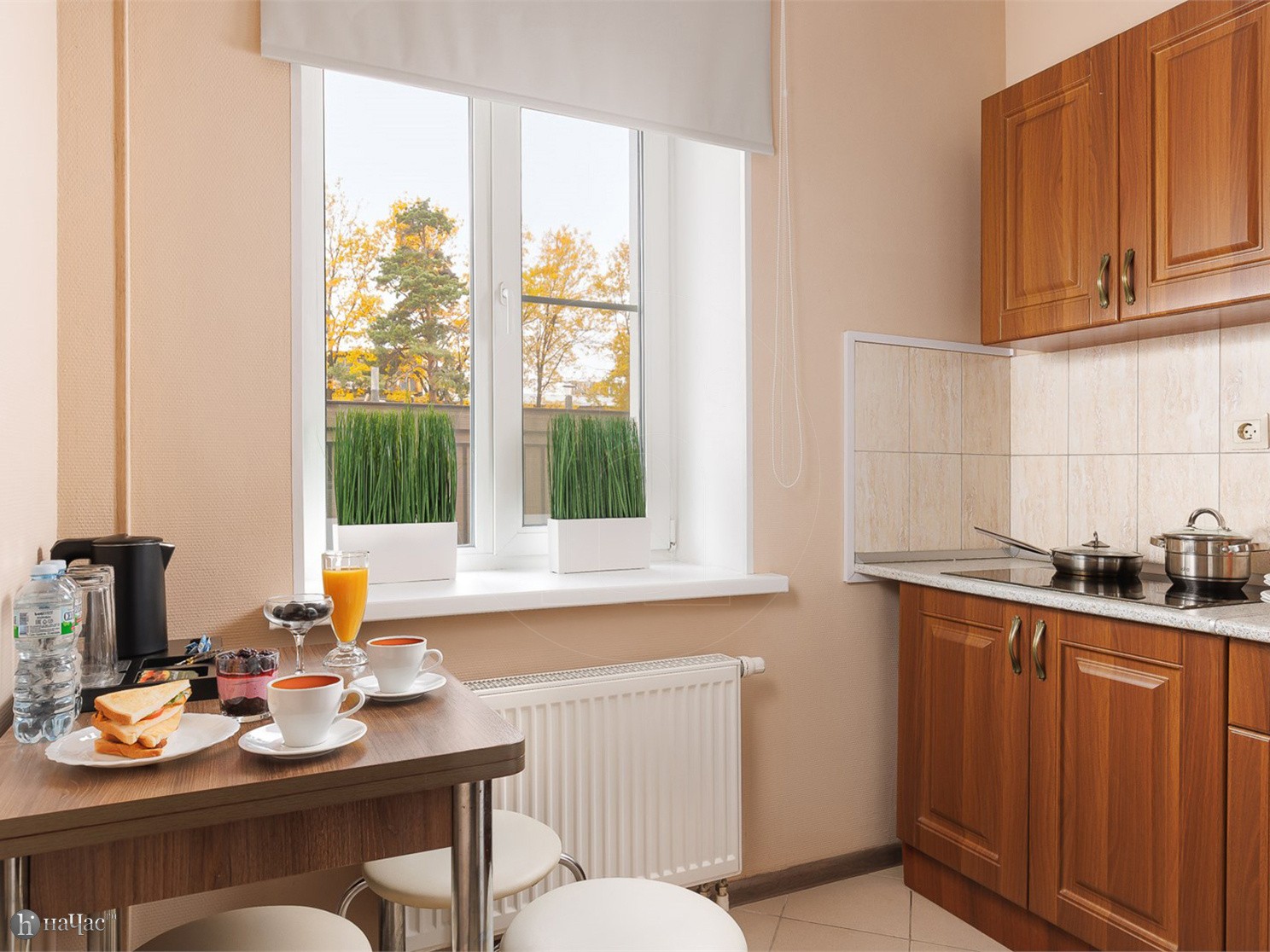 Просторные номера отеля оборудованы всем необходимым для максимально комфортного проживания. Каждые апартаменты включают в себя полностью оснащенную кухню с бытовой техникой, посудой и стиральной машиной, что делает пребывание особенно удобным для корпоративных клиентов и семей.