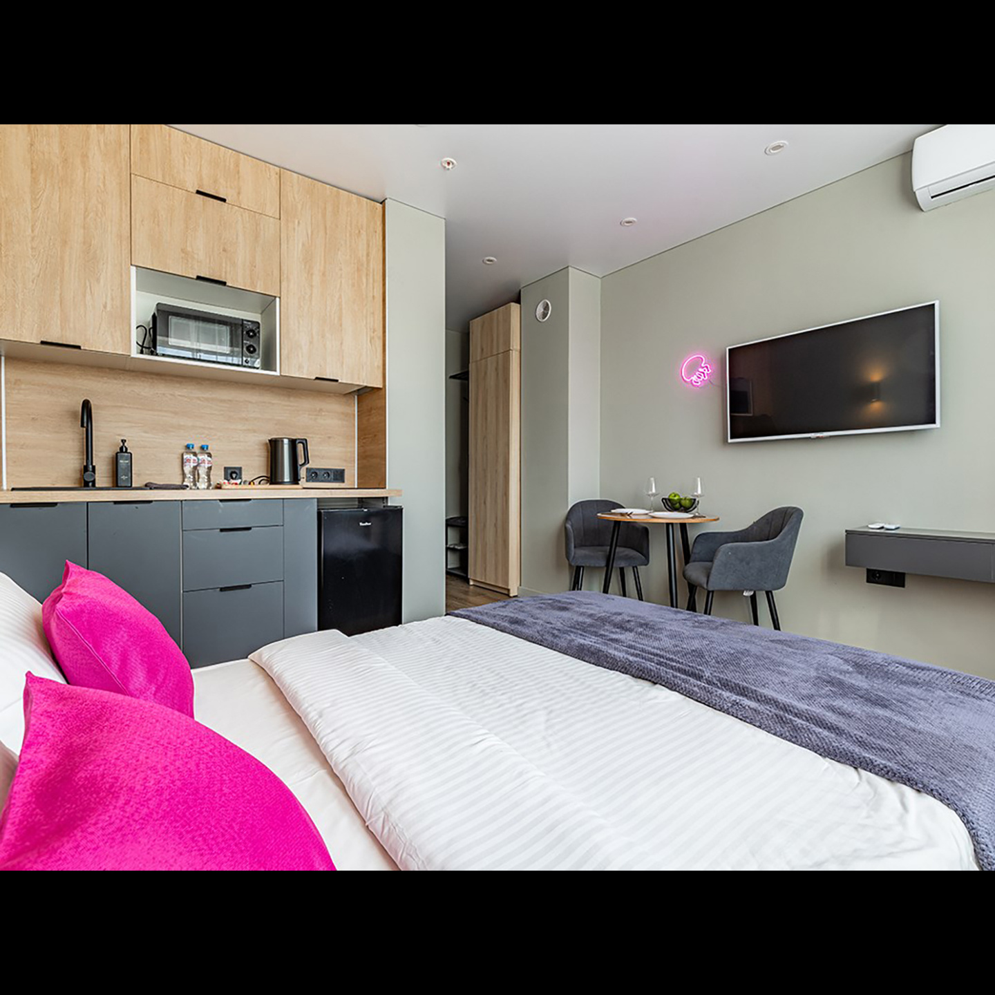 Эти уютные студии предлагают современный дизайн и функциональность, создавая атмосферу тепла и уюта. Здесь вы сможете насладиться бесконтактным заселением, что делает процесс вашего размещения быстрым и беззаботным. Забудьте о лишних хлопотах — всё продумано для максимального удобства.