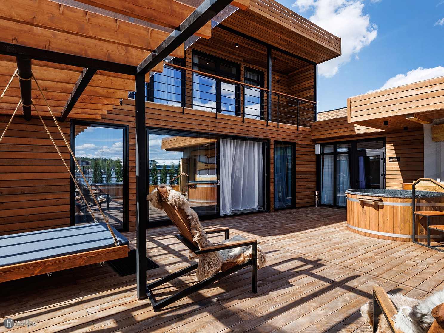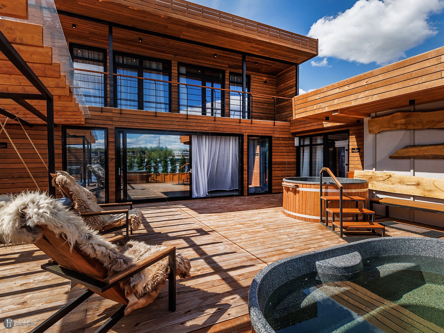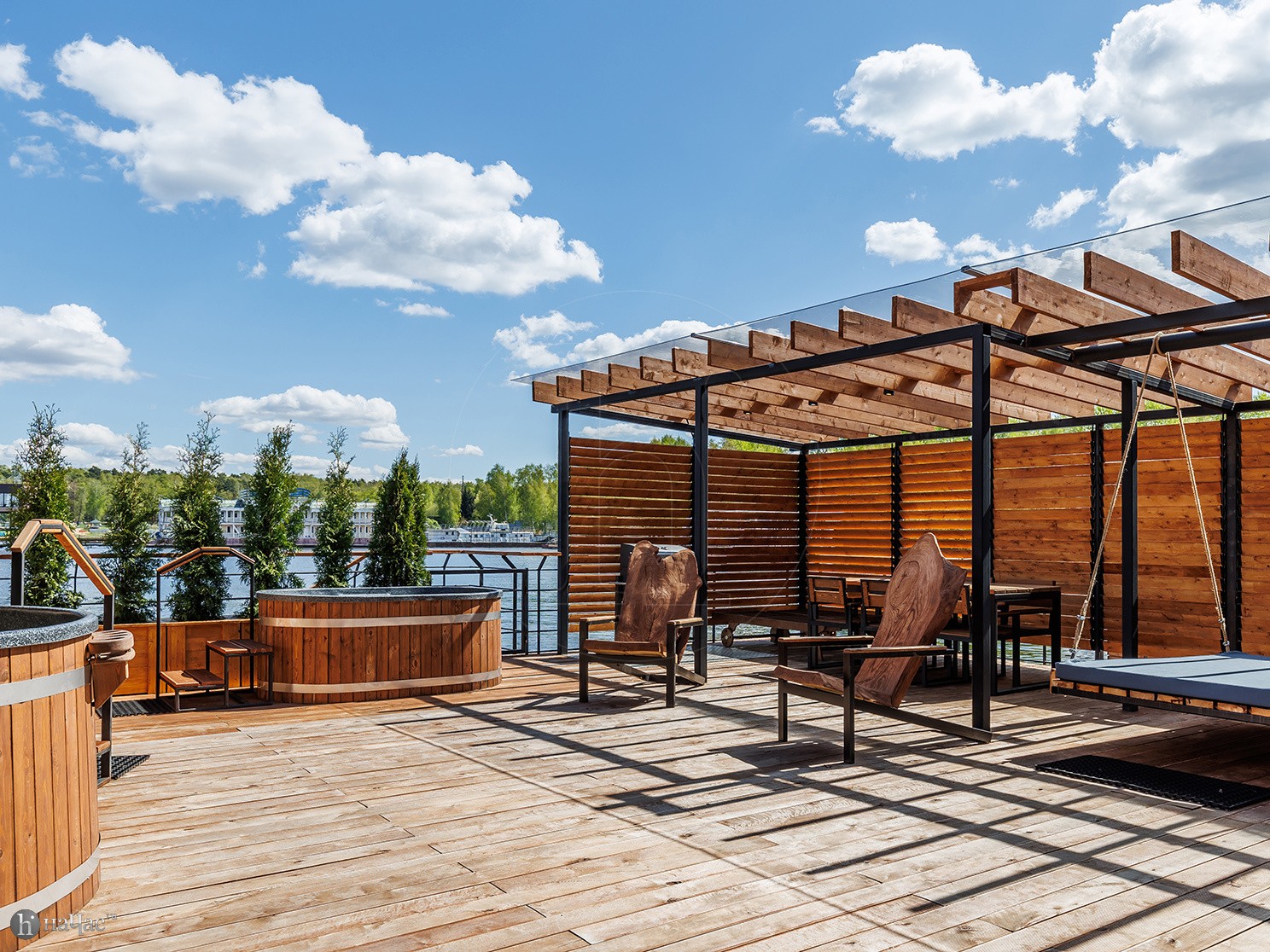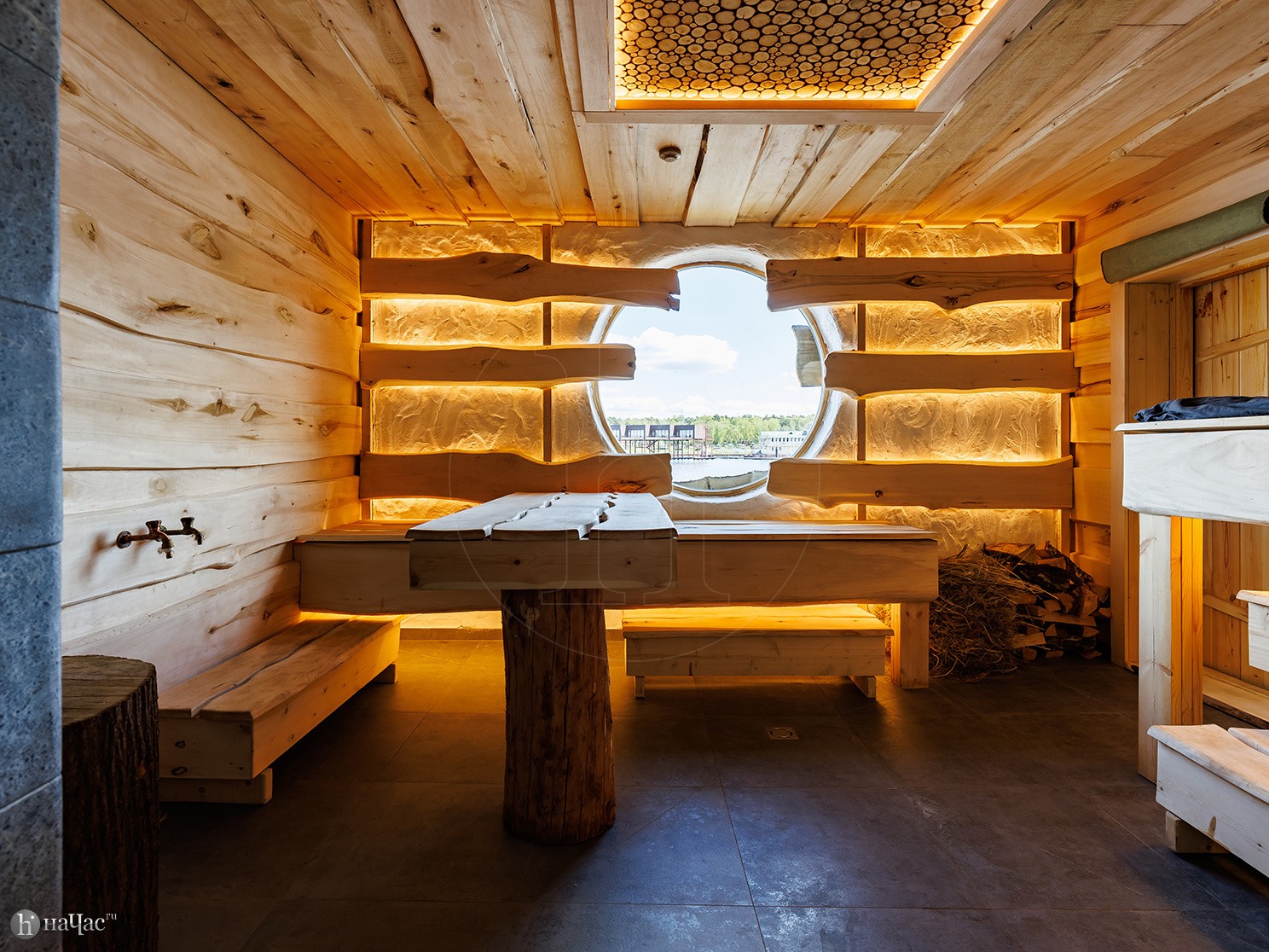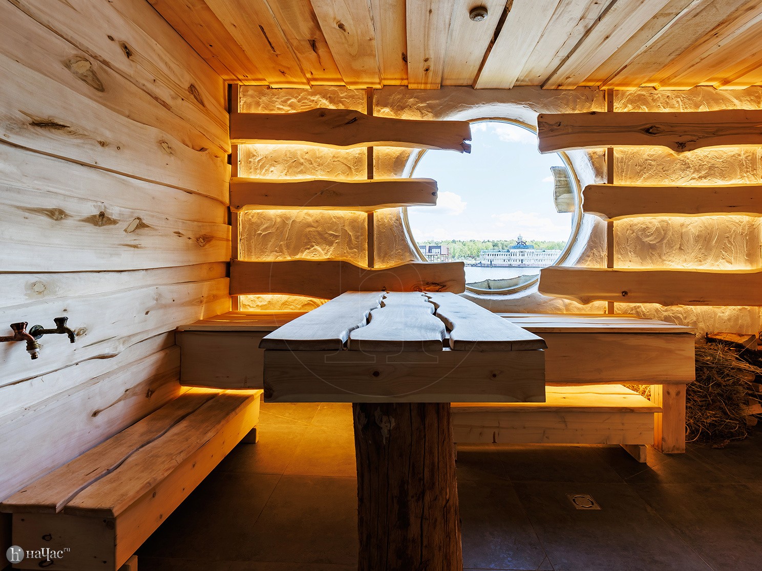 Каждый коттедж в комплексе «Адмирал» оборудован собственной баней, где вы сможете погрузиться в атмосферу настоящего русского парения. Отдохните и расслабьтесь, наслаждаясь парной и приятными ароматами трав. После этого, на террасе с видом на воду, вы сможете погрузиться в холодную или горячую купели, расслабиться на сенных качелях или приготовить свежий барбекю.