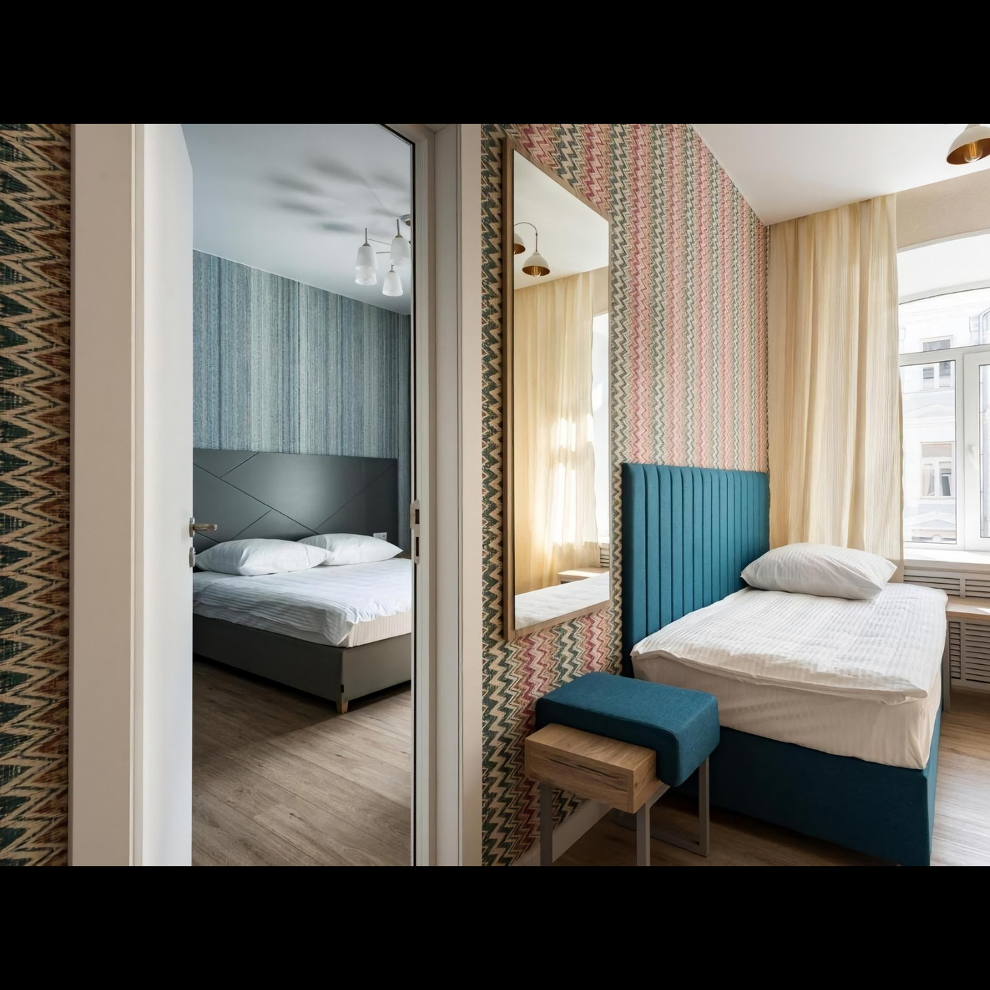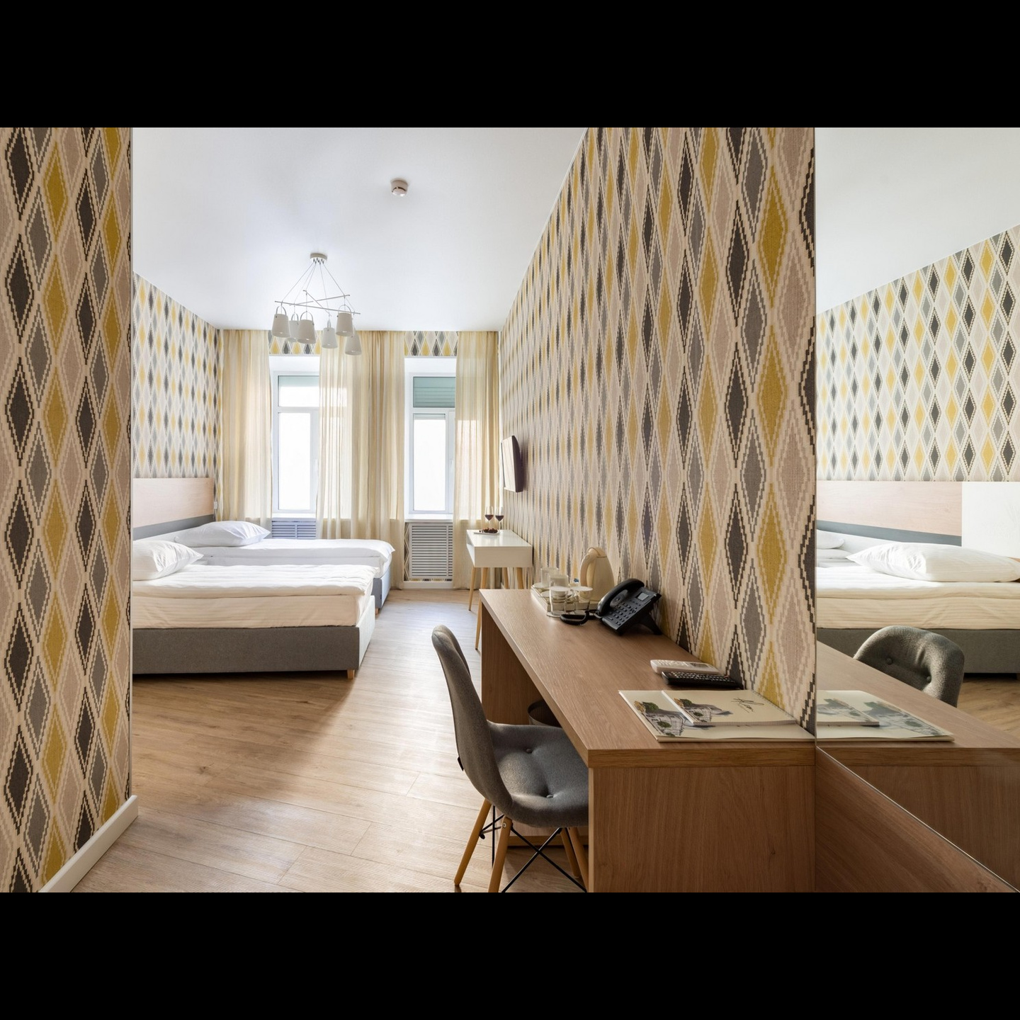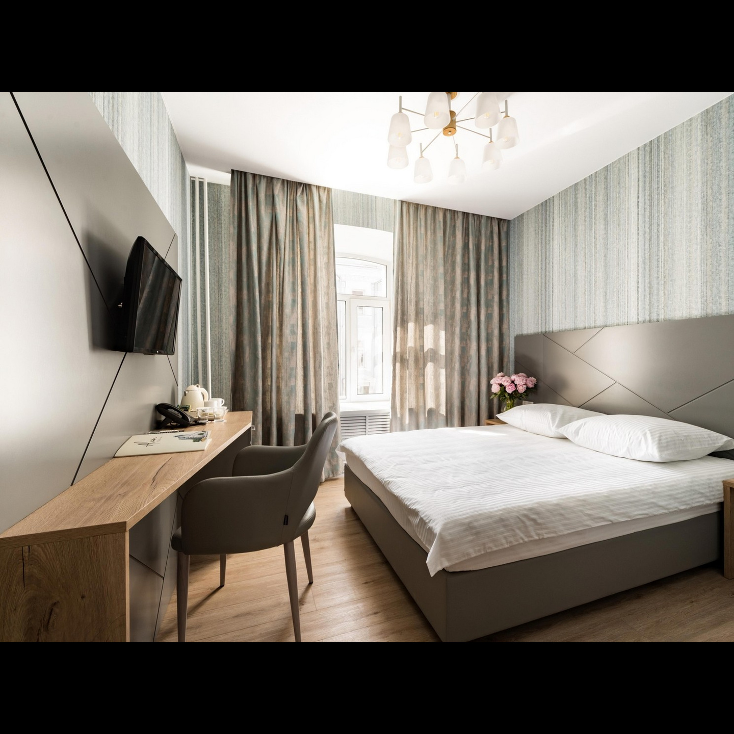 Отель предлагает разнообразные варианты размещения. Улучшенный двухместный номер площадью 20 м² и полулюкс площадью 26 м² идеальны для пар или деловых поездок. Люкс класса, также площадью 26 м², отличается особым комфортом — в этом номере гостей ждёт двуспальная кровать, два кресла и диван с мягкой обивкой, а роскошная ванна, расположенная у окна, создает атмосферу уюта и расслабления. Большое количество окон наполняет пространство естественным светом, подчеркивая атмосферу роскоши и простора.