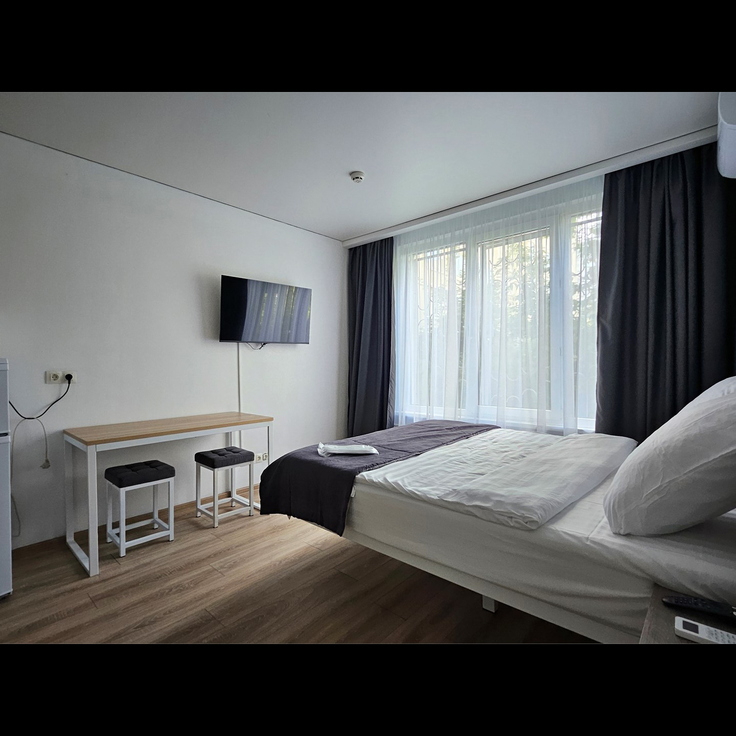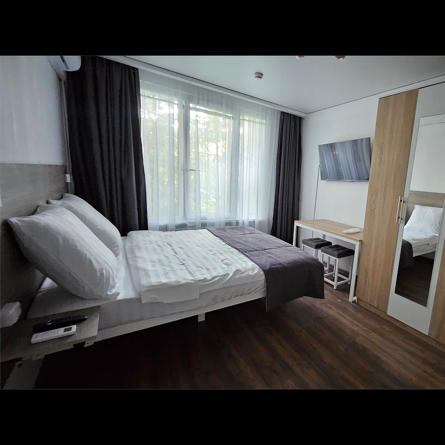 У нас есть два типа номеров — «Стандарт» и «Комфорт», оформленные в современном стиле и оснащённые всем необходимым для приятного проживания. В каждом номере вы найдёте бесплатный Wi-Fi, телевизор, кондиционер, микроволновую печь, электрический чайник, холодильник и утюг. А если захочется приготовить что-то самостоятельно — к вашим услугам собственная кухня, где есть всё для комфортного приготовления еды.