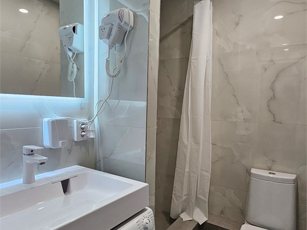 Номер класса стандарт, оснащен Душевой комнатой, туалетом в комнате под раковиной встроена стиральная машинка. Кухонный гарнитур в который встроена индукционная плита, вытяжка, раковина. Из электроники: микроволновая печь, двухкамерный холодильник, чайник, смарт тв, фен, утюг, гладильная доска, высоко скоростной интернет . Парящая кровать с подсветкой и анатомическим матрасом, обеденный стол, шкаф, обувница.