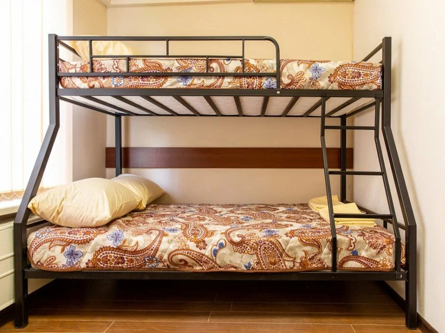Номер с двухспальной и односпальной кроватью на 2-3 человек со своим санузлом.