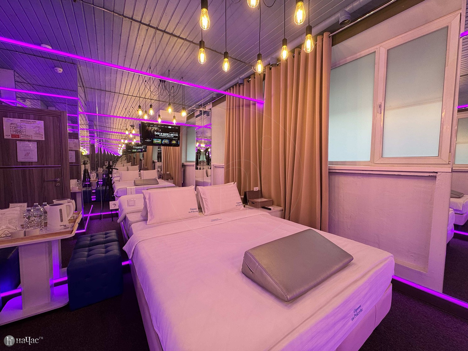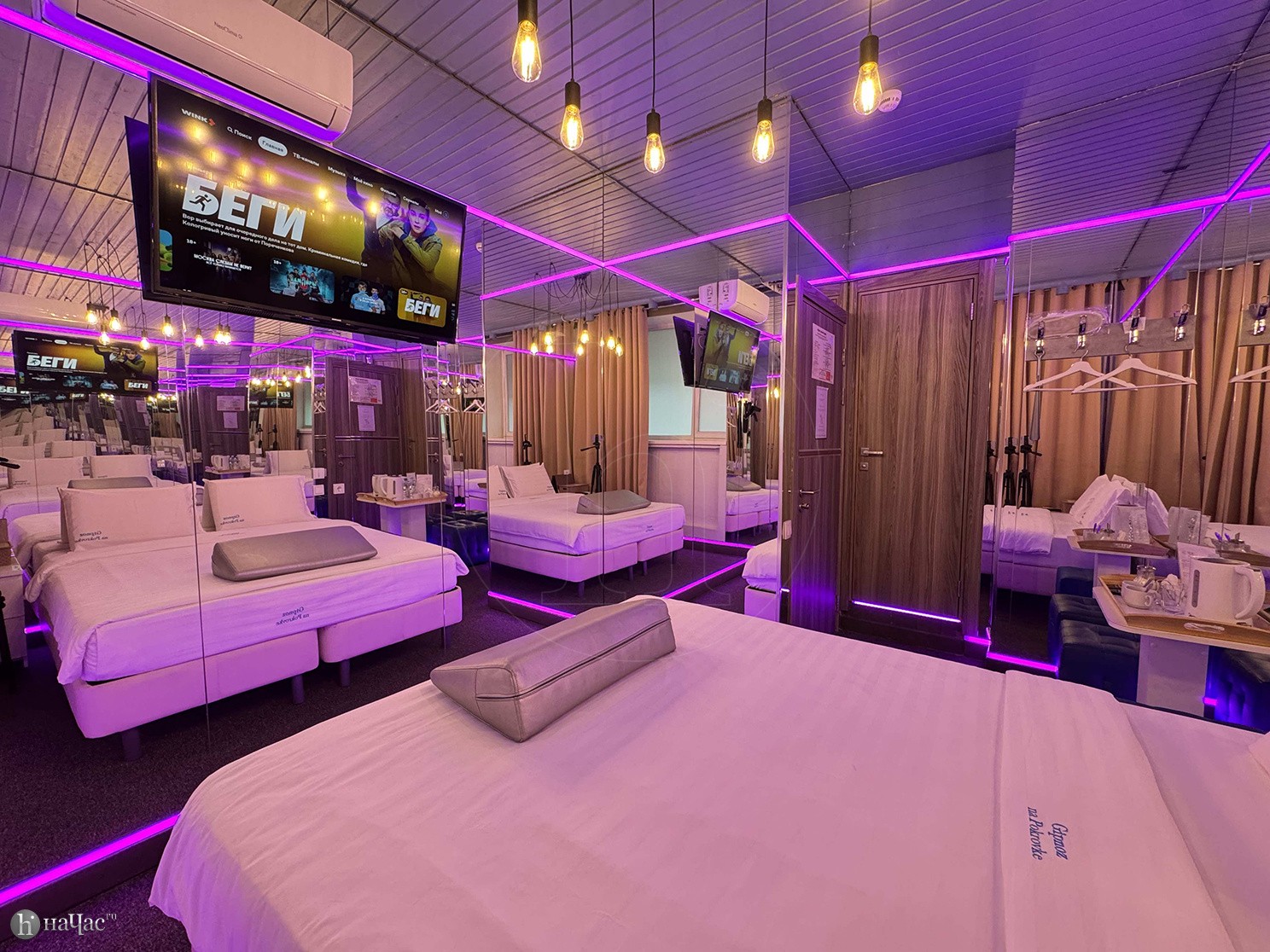 Мини-отель на Покровке Gipnoz предлагает для гостей 7 комфортабельных номеров категорий делюкс и улучшенный делюкс для одноместного и двухместного размещения по часовым, дневным, ночным и суточным тарифам. Во всех номерах выполнен новый свежий ремонт в современном стиле с зеркальными стенами, многоуровневой светодиодной подсветкой, меняющей цвета. Собственные санузлы оборудованы ваннами или душем, вся сантехника установлена недавно и работает исправно.