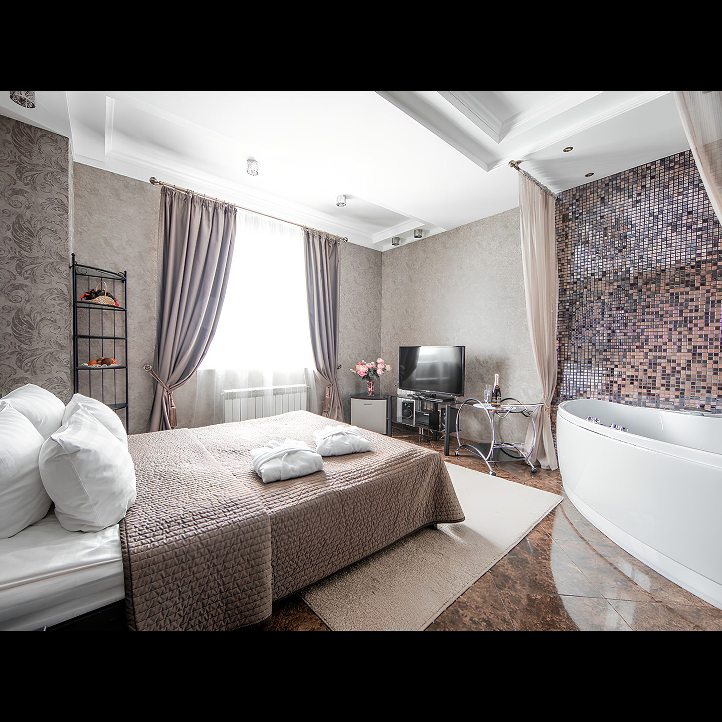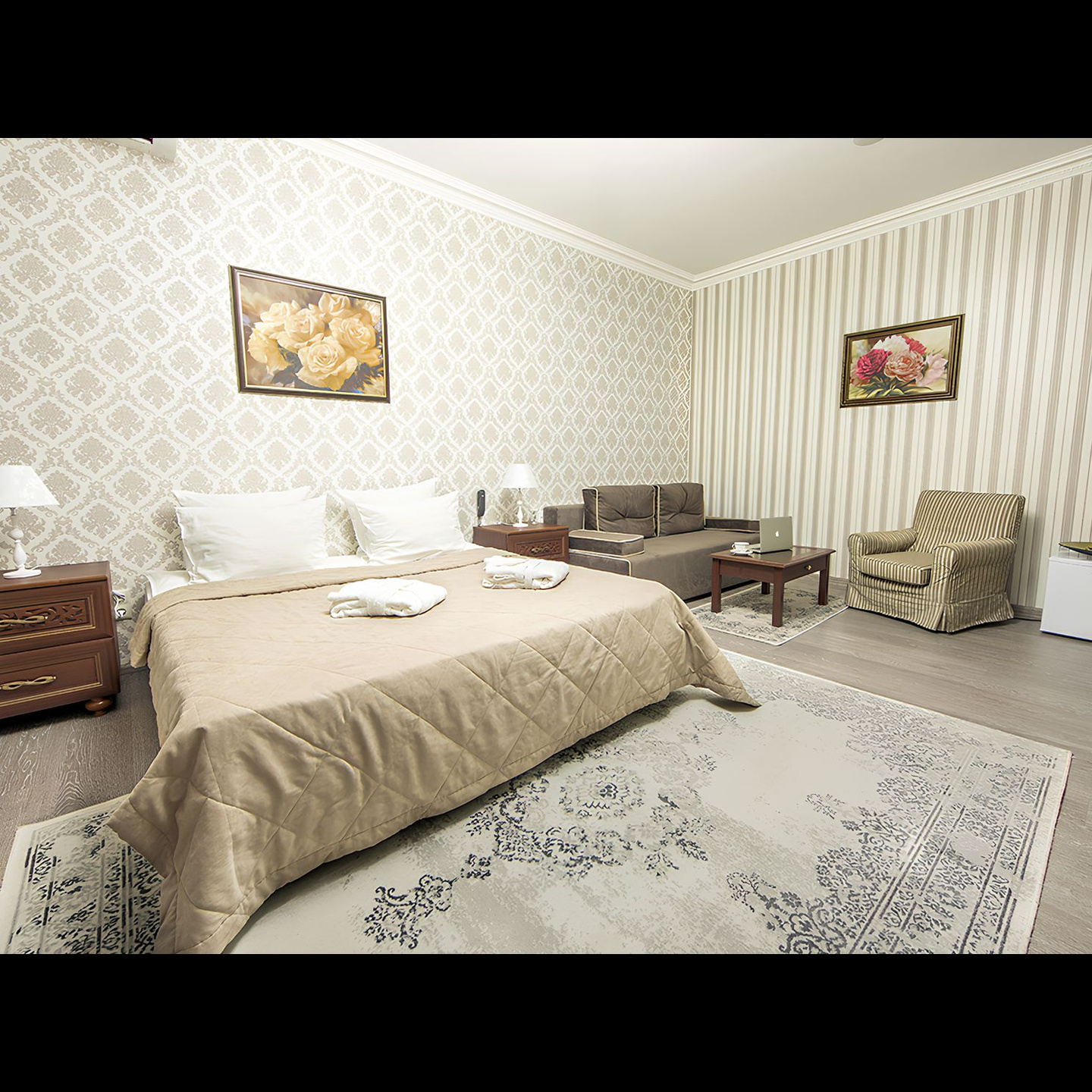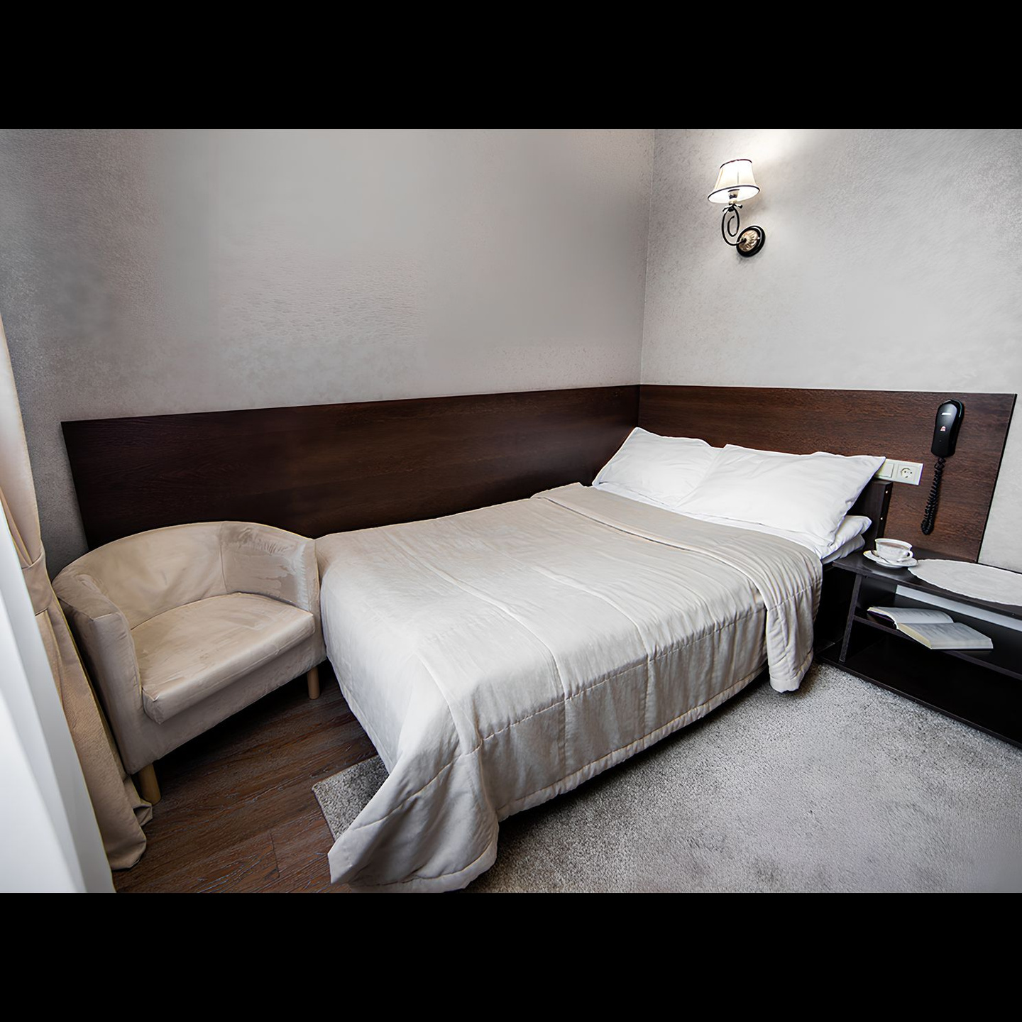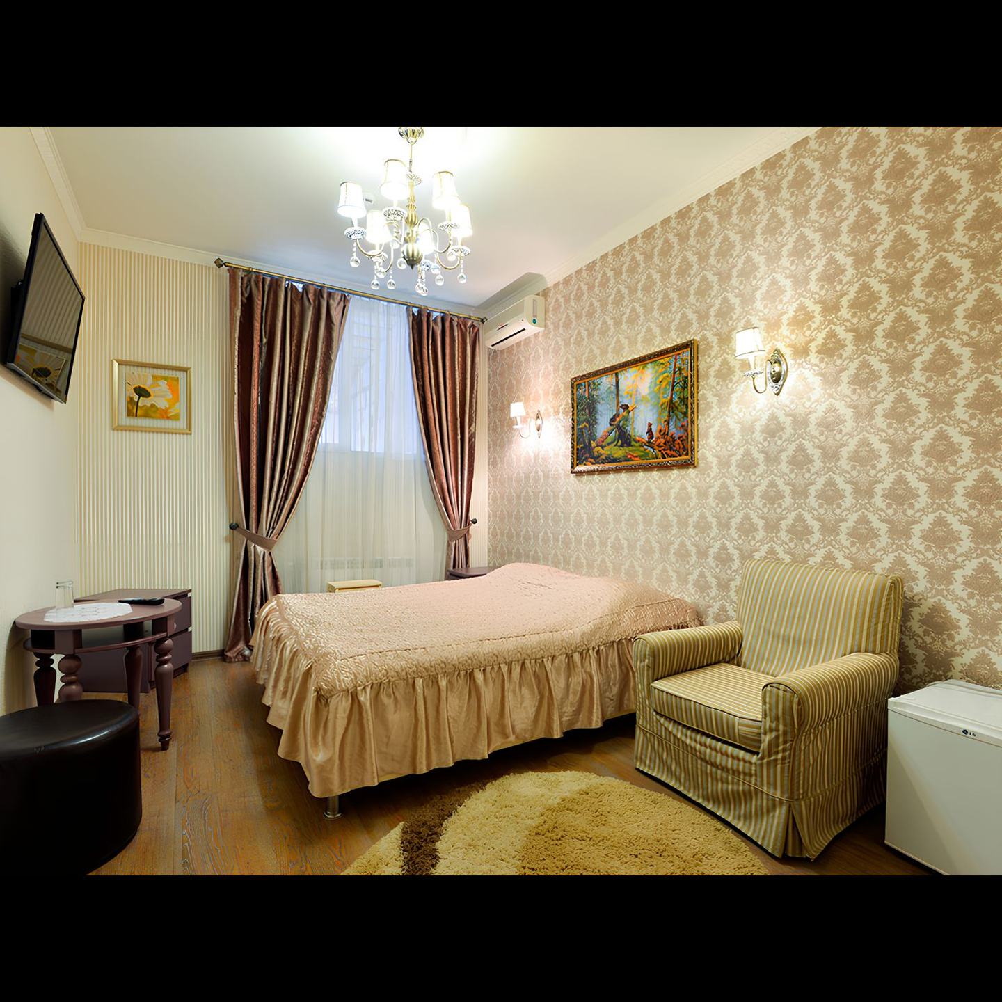 Маленькие, но очень удобные однокомнатные номера, современная мебель.