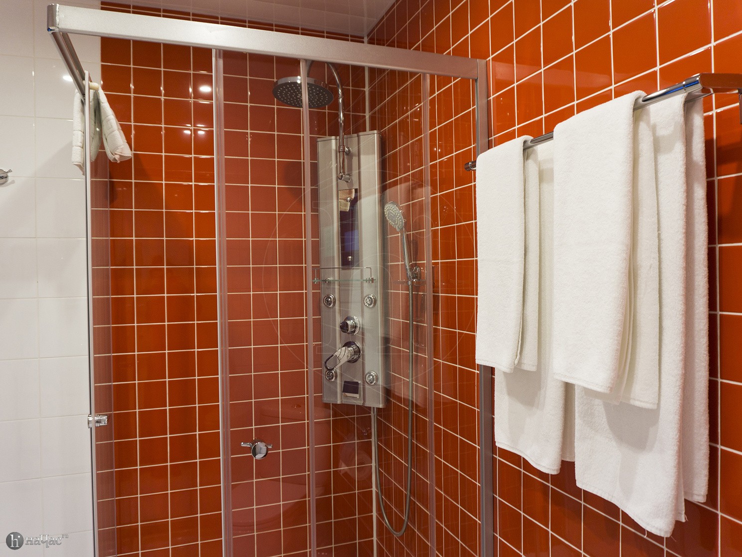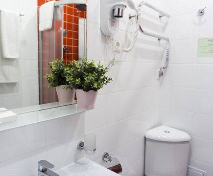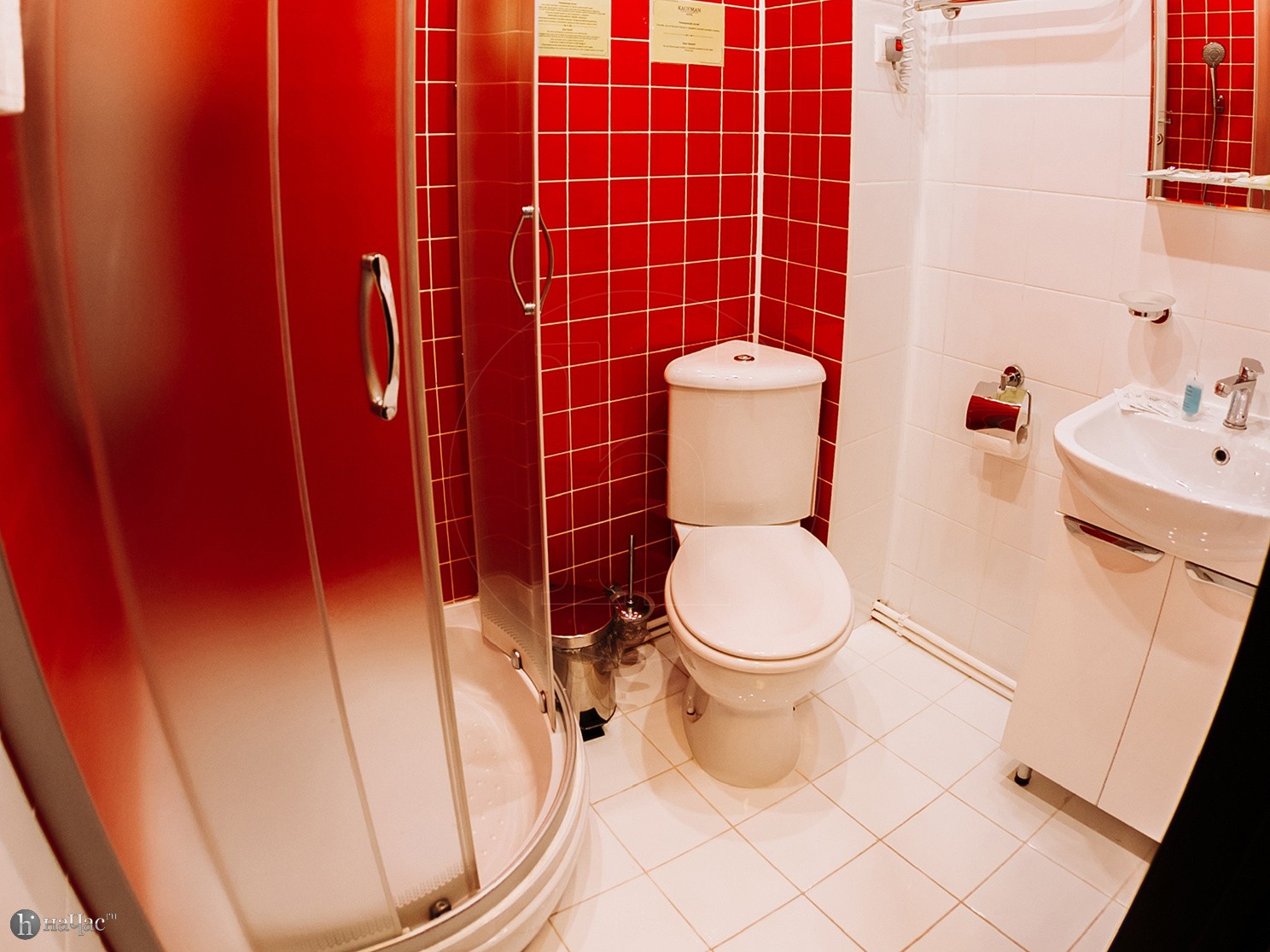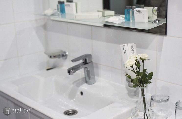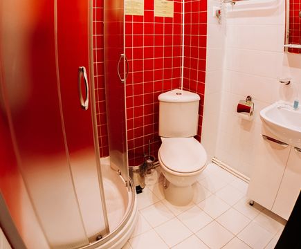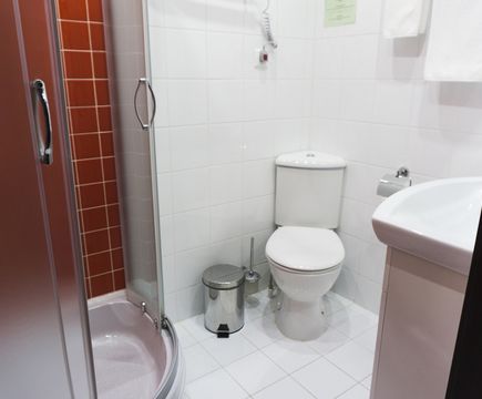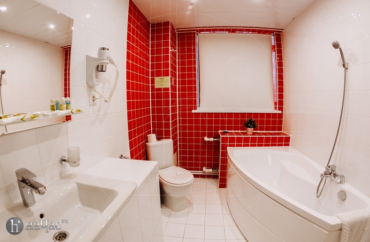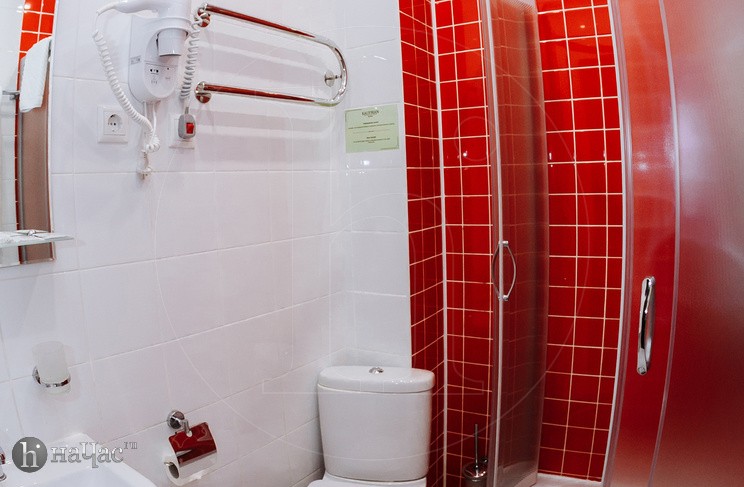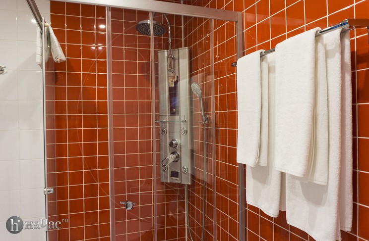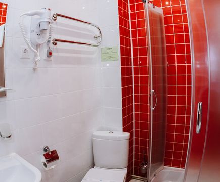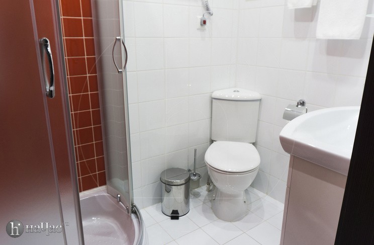 Душевая кабина, TV, тапочки, гигиенические принадлежности, полотенца, кофе, чай, сахар, стаканы,чайная пара, фен.