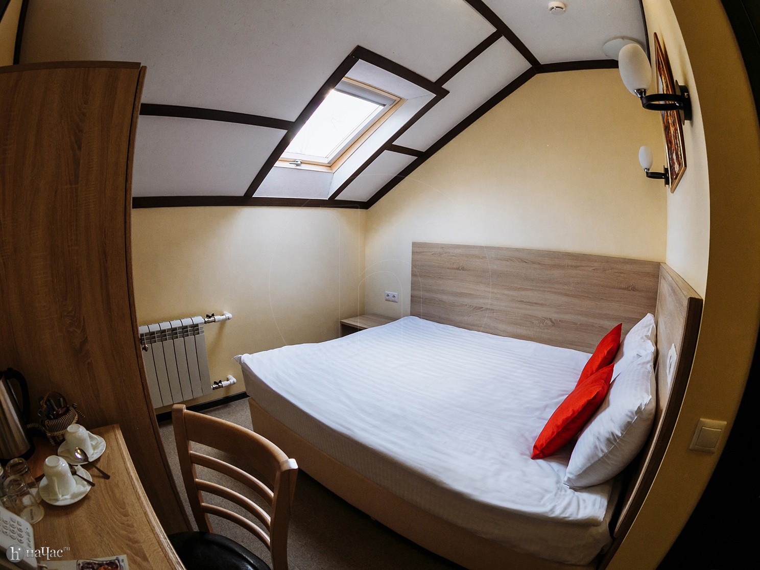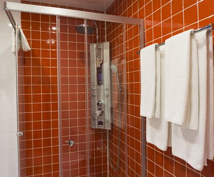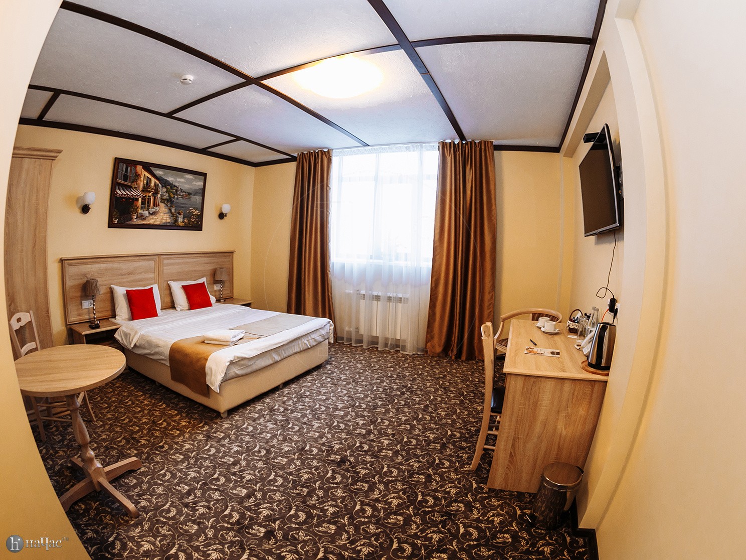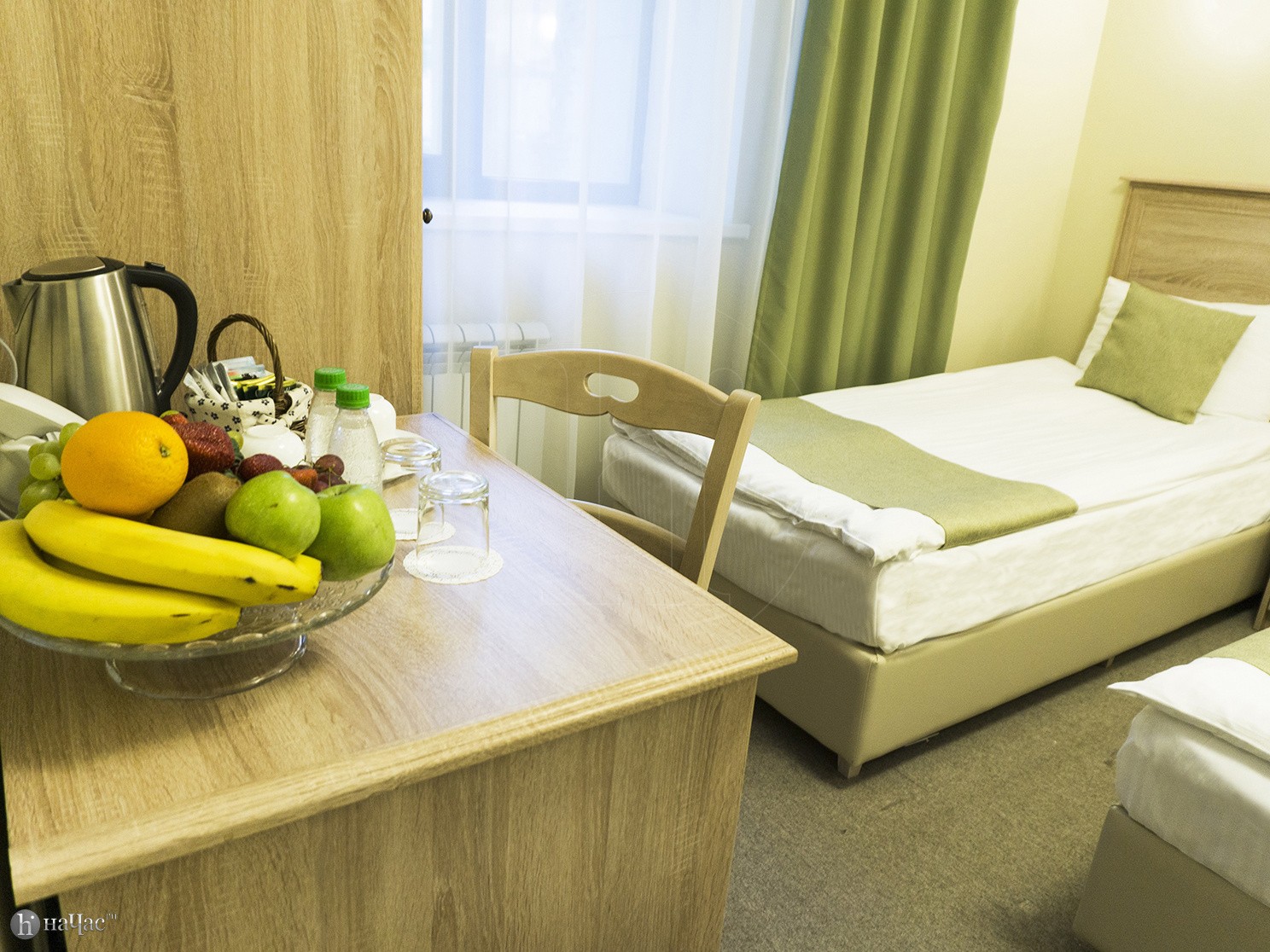 Душевая кабина, TV, тапочки, гигиенические принадлежности, полотенца, кофе, чай, сахар, стаканы,чайная пара, фен.