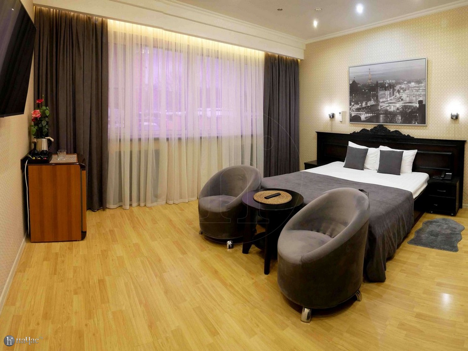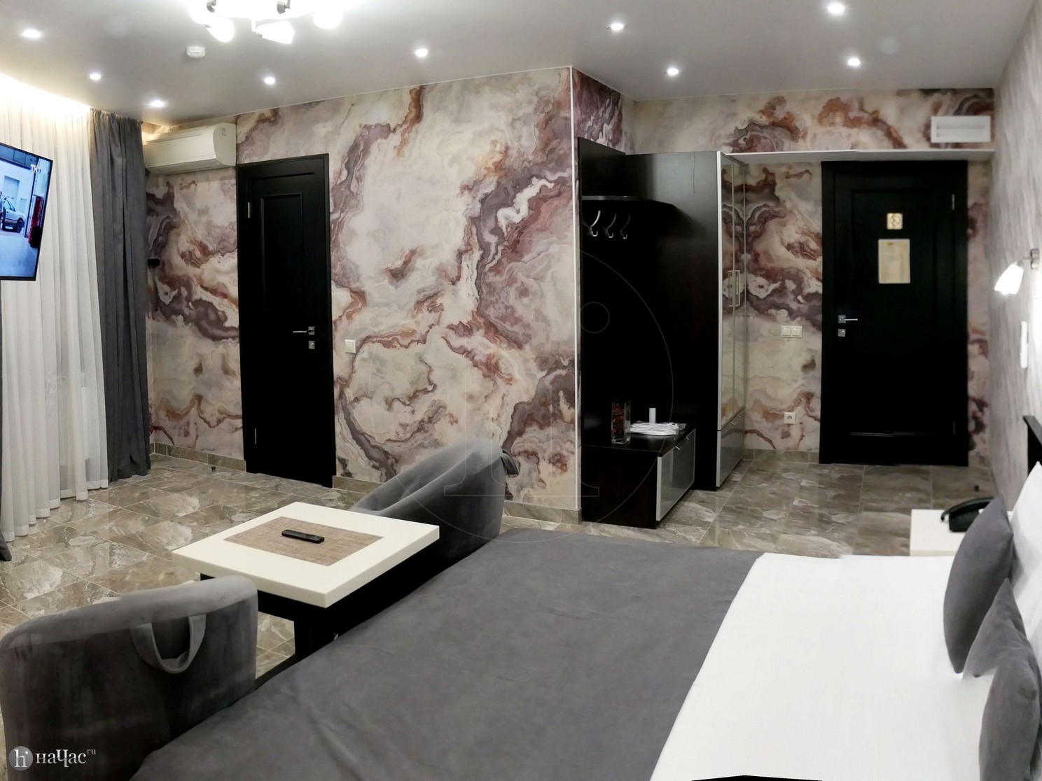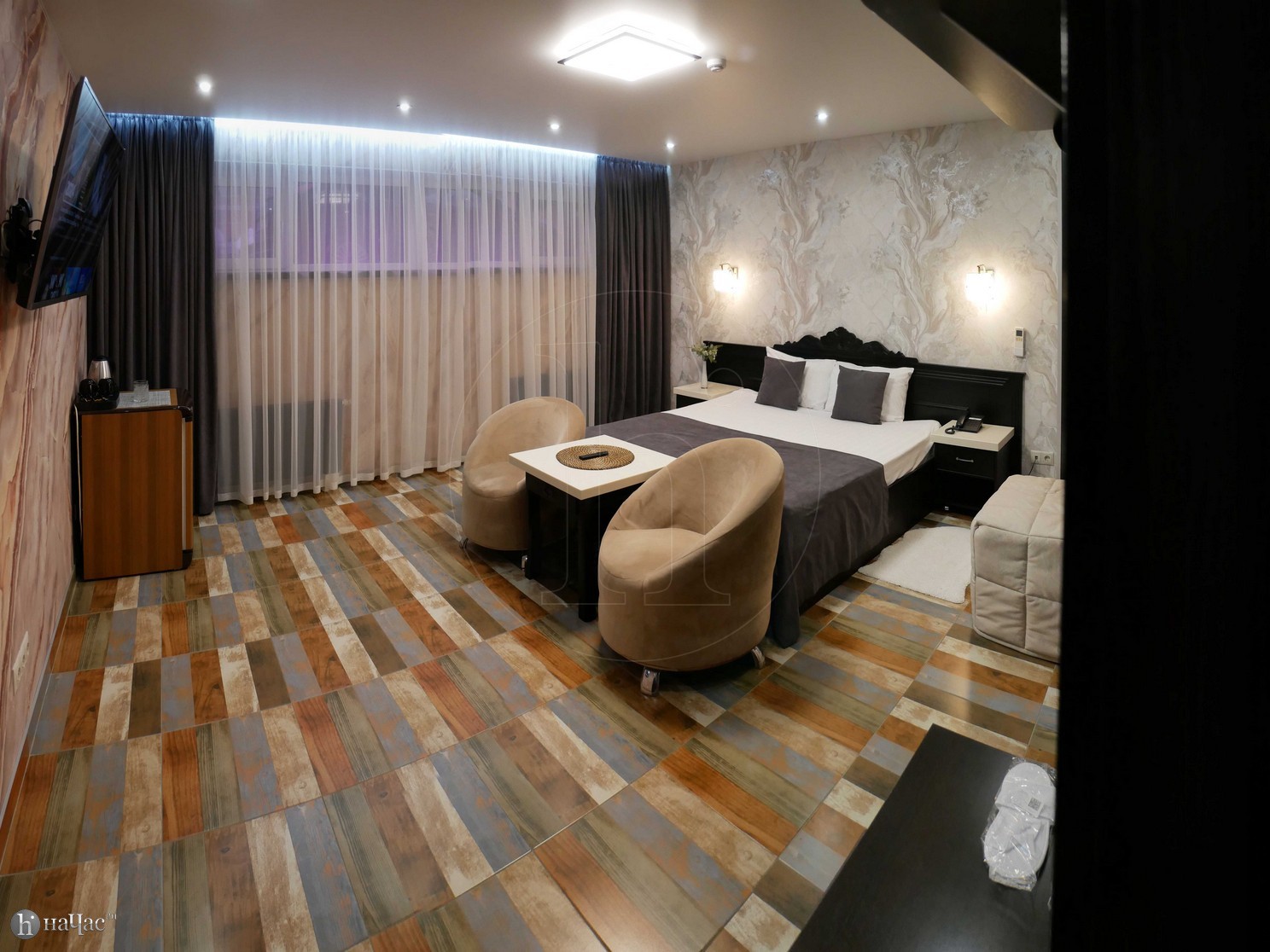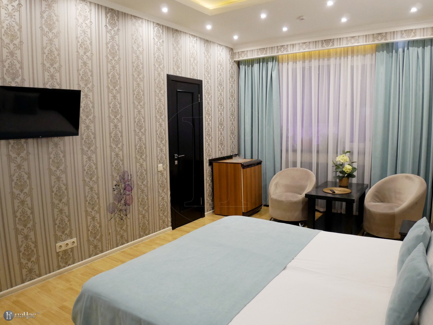 Здесь есть 3 типа номеров, чтобы удовлетворить все ваши потребности и предпочтения. Номера Стандарт имеют площадь 30 квадратных метров, Полулюкс — 40 квадратных метров, а Люкс — великолепные 65 квадратных метров. Во всех номерах предоставляется бесплатный доступ к Wi-Fi, а также доступ к смарт-телевизору. В вашем распоряжении также фен, утюг, халат, косметические принадлежности, микроволновая печь, чайник и мини-холодильник.