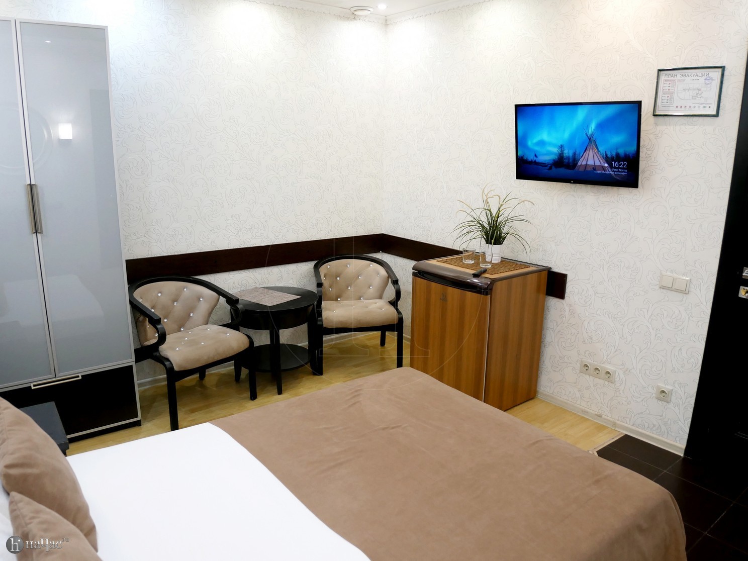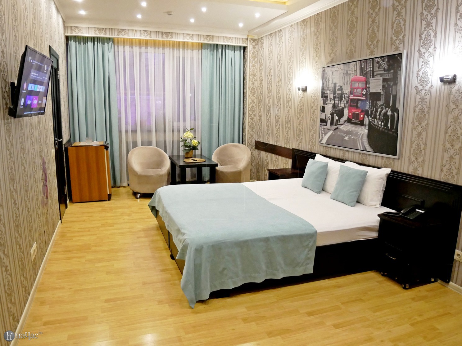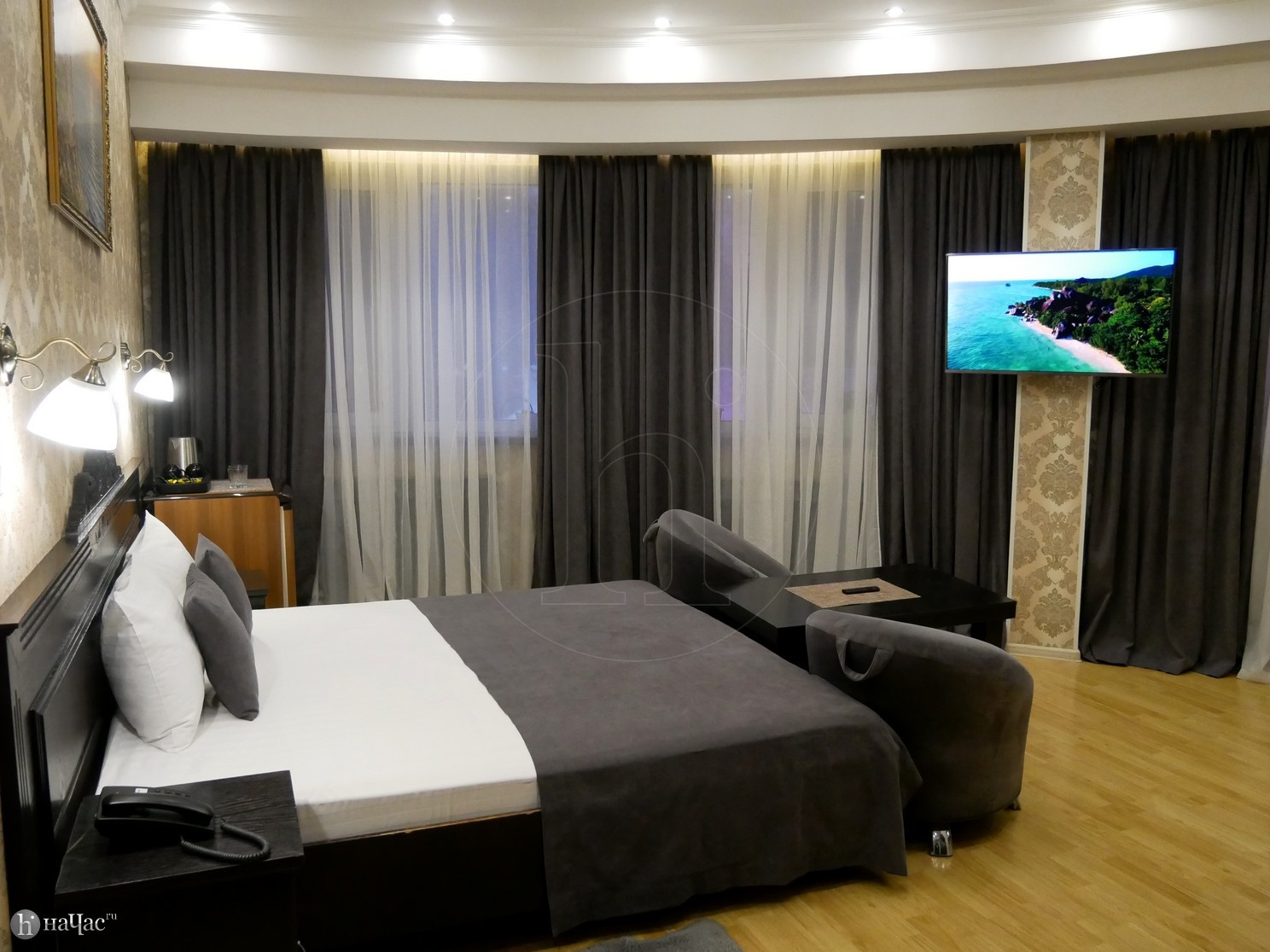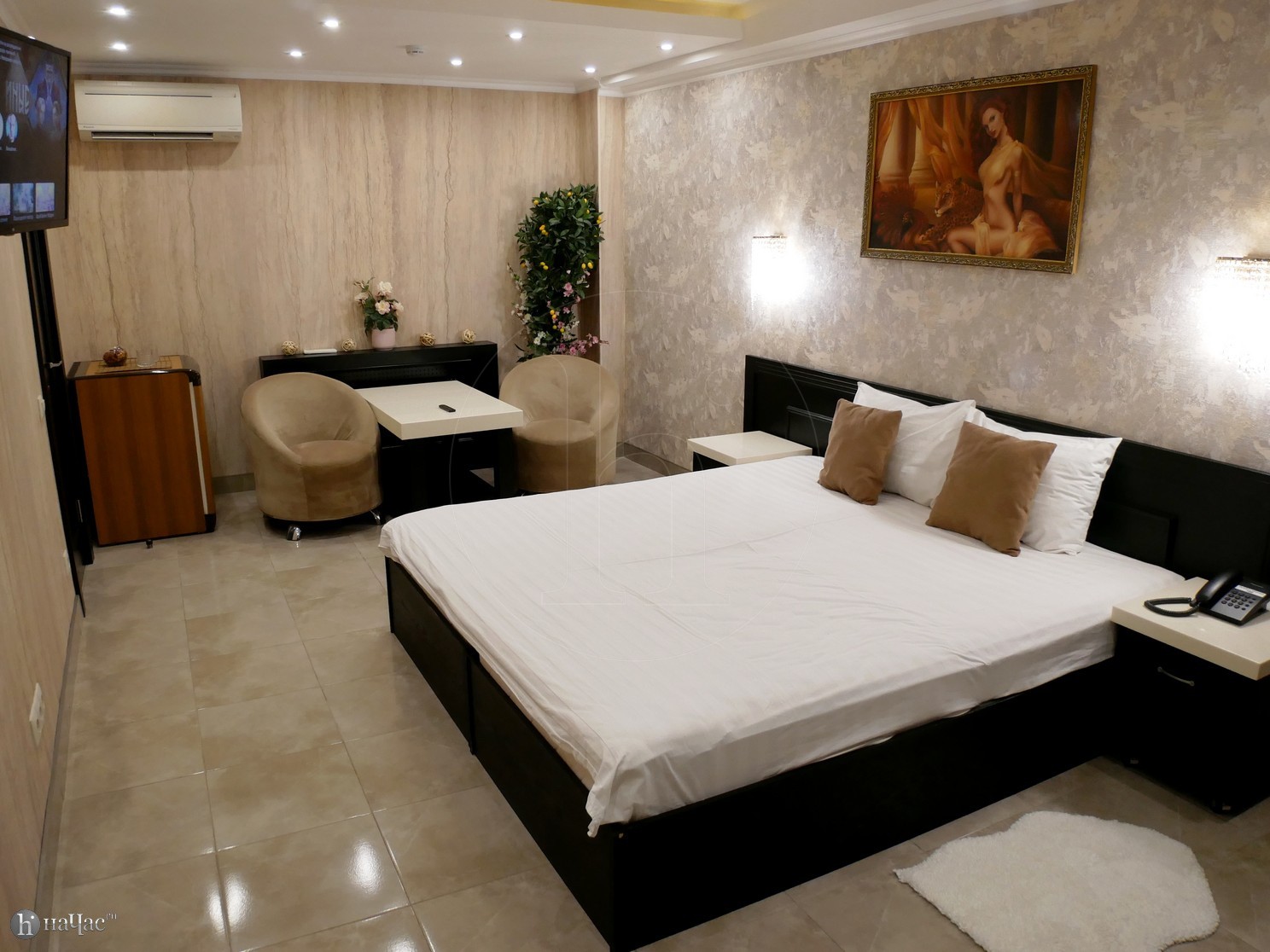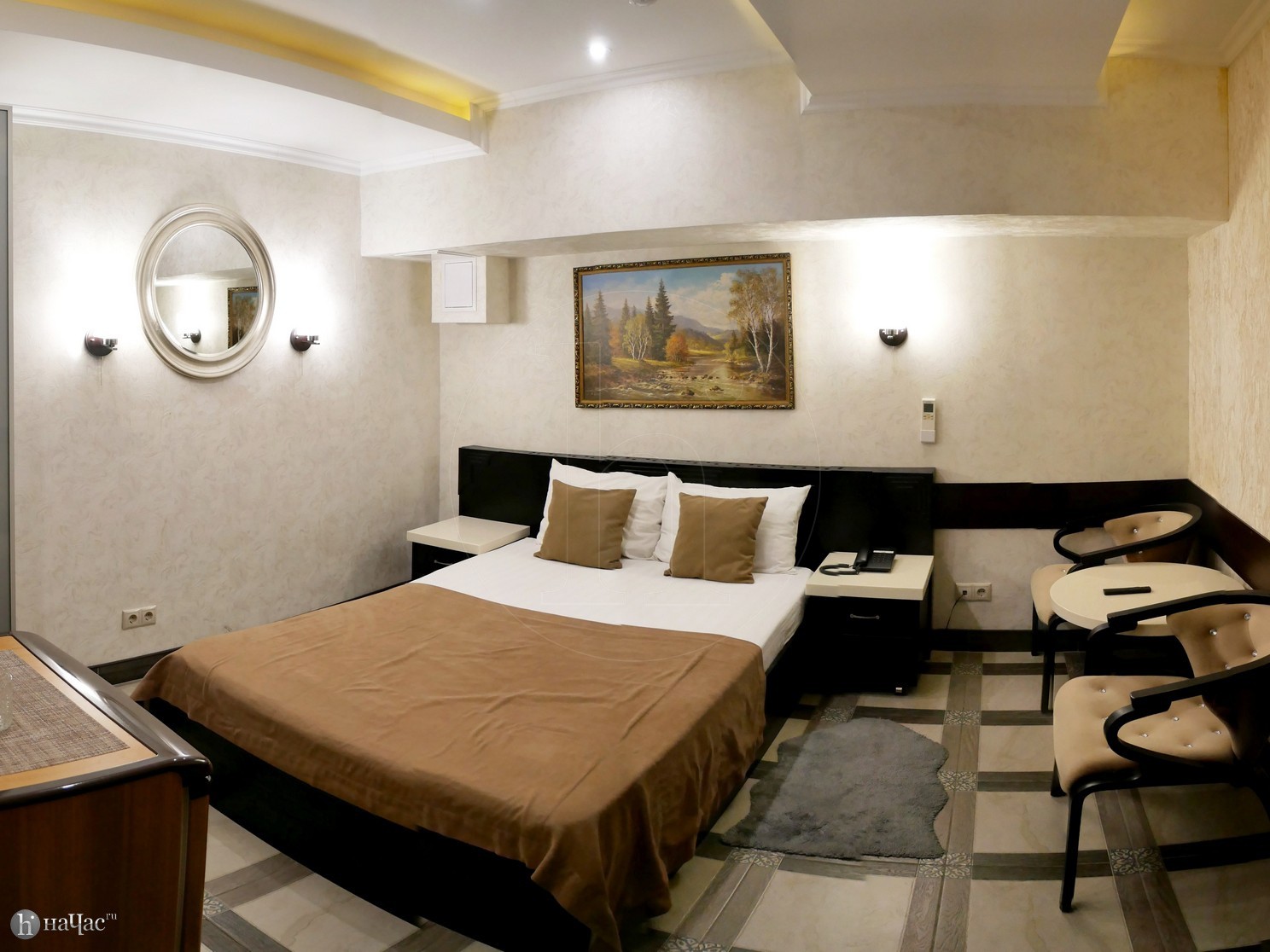 Здесь есть 3 типа номеров, чтобы удовлетворить все ваши потребности и предпочтения. Номера Стандарт имеют площадь 30 квадратных метров, Полулюкс — 40 квадратных метров, а Люкс — великолепные 65 квадратных метров. Во всех номерах предоставляется бесплатный доступ к Wi-Fi, а также доступ к смарт-телевизору. В вашем распоряжении также фен, утюг, халат, косметические принадлежности, микроволновая печь, чайник и мини-холодильник.