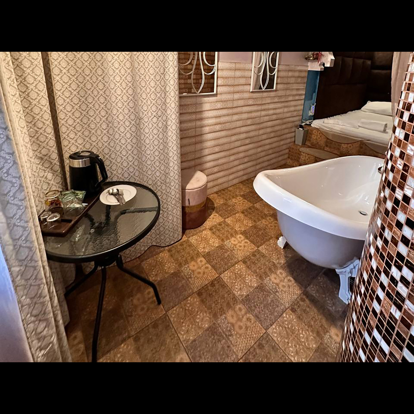 В номере: кровать King-size кровать, Smart тv + спутниковые каналы, климат-система, холодильник, джакузи (300 литров; размер 175х110 см), Tantra-диван, электрический-камин.