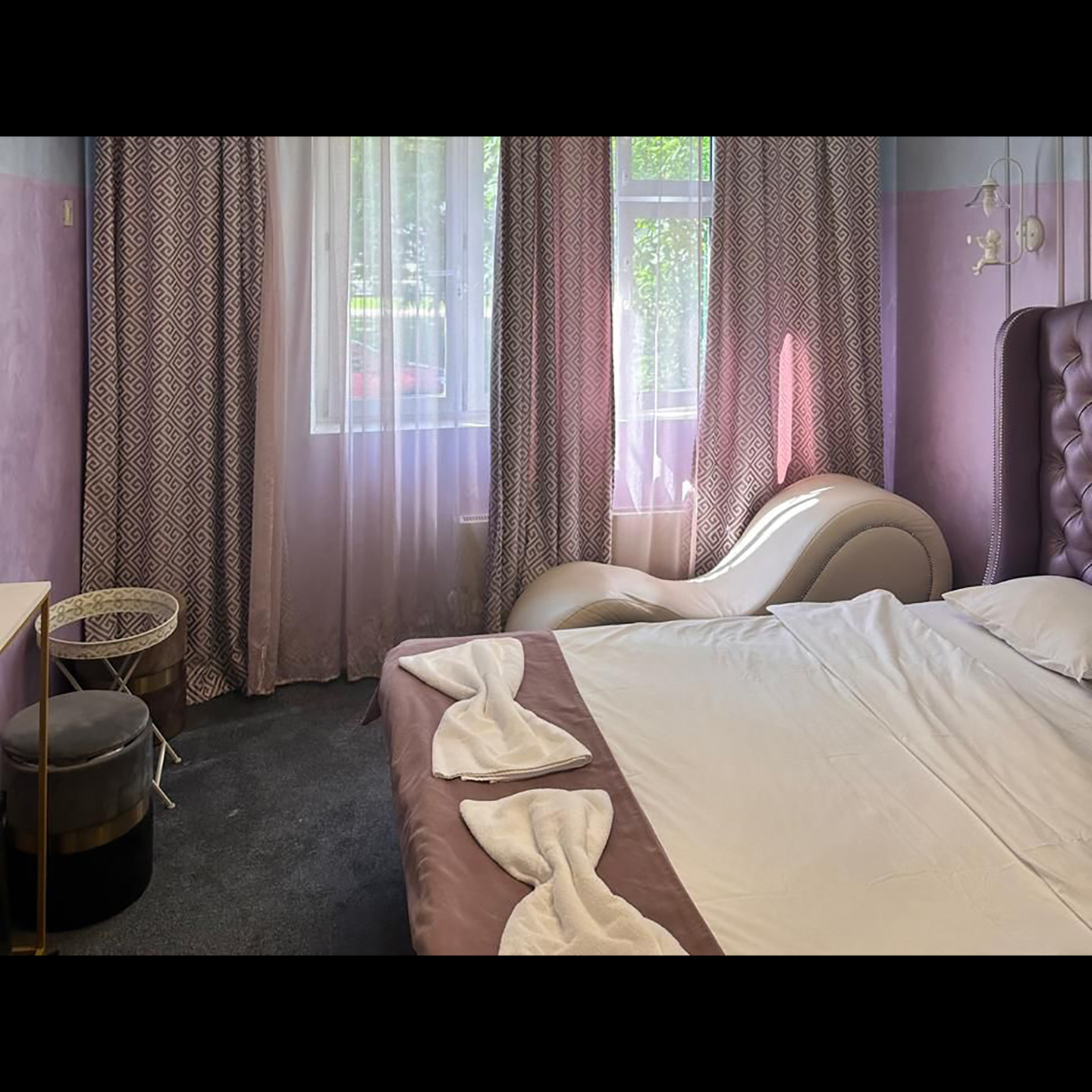 В номере: кровать Queen-size, Smart тv + спутниковые каналы, климат-система, холодильник, зеркальная душевая зона, Tantra-диван.