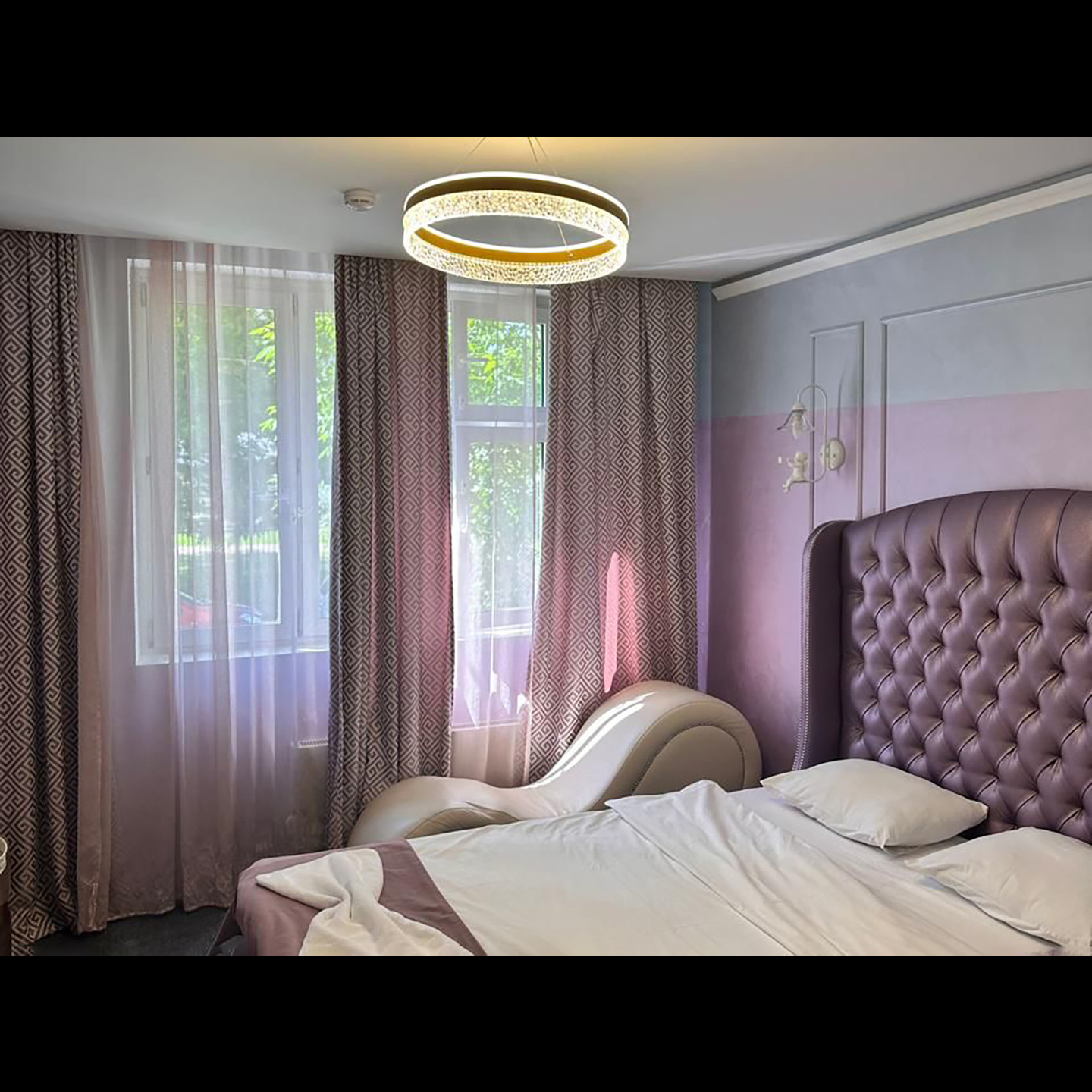В номере: кровать Queen-size, Smart тv + спутниковые каналы, климат-система, холодильник, зеркальная душевая зона с поручнями, Tantra-диван.