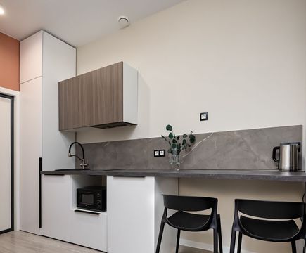 Для вашего удобства в отеле работает собственная кофейня. Начните свой день с безупречного ароматного кофе, приготовленного на профессиональной кофемашине, который вы можете взять с собой на работу или на прогулку. Кроме того, мы будем рады предложить вам вкусный завтрак, а в зоне мини-бара вас ждут прохладительные напитки и сладости.