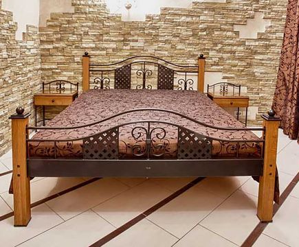 Номер выполнен в стиле альпийского шале. Это сдержанные оттенки, красивая мебель с изысканными металлическими элементами. Кстати, если вы любите эксперименты, но кровать в этом номере с сауной в Москве вам точно понравится – есть, где разгуляться фантазии. Помимо двуспальной кровати KING SIZE 160 х180 см установлены два кожаных дивана и кресло. После парной вы можете расслабиться, выпить чай или кофе, перекусить. Также в номере есть телевизор с плоским экраном и музыкальный DVD проигрыватель с акустической системой, кондиционер, кованный коктейльный столик со столешницей из ударопрочного стекла, стаканы, подсвечник и штопор. Всем гостям предоставляется гигиенический набор. Если понадобится что-то еще, вы можете позвонить по телефону, установленному в номере для связи в отеле.
