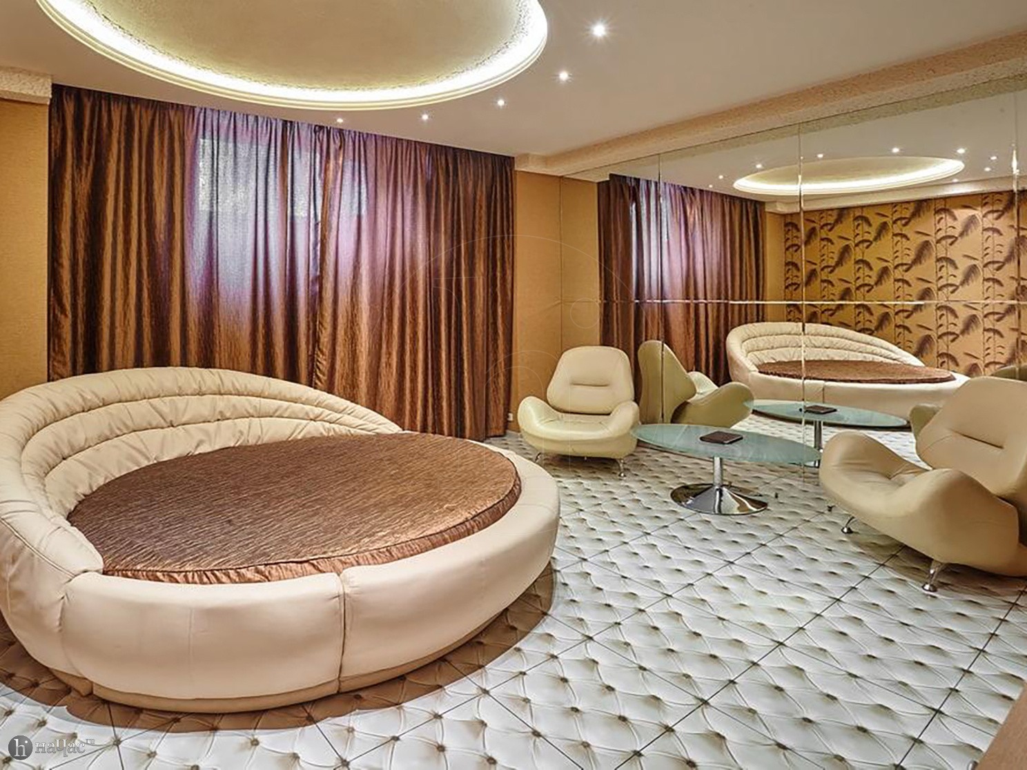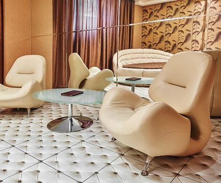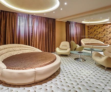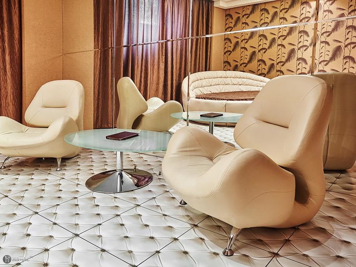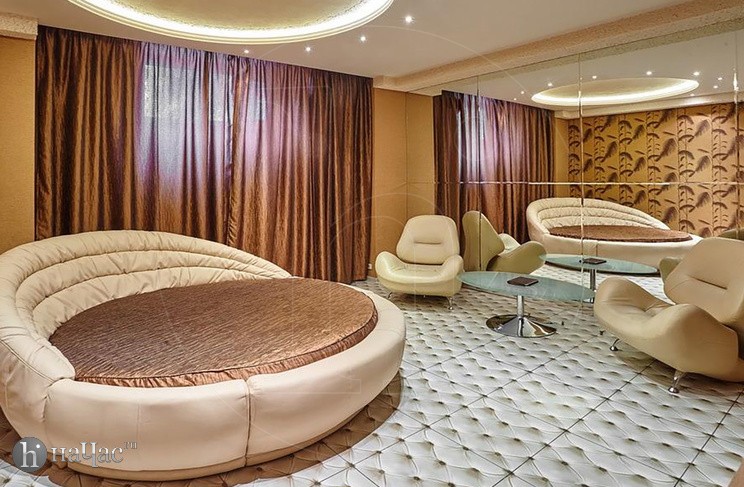 Номер с круглой кроватью пользуется стабильным спросом. Бронировать его лучше заранее, так как он часто бывает занят постоянными клиентами. Ведь помимо огромной кровати и зеркальной стены здесь также стильная ванная комната со встроенной душевой кабиной. Плоский телевизор, проигрыватель с акустической системой и кондиционер. Для кресла причудливой формы и необычный принт напольного покрытия добавляют необычности этому пространству. Кроме того, в нашем отеле на час в центре всегда готовы помочь вам заказать еду в номер, чтобы вы могли отдыхать и ни о чём не тревожиться.