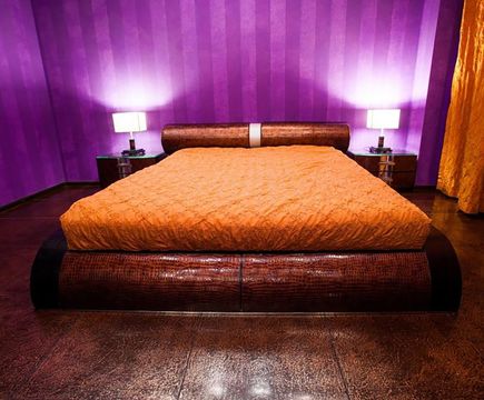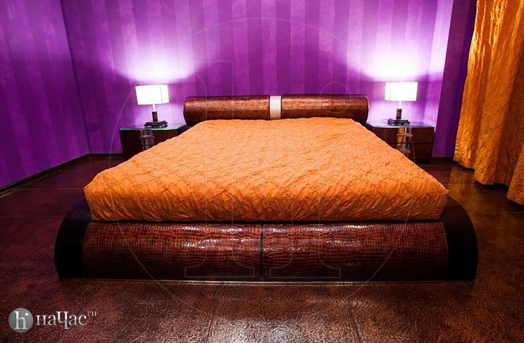 Представьте, что вы владеете огромной крокодиловой фермой или управляете внушительным хозяйством по производству различных видов кожи. Такой могла бы быть ваша спальня. Но вам не нужно тратить на нее миллионы. Достаточно только снять номер на несколько часов в нашем отеле.