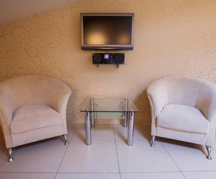 В нашей гостинице на Площади Ильича в номерах есть также другие предметы интерьера и важные нюансы. Все они для того, чтобы вам было комфортно. Например, большой диван, коктейльный столик с изящной ножкой в виде греческой колонны и кондиционер.