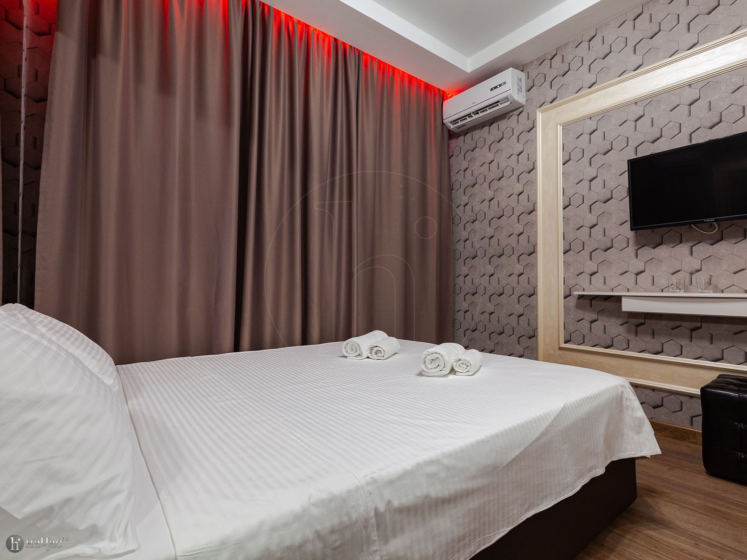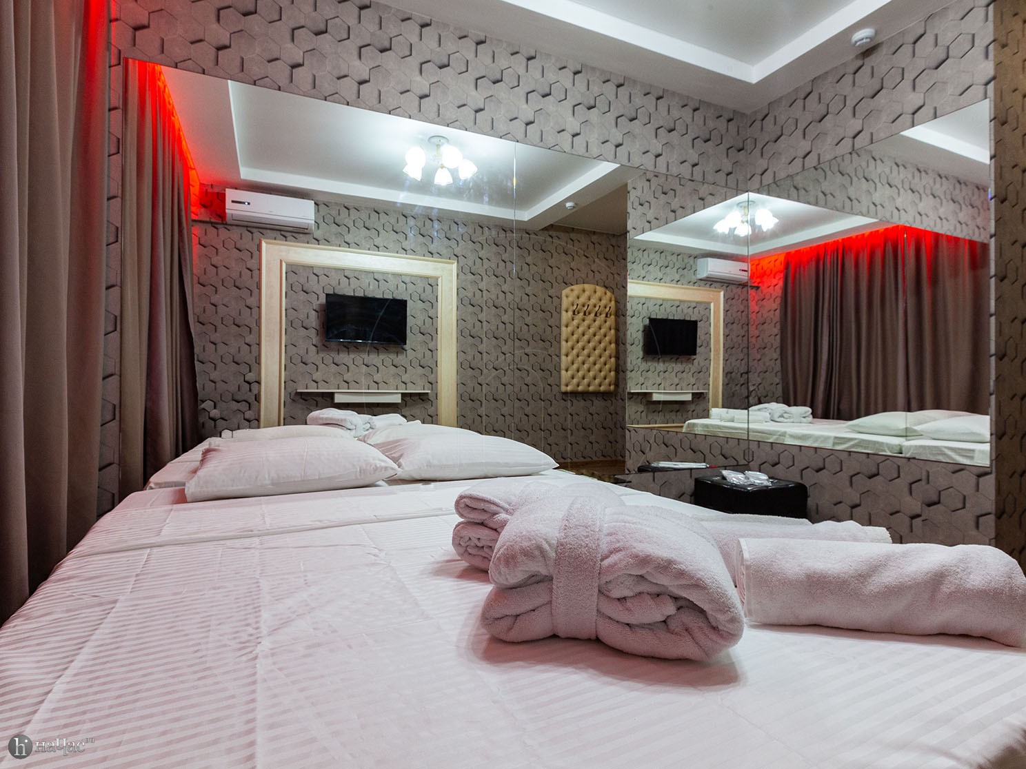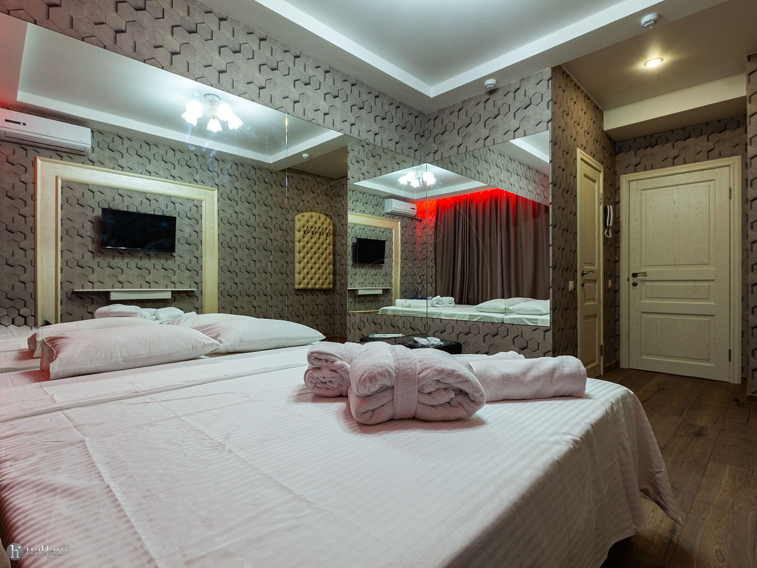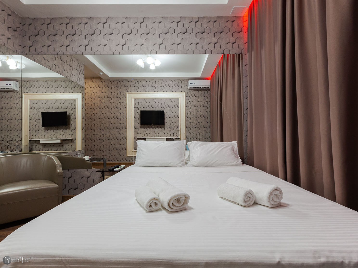 Для высочайшего уровня комфорта и релаксации отель предлагает эксклюзивные люксы и апартаменты. Роскошные свадебные номера и романтические апартаменты с джакузи создают идеальные условия для пар, ищущих очаровательное уединение, в то время как просторные планировки и премиальное оснащение удовлетворят запросы самых взыскательных гостей.