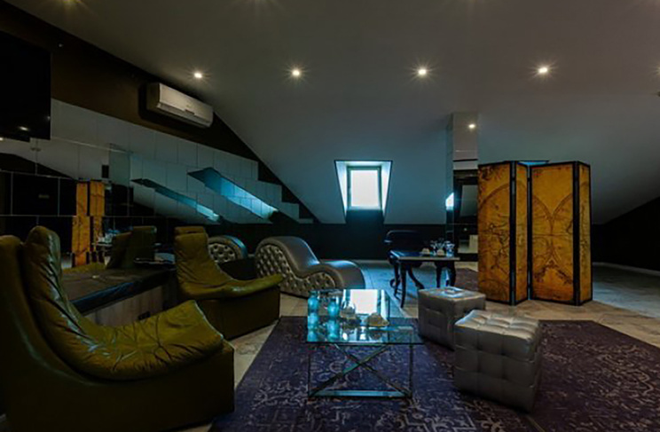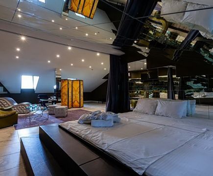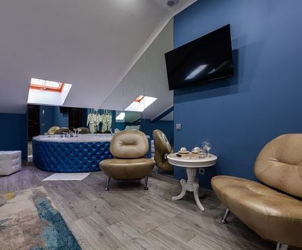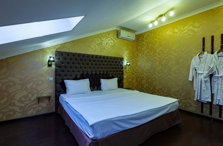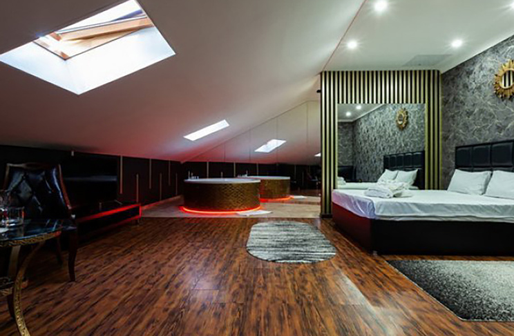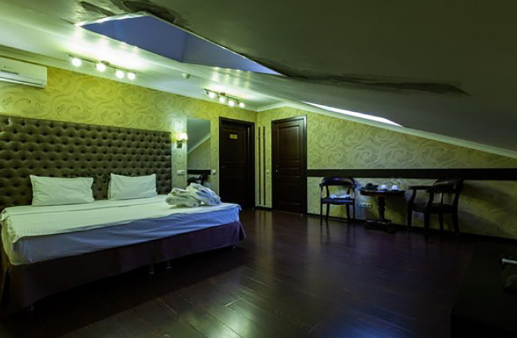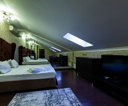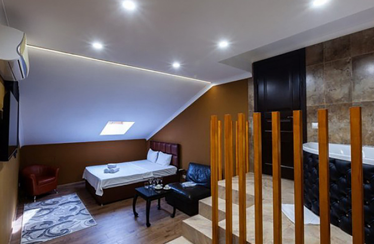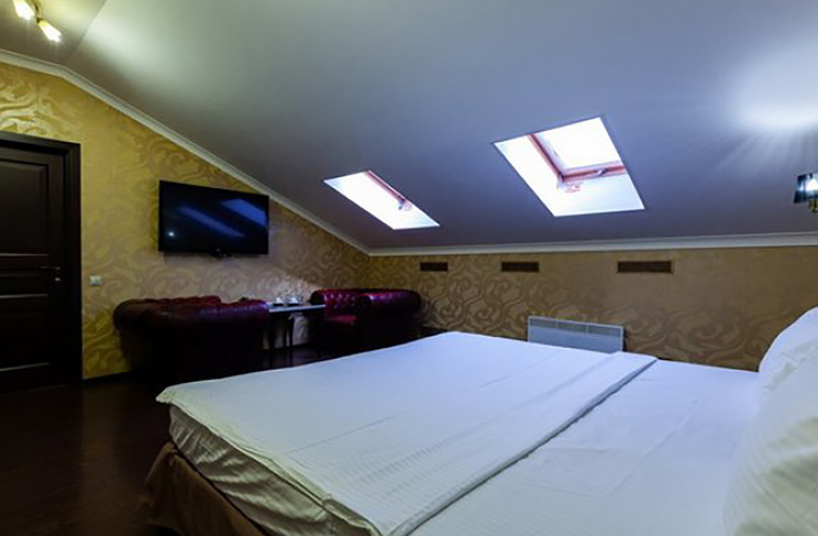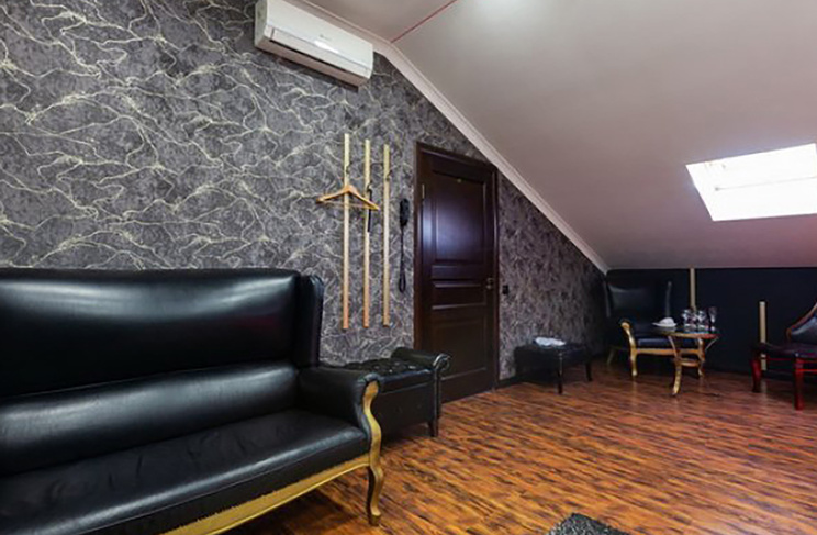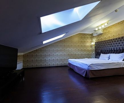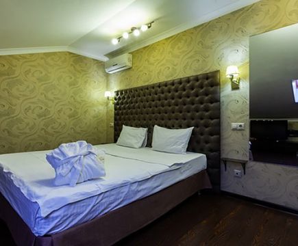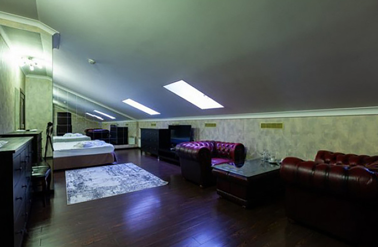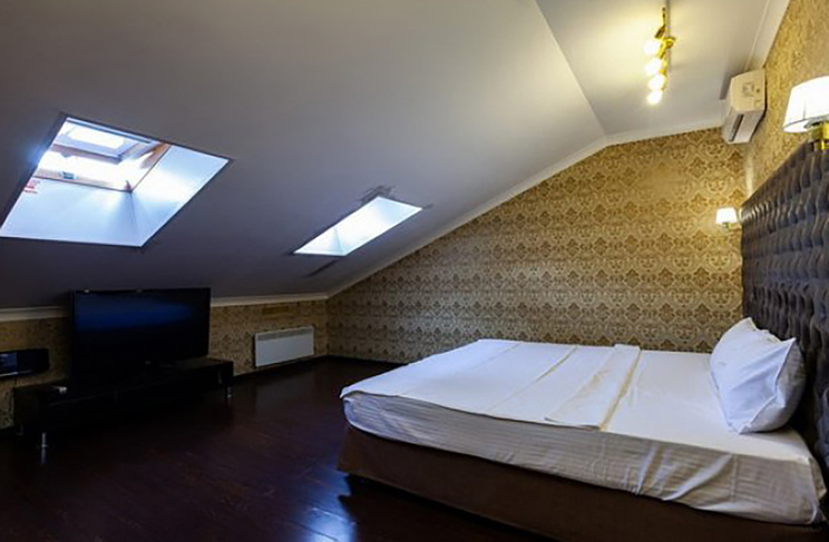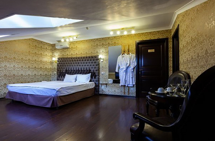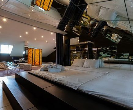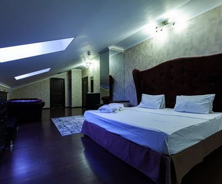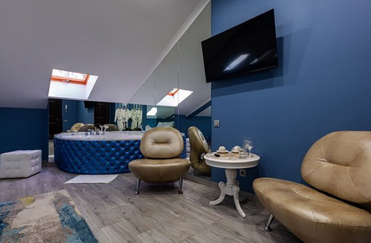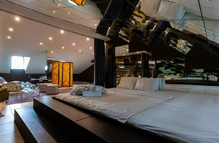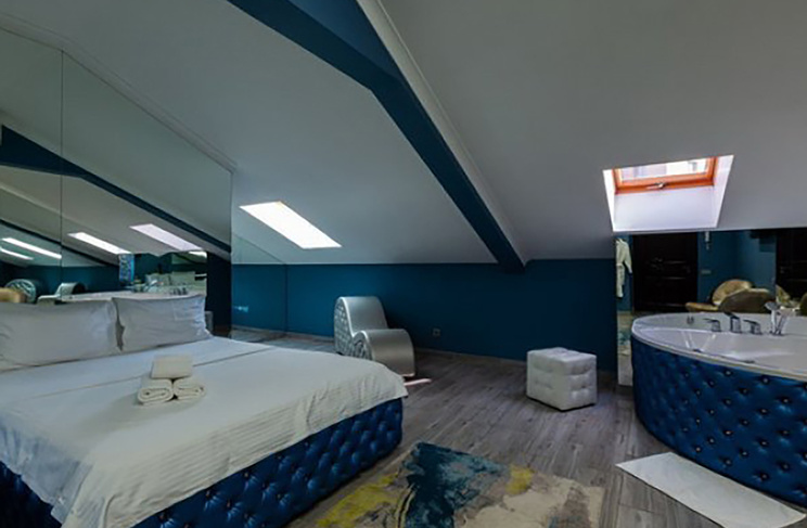 Апартаменты включают 10 помещений: 4 люкса в стиле хай-тек с прямоугольными двуспальными кроватями с кожаным изголовьем, мебелью из натуральных материалов и мансардными окнами; 2 стандарта — это вместительная комната в духе «ампир» и уютный уголок с чертами «минимализма»; 2 люкса с джакузи в разном цветовом наполнении: один в спокойной сине-голубой гамме, другой — в торжественной черно-золотой обстановке. Уникальный De Lux c освещением — имитацией звездного неба, зеркальным потолком, и английский люкс с мозаичным джакузи представлены в современном стиле «модерн» с элементами направления лофт. В каждом номере есть мини-бар. Возможно использование просторных помещений для проведения фотосессии, дружеских вечеринок и романтических свиданий влюбленных. Воспользоваться услугами отеля могут и новобрачные, роскошная мебель, мозаика и интерьерные детали в духе ампир и лучших традиций классики подарят уют и незабываемые впечатления посетителям.