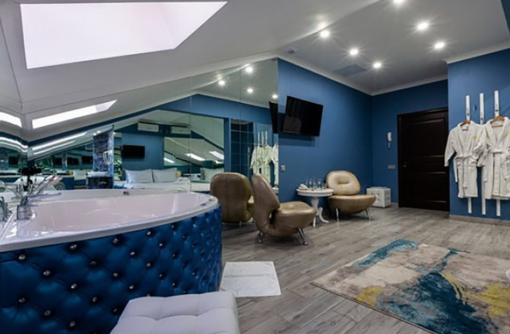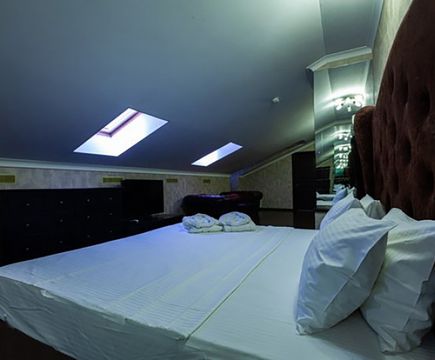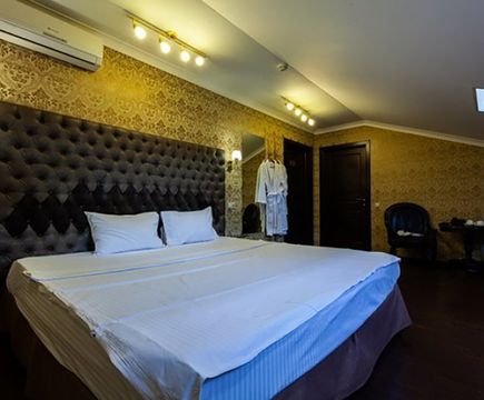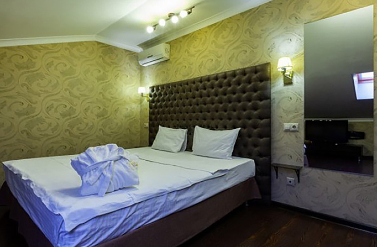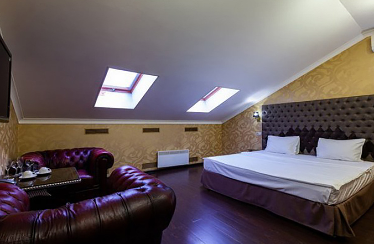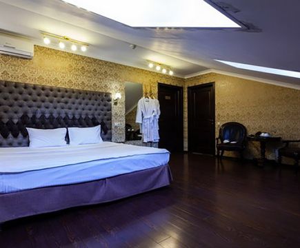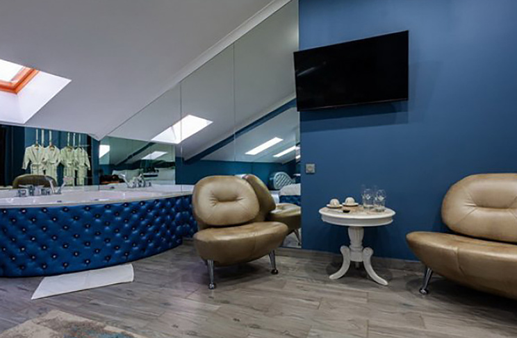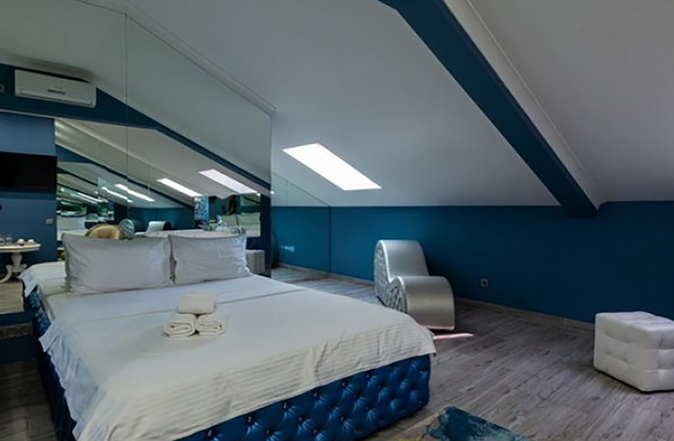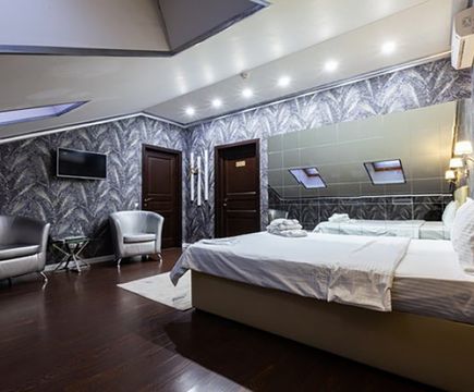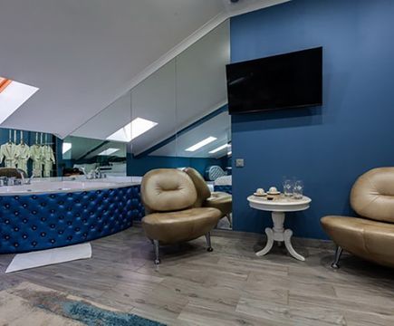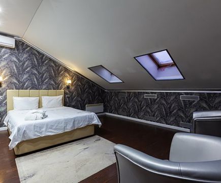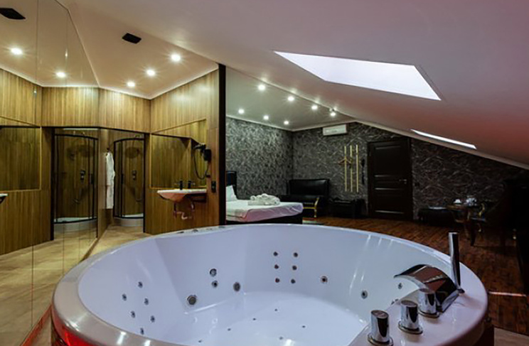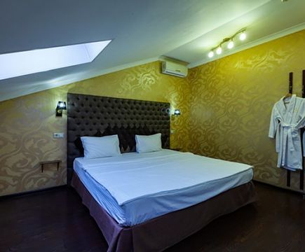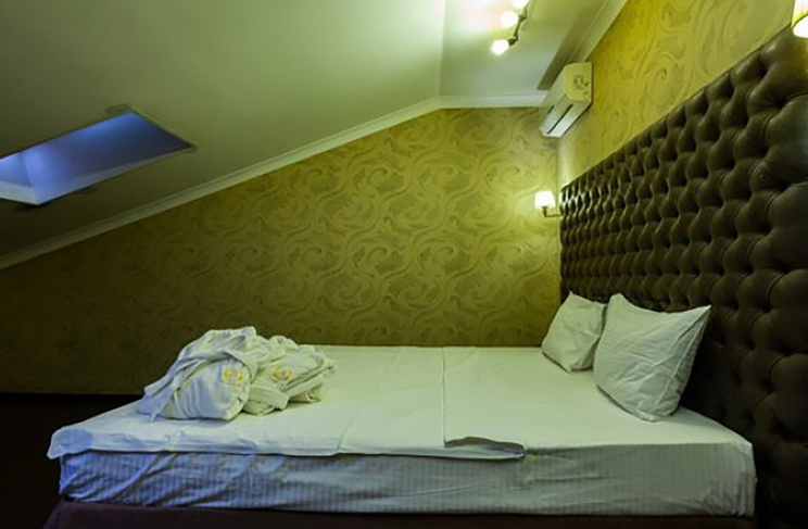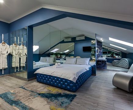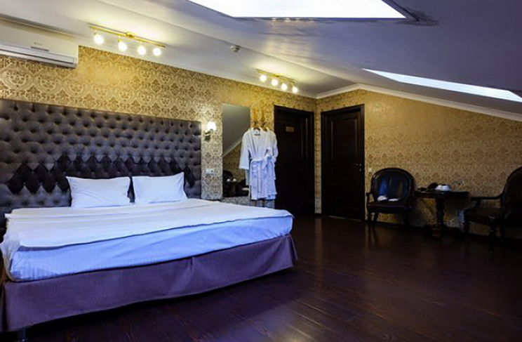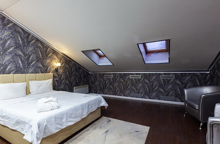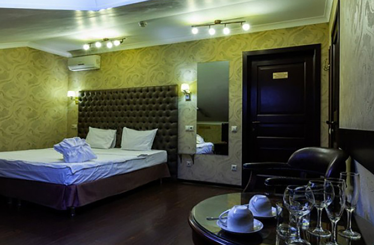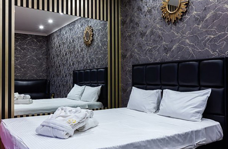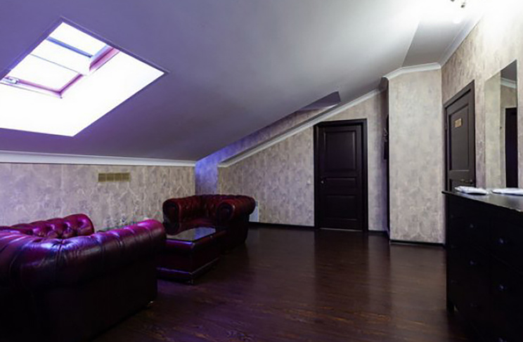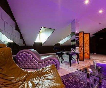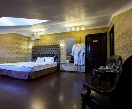 Апартаменты включают 10 помещений: 4 люкса в стиле хай-тек с прямоугольными двуспальными кроватями с кожаным изголовьем, мебелью из натуральных материалов и мансардными окнами; 2 стандарта — это вместительная комната в духе «ампир» и уютный уголок с чертами «минимализма»; 2 люкса с джакузи в разном цветовом наполнении: один в спокойной сине-голубой гамме, другой — в торжественной черно-золотой обстановке. Уникальный De Lux c освещением — имитацией звездного неба, зеркальным потолком, и английский люкс с мозаичным джакузи представлены в современном стиле «модерн» с элементами направления лофт. В каждом номере есть мини-бар. Возможно использование просторных помещений для проведения фотосессии, дружеских вечеринок и романтических свиданий влюбленных. Воспользоваться услугами отеля могут и новобрачные, роскошная мебель, мозаика и интерьерные детали в духе ампир и лучших традиций классики подарят уют и незабываемые впечатления посетителям.