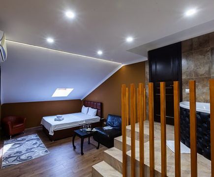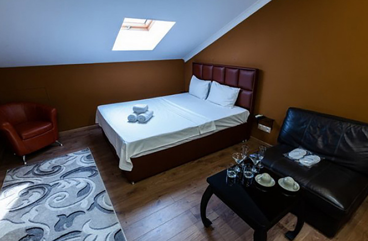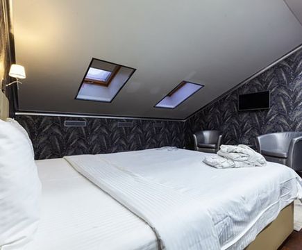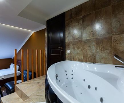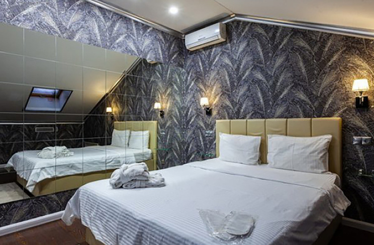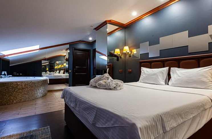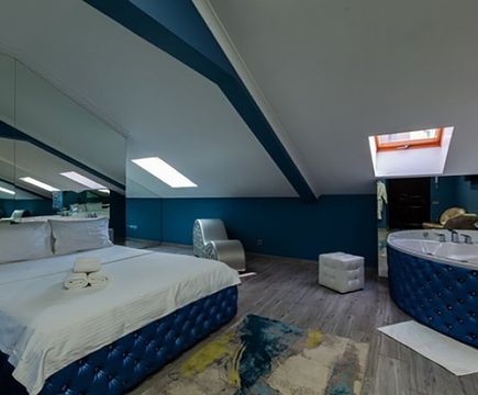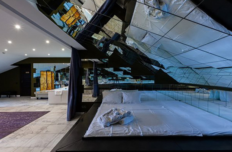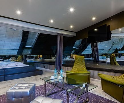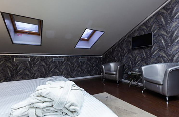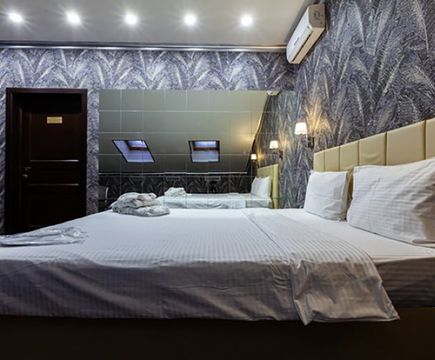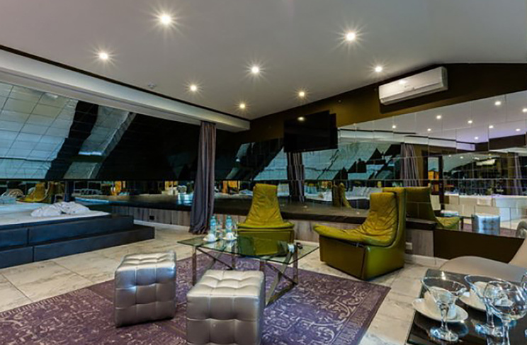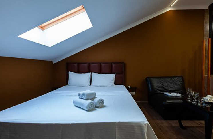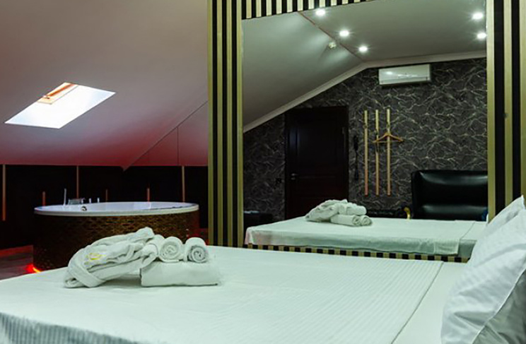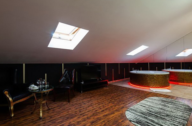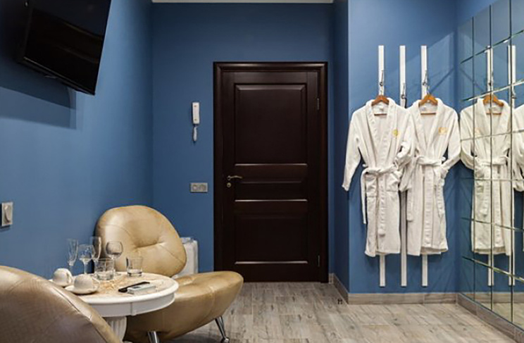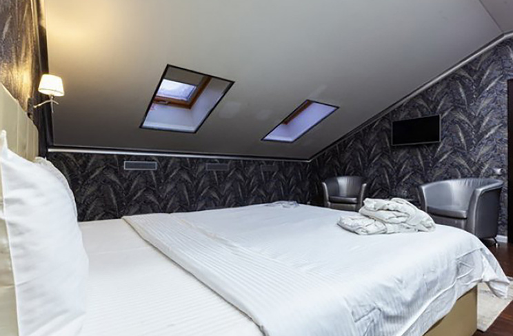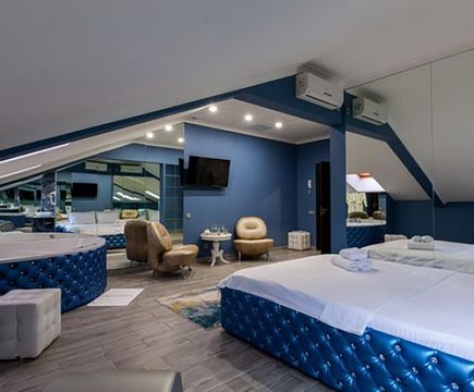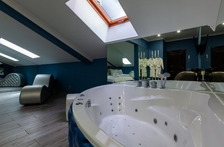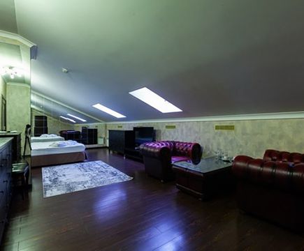 Апартаменты включают 10 помещений: 4 люкса в стиле хай-тек с прямоугольными двуспальными кроватями с кожаным изголовьем, мебелью из натуральных материалов и мансардными окнами; 2 стандарта — это вместительная комната в духе «ампир» и уютный уголок с чертами «минимализма»; 2 люкса с джакузи в разном цветовом наполнении: один в спокойной сине-голубой гамме, другой — в торжественной черно-золотой обстановке. Уникальный De Lux c освещением — имитацией звездного неба, зеркальным потолком, и английский люкс с мозаичным джакузи представлены в современном стиле «модерн» с элементами направления лофт. В каждом номере есть мини-бар. Возможно использование просторных помещений для проведения фотосессии, дружеских вечеринок и романтических свиданий влюбленных. Воспользоваться услугами отеля могут и новобрачные, роскошная мебель, мозаика и интерьерные детали в духе ампир и лучших традиций классики подарят уют и незабываемые впечатления посетителям.