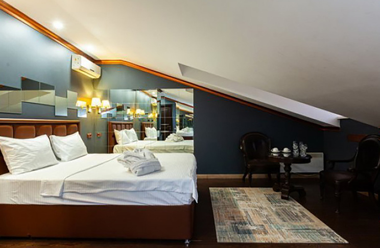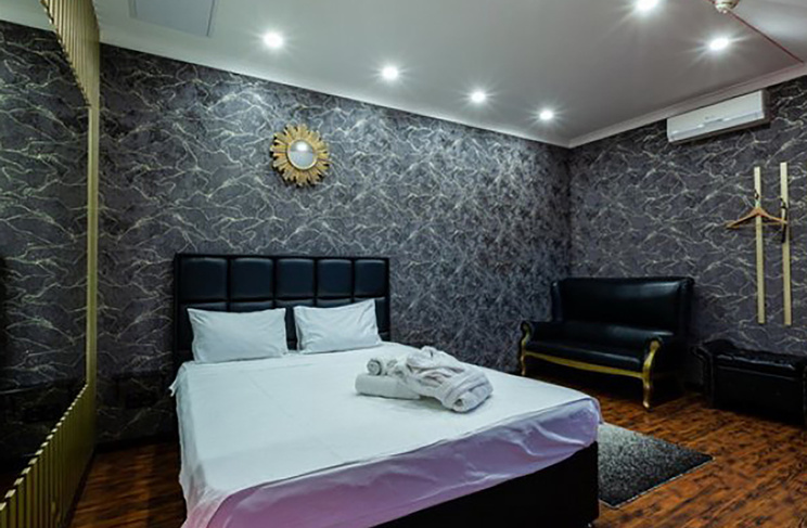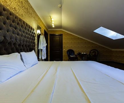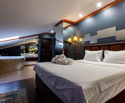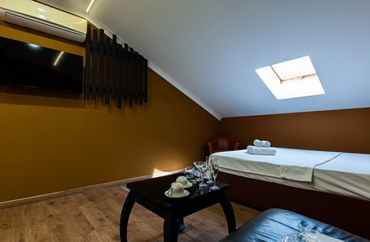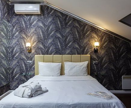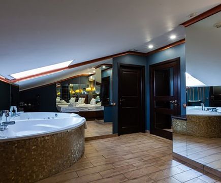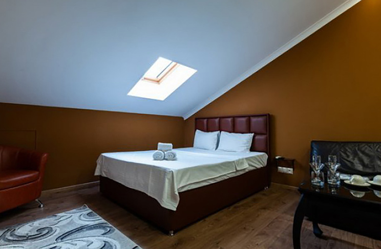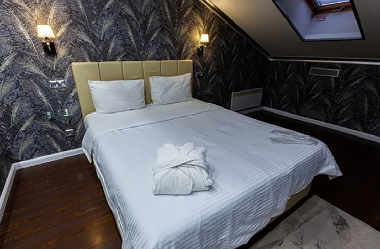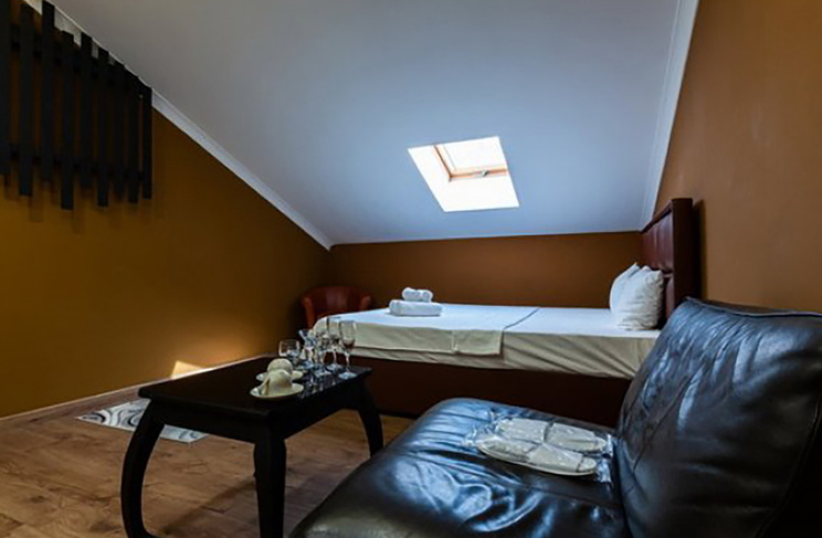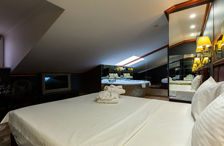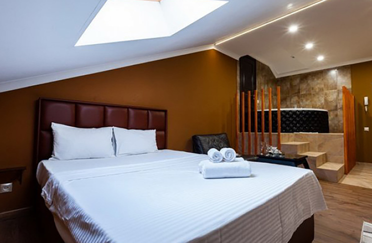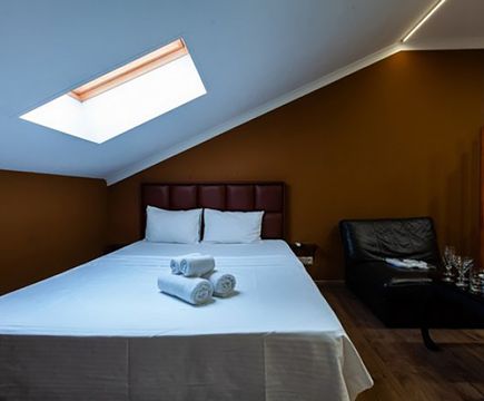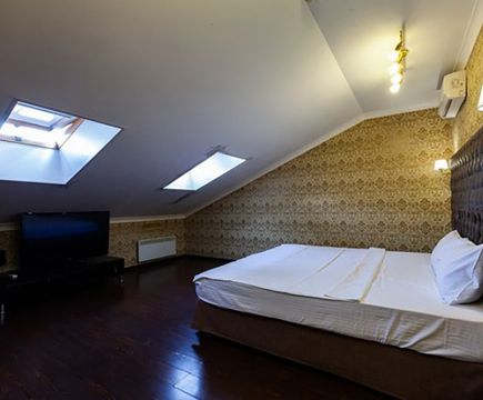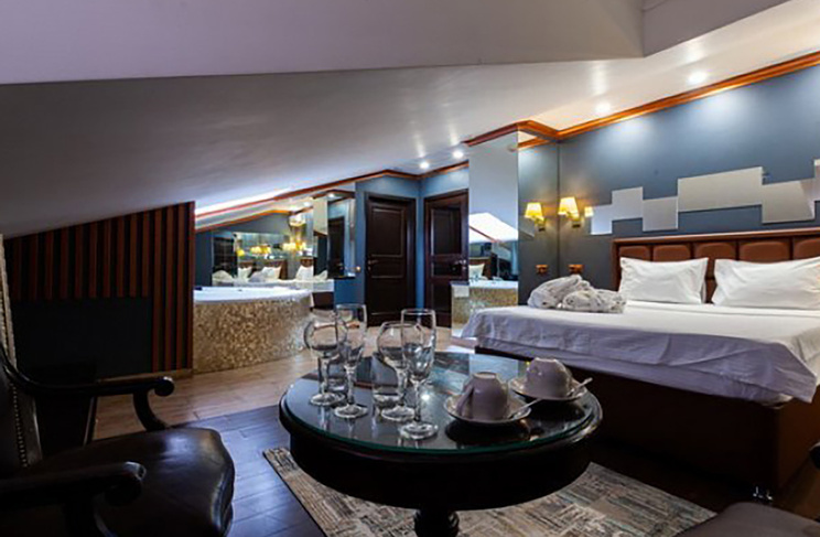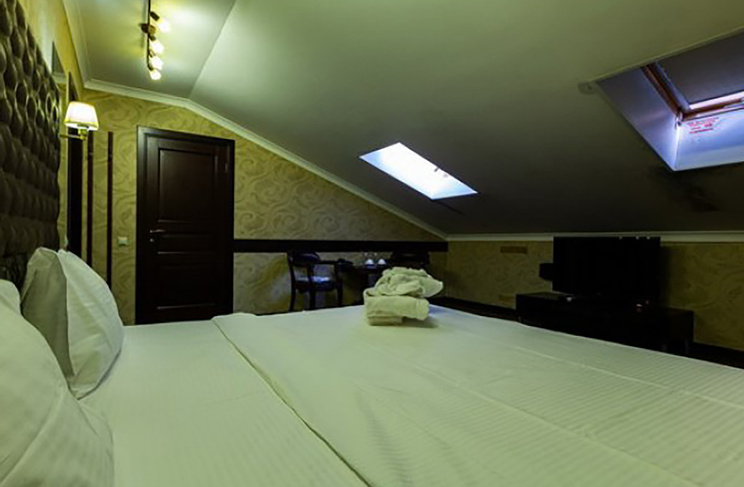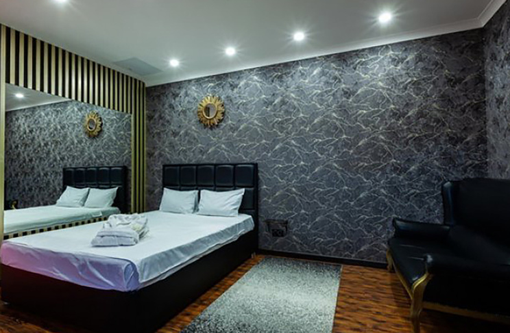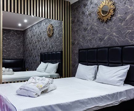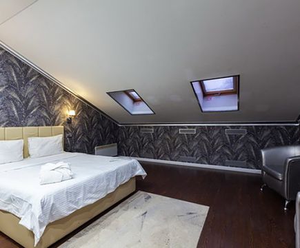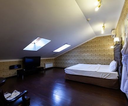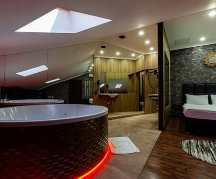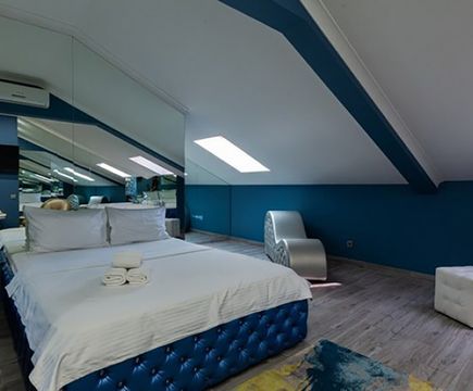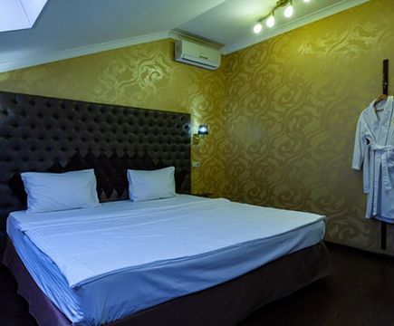 Апартаменты включают 10 помещений: 4 люкса в стиле хай-тек с прямоугольными двуспальными кроватями с кожаным изголовьем, мебелью из натуральных материалов и мансардными окнами; 2 стандарта — это вместительная комната в духе «ампир» и уютный уголок с чертами «минимализма»; 2 люкса с джакузи в разном цветовом наполнении: один в спокойной сине-голубой гамме, другой — в торжественной черно-золотой обстановке. Уникальный De Lux c освещением — имитацией звездного неба, зеркальным потолком, и английский люкс с мозаичным джакузи представлены в современном стиле «модерн» с элементами направления лофт. В каждом номере есть мини-бар. Возможно использование просторных помещений для проведения фотосессии, дружеских вечеринок и романтических свиданий влюбленных. Воспользоваться услугами отеля могут и новобрачные, роскошная мебель, мозаика и интерьерные детали в духе ампир и лучших традиций классики подарят уют и незабываемые впечатления посетителям.