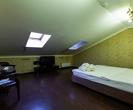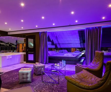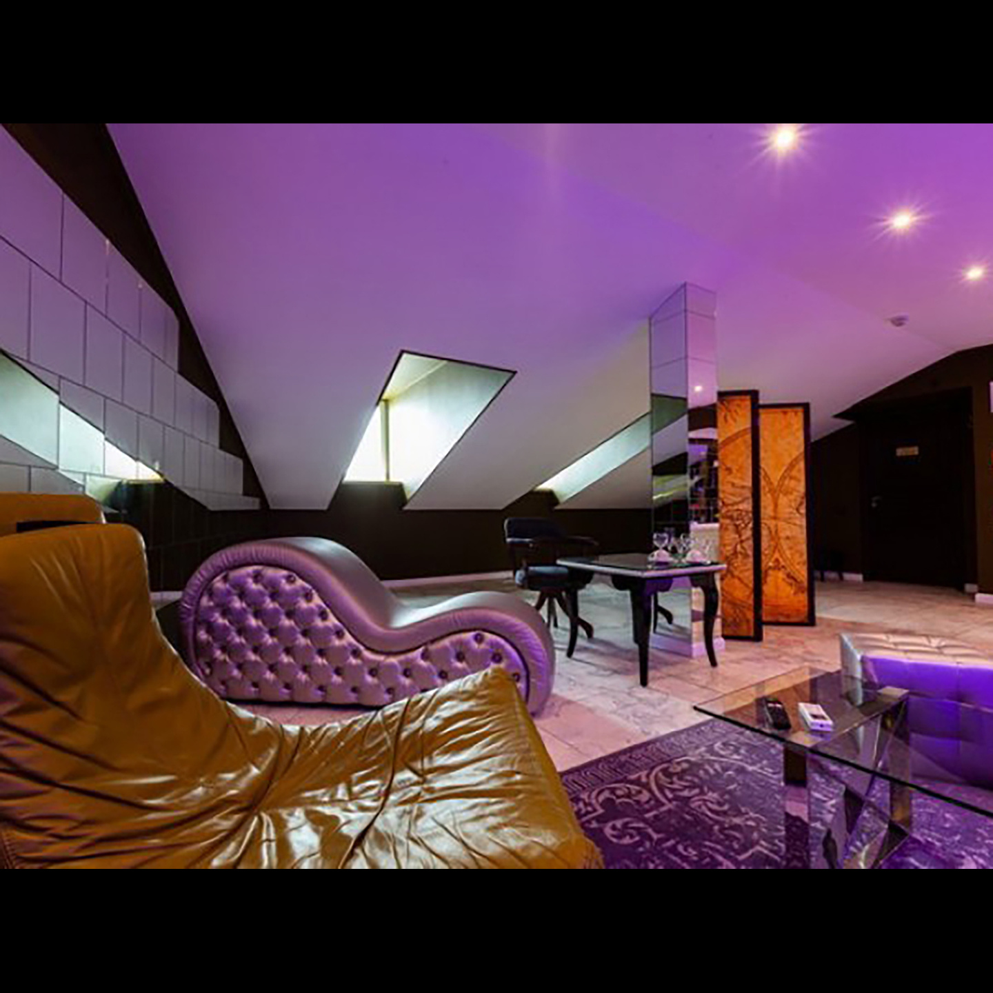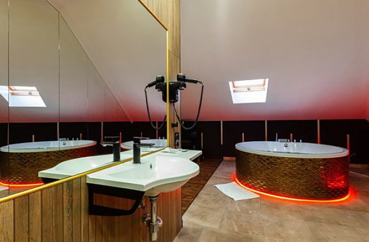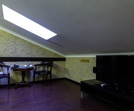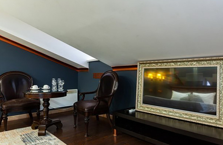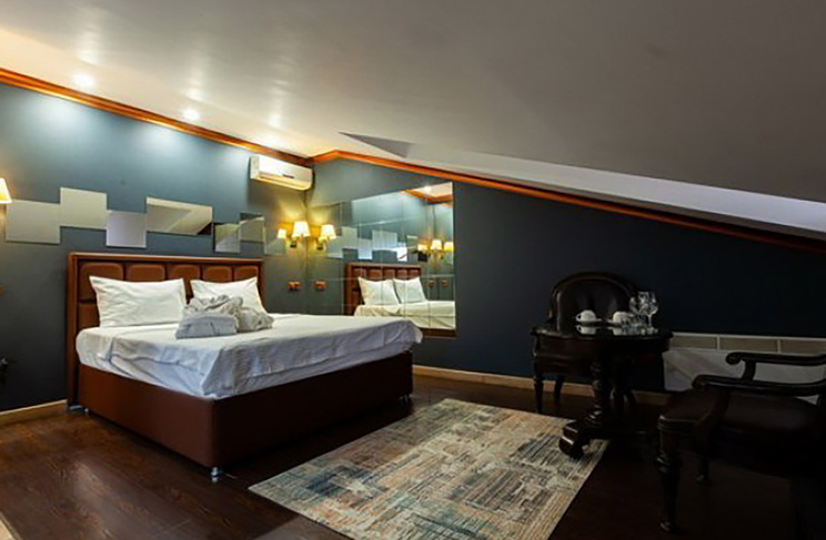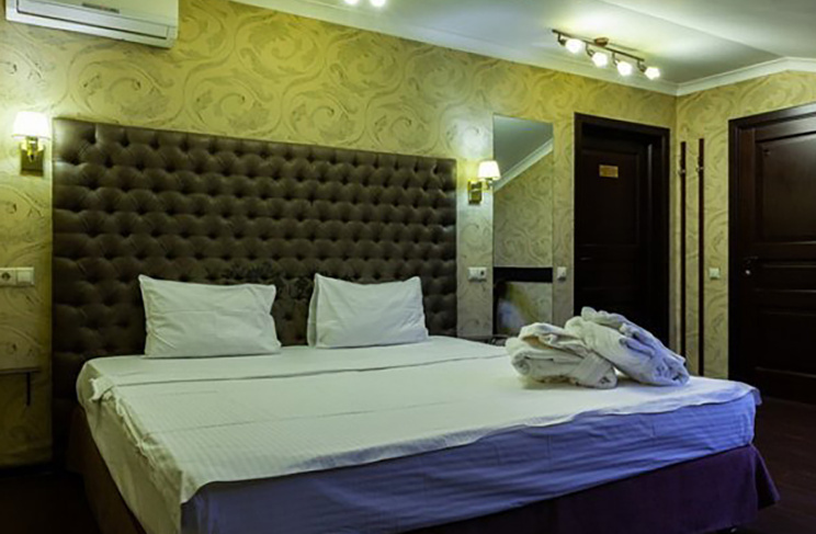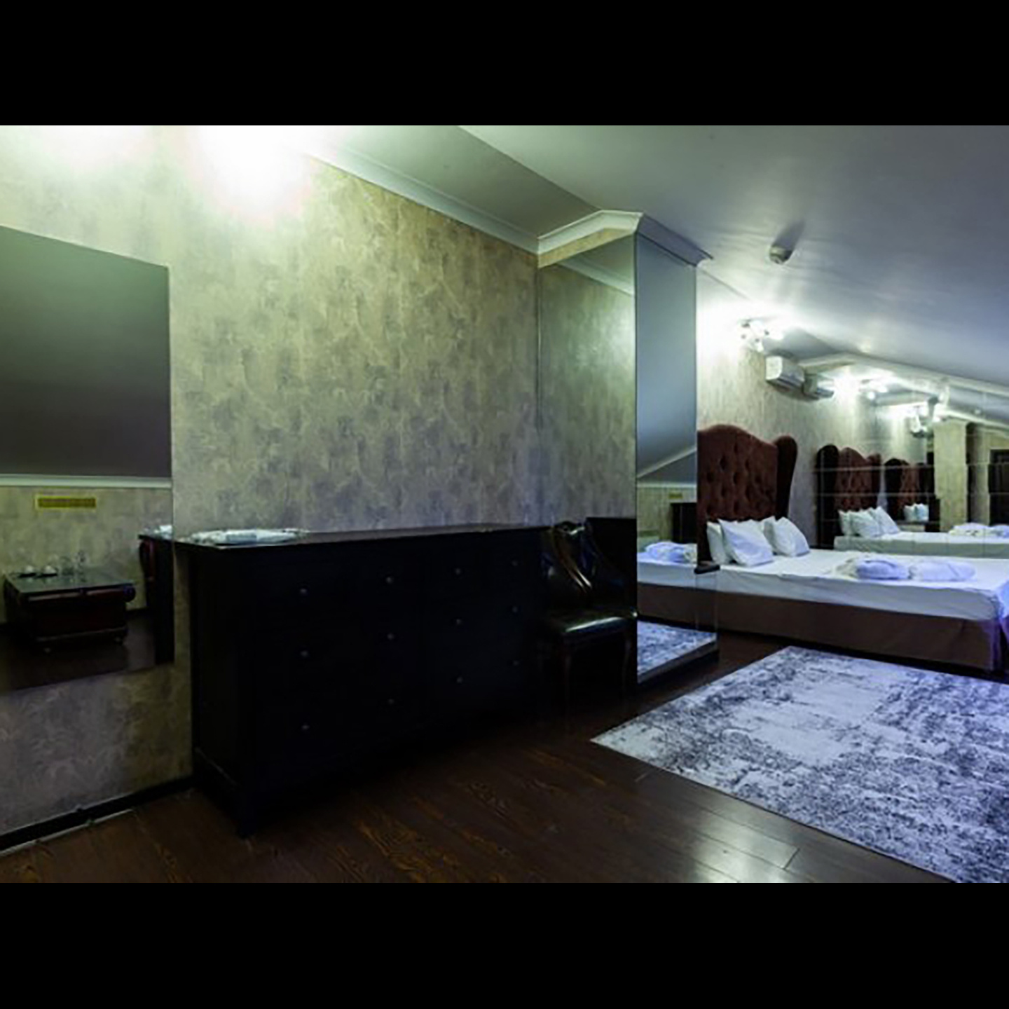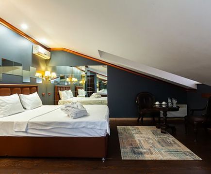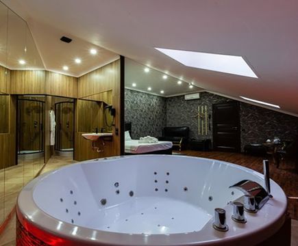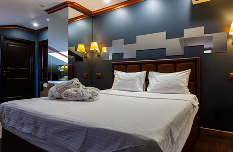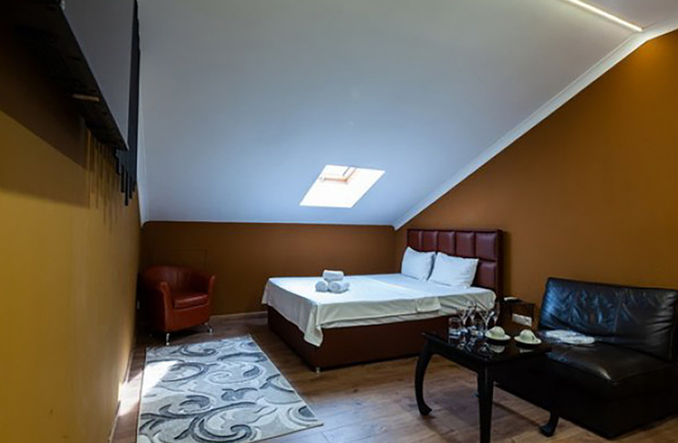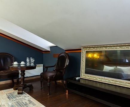 Апартаменты включают 10 помещений: 4 люкса в стиле хай-тек с прямоугольными двуспальными кроватями с кожаным изголовьем, мебелью из натуральных материалов и мансардными окнами; 2 стандарта — это вместительная комната в духе «ампир» и уютный уголок с чертами «минимализма»; 2 люкса с джакузи в разном цветовом наполнении: один в спокойной сине-голубой гамме, другой — в торжественной черно-золотой обстановке. Уникальный De Lux c освещением — имитацией звездного неба, зеркальным потолком, и английский люкс с мозаичным джакузи представлены в современном стиле «модерн» с элементами направления лофт. В каждом номере есть мини-бар. Возможно использование просторных помещений для проведения фотосессии, дружеских вечеринок и романтических свиданий влюбленных. Воспользоваться услугами отеля могут и новобрачные, роскошная мебель, мозаика и интерьерные детали в духе ампир и лучших традиций классики подарят уют и незабываемые впечатления посетителям.