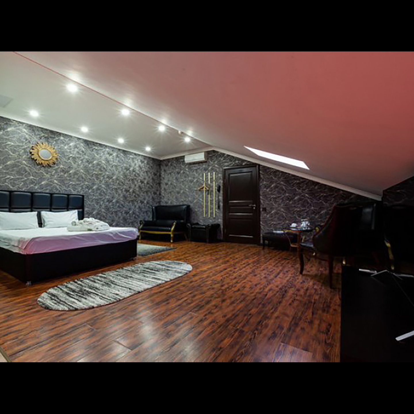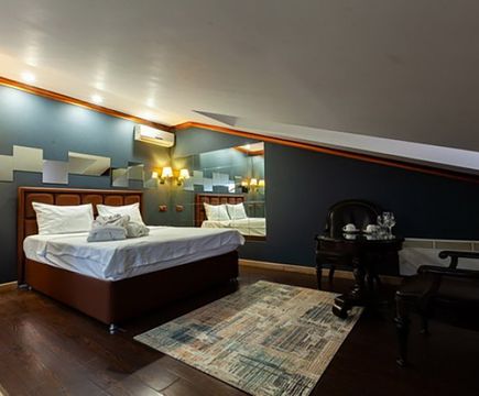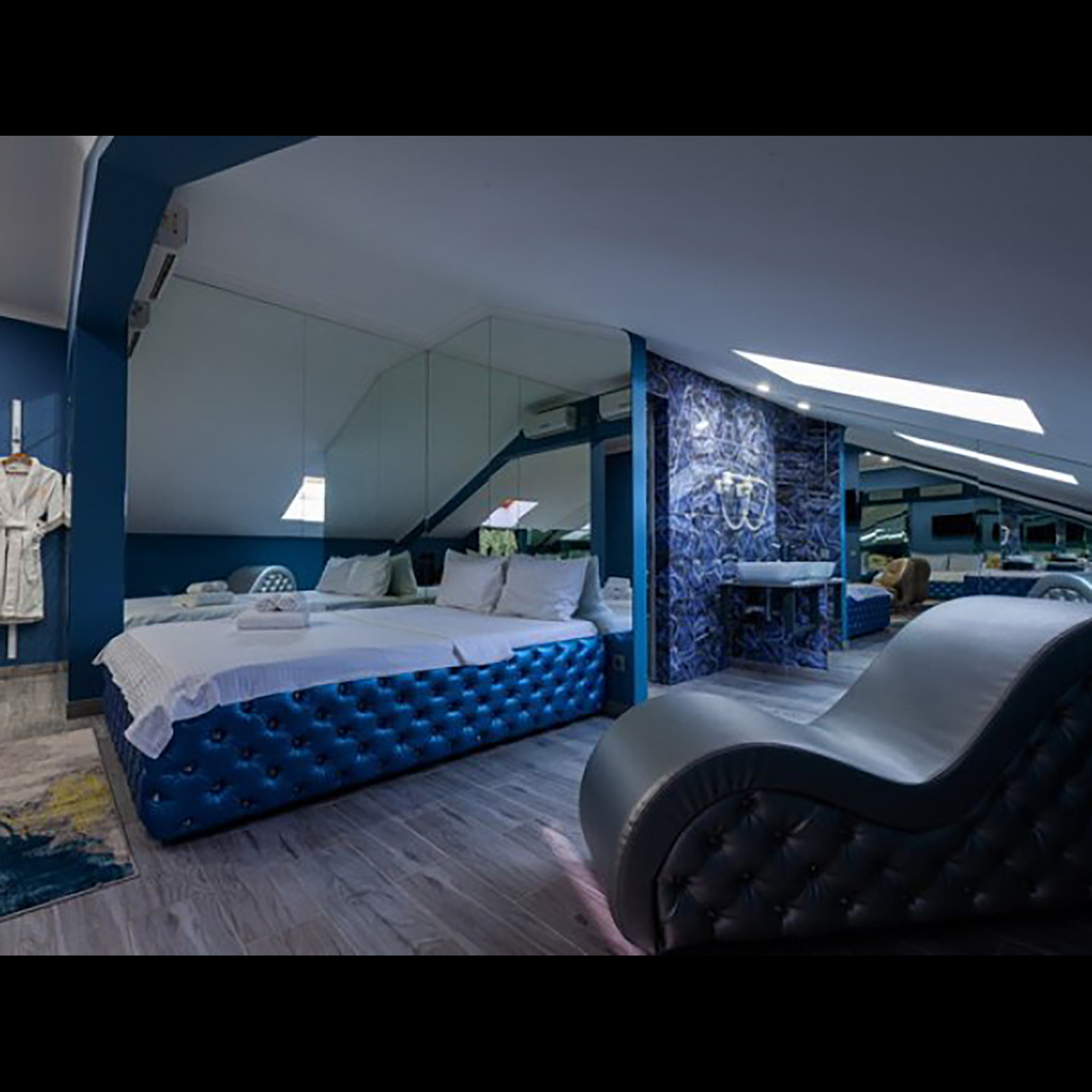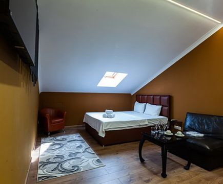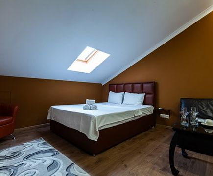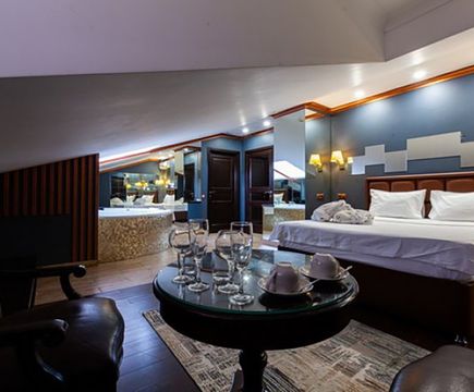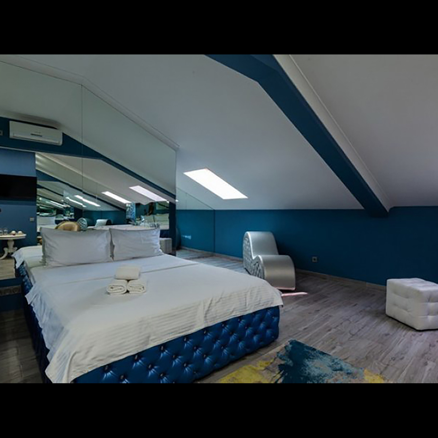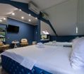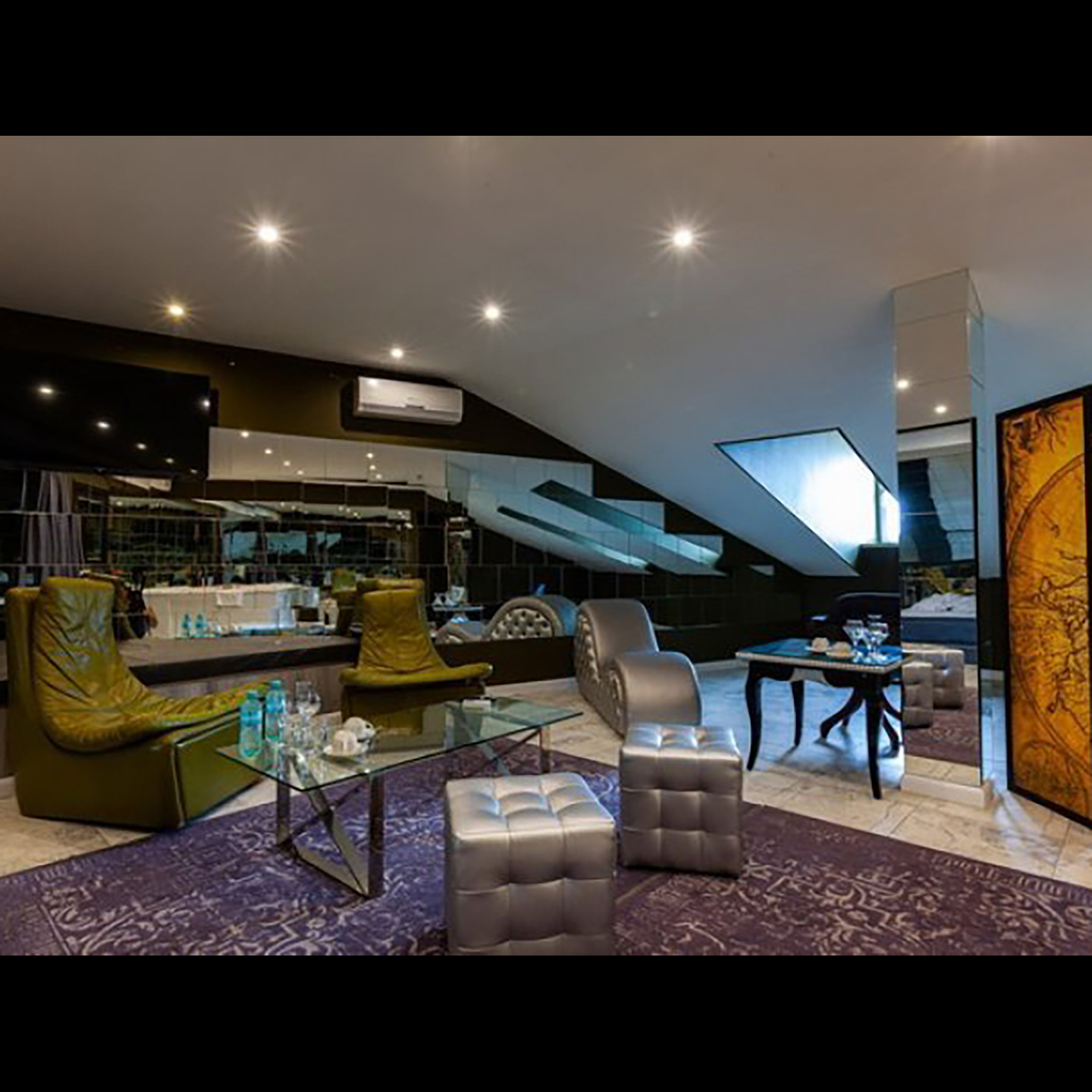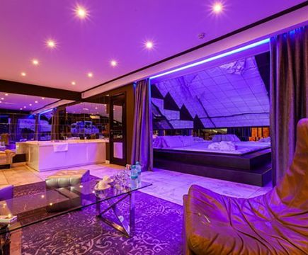 Апартаменты включают 10 помещений: 4 люкса в стиле хай-тек с прямоугольными двуспальными кроватями с кожаным изголовьем, мебелью из натуральных материалов и мансардными окнами; 2 стандарта — это вместительная комната в духе «ампир» и уютный уголок с чертами «минимализма»; 2 люкса с джакузи в разном цветовом наполнении: один в спокойной сине-голубой гамме, другой — в торжественной черно-золотой обстановке. Уникальный De Lux c освещением — имитацией звездного неба, зеркальным потолком, и английский люкс с мозаичным джакузи представлены в современном стиле «модерн» с элементами направления лофт. В каждом номере есть мини-бар. Возможно использование просторных помещений для проведения фотосессии, дружеских вечеринок и романтических свиданий влюбленных. Воспользоваться услугами отеля могут и новобрачные, роскошная мебель, мозаика и интерьерные детали в духе ампир и лучших традиций классики подарят уют и незабываемые впечатления посетителям.