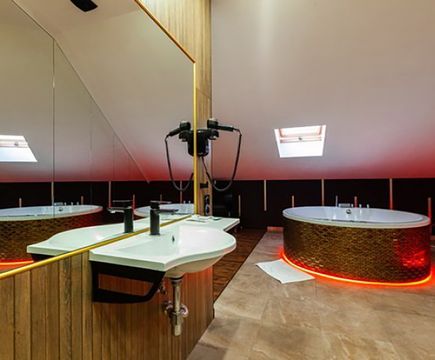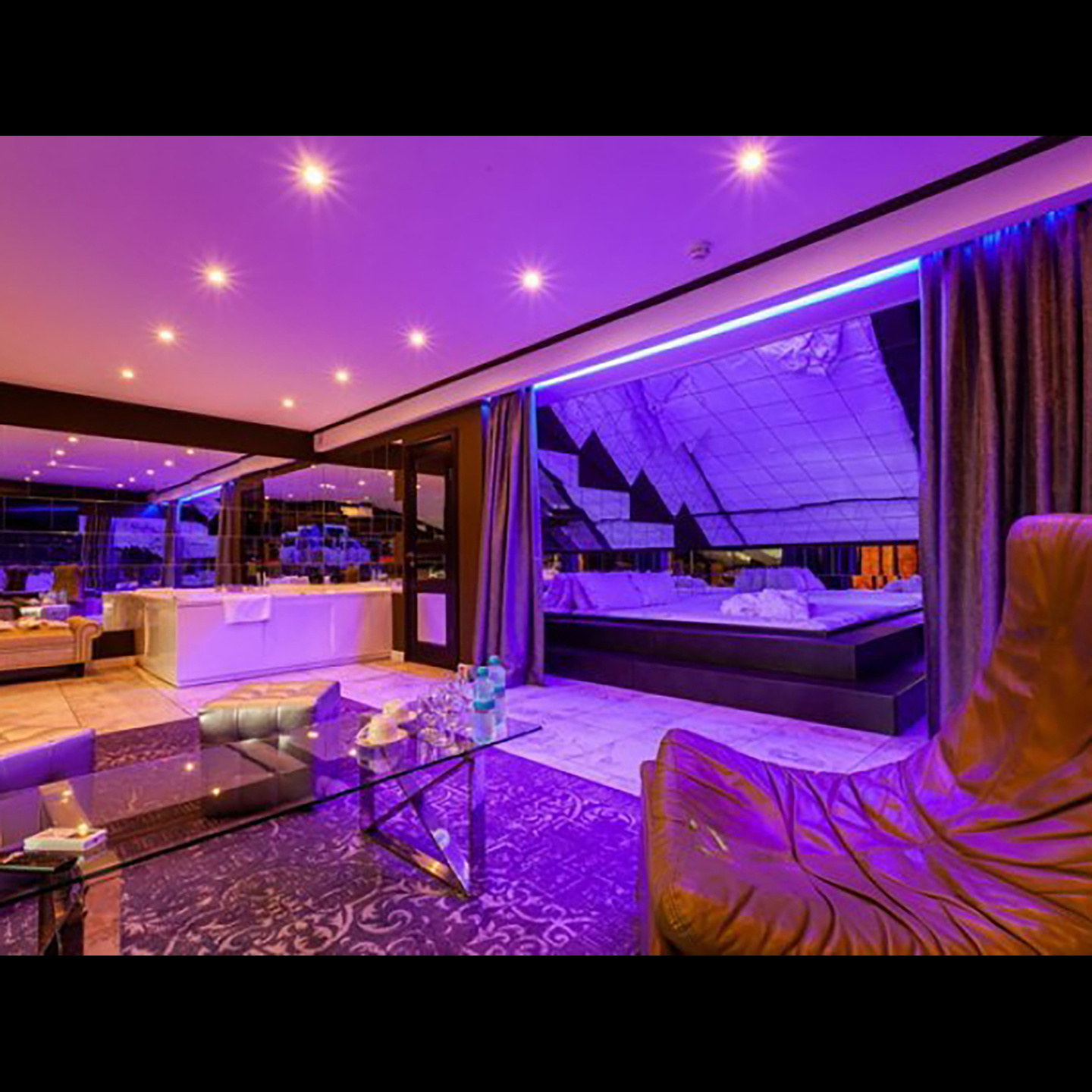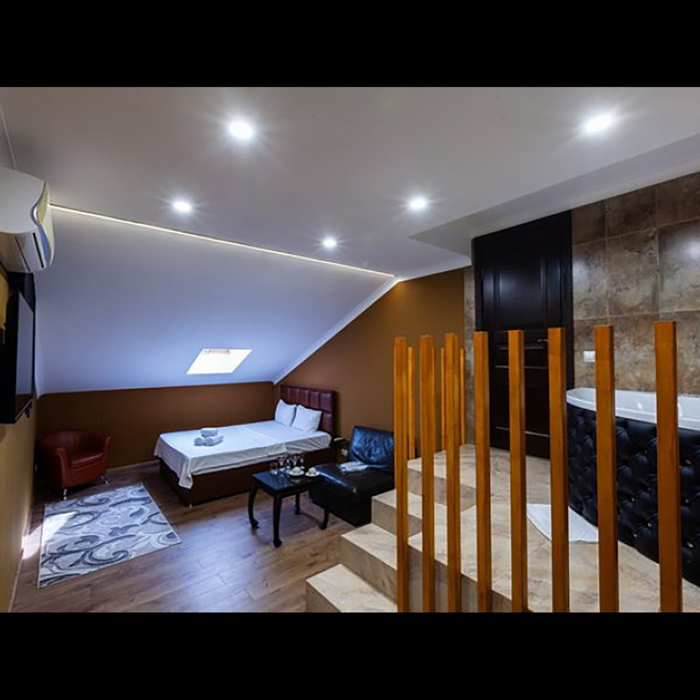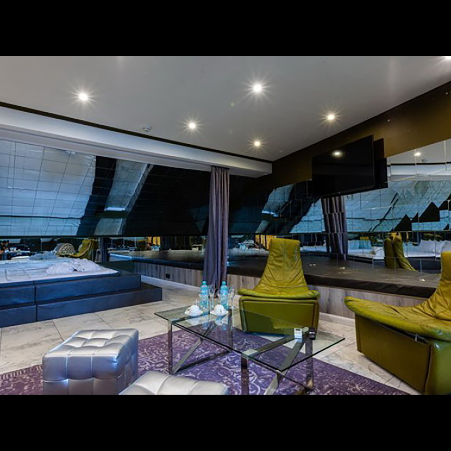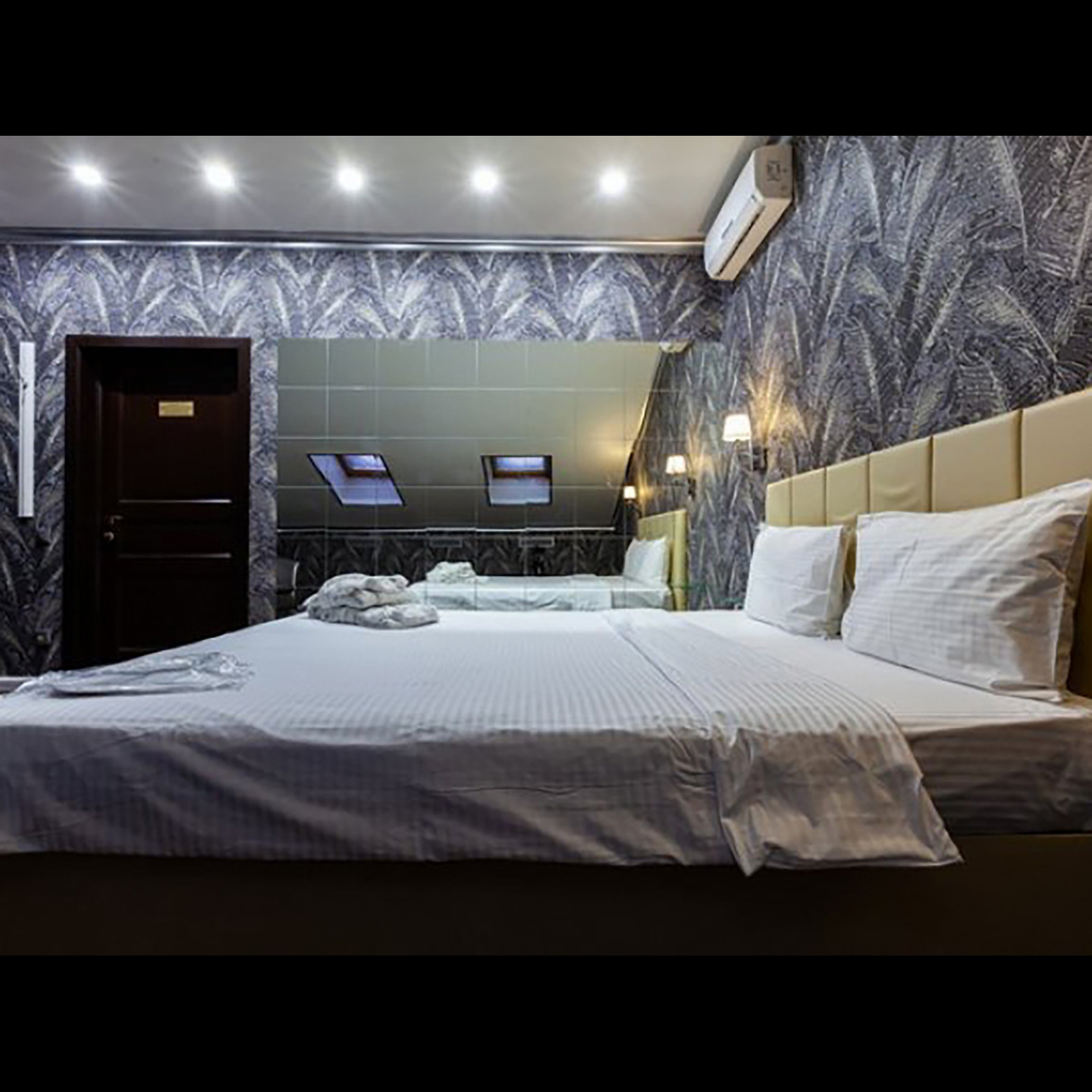 Апартаменты включают 10 помещений: 4 люкса в стиле хай-тек с прямоугольными двуспальными кроватями с кожаным изголовьем, мебелью из натуральных материалов и мансардными окнами; 2 стандарта — это вместительная комната в духе «ампир» и уютный уголок с чертами «минимализма»; 2 люкса с джакузи в разном цветовом наполнении: один в спокойной сине-голубой гамме, другой — в торжественной черно-золотой обстановке. Уникальный De Lux c освещением — имитацией звездного неба, зеркальным потолком, и английский люкс с мозаичным джакузи представлены в современном стиле «модерн» с элементами направления лофт. В каждом номере есть мини-бар. Возможно использование просторных помещений для проведения фотосессии, дружеских вечеринок и романтических свиданий влюбленных. Воспользоваться услугами отеля могут и новобрачные, роскошная мебель, мозаика и интерьерные детали в духе ампир и лучших традиций классики подарят уют и незабываемые впечатления посетителям.