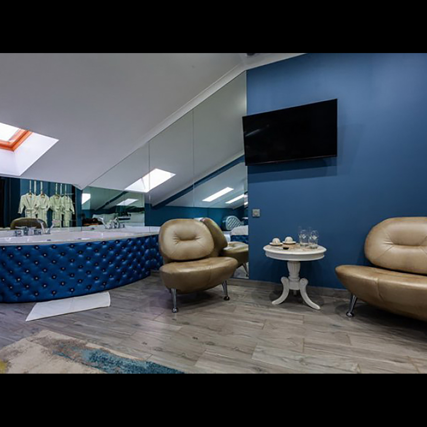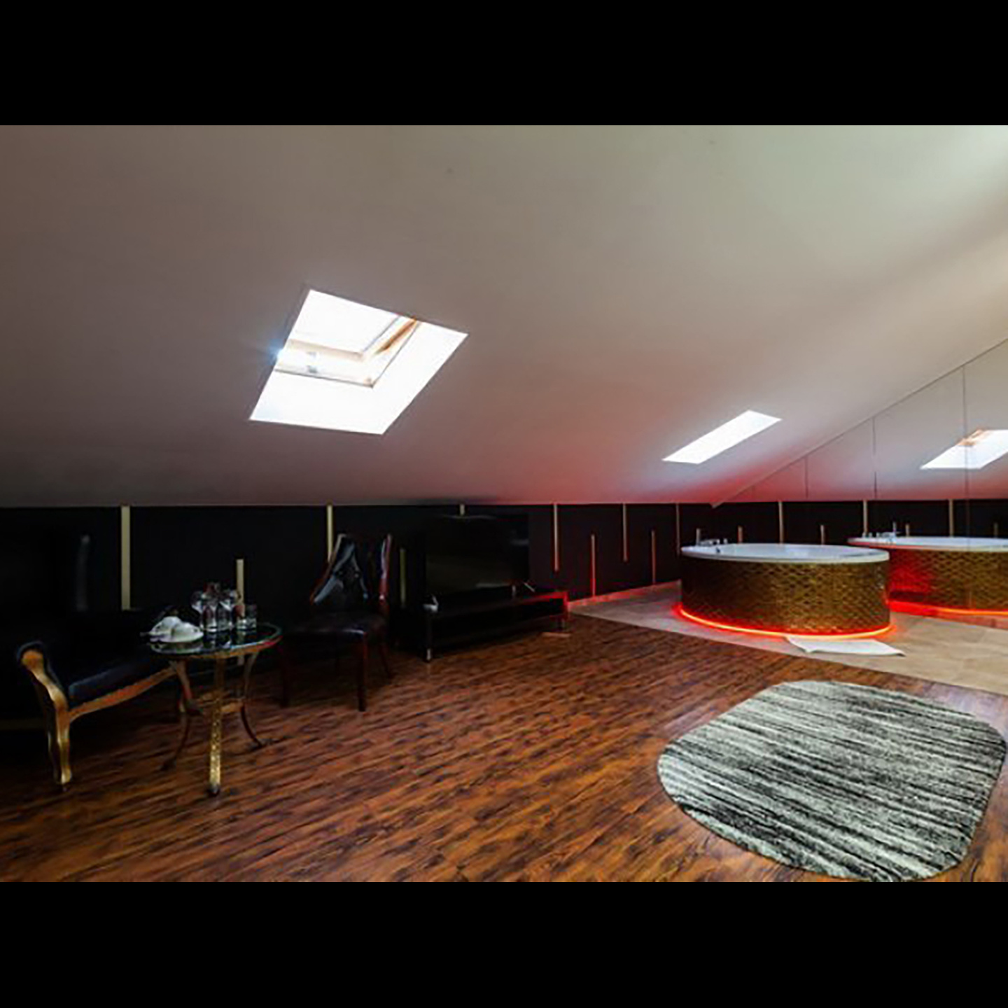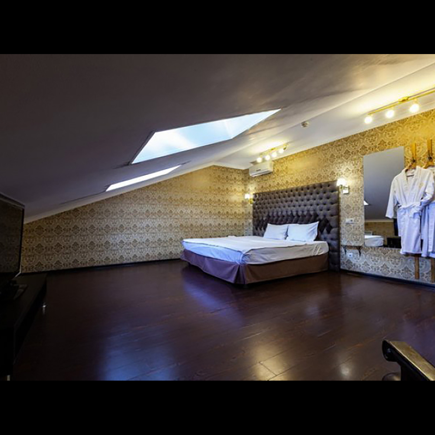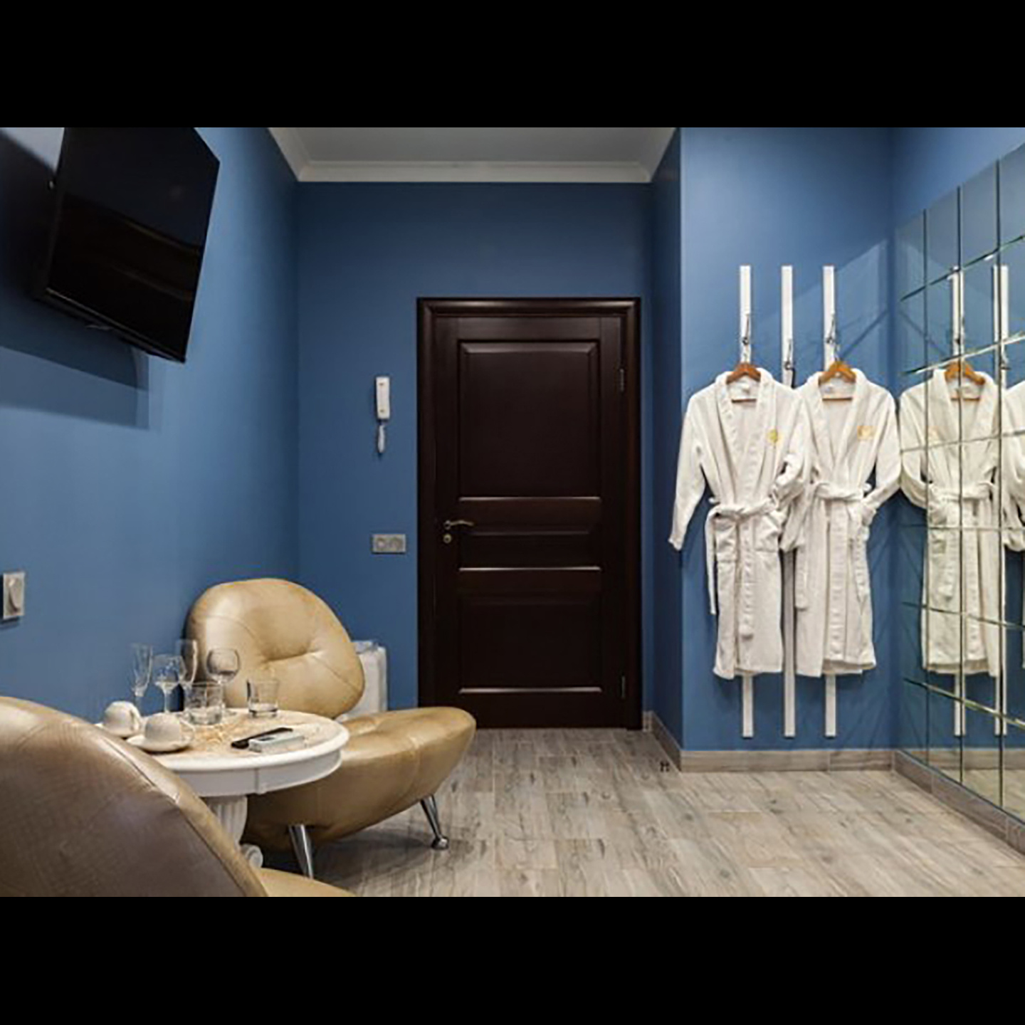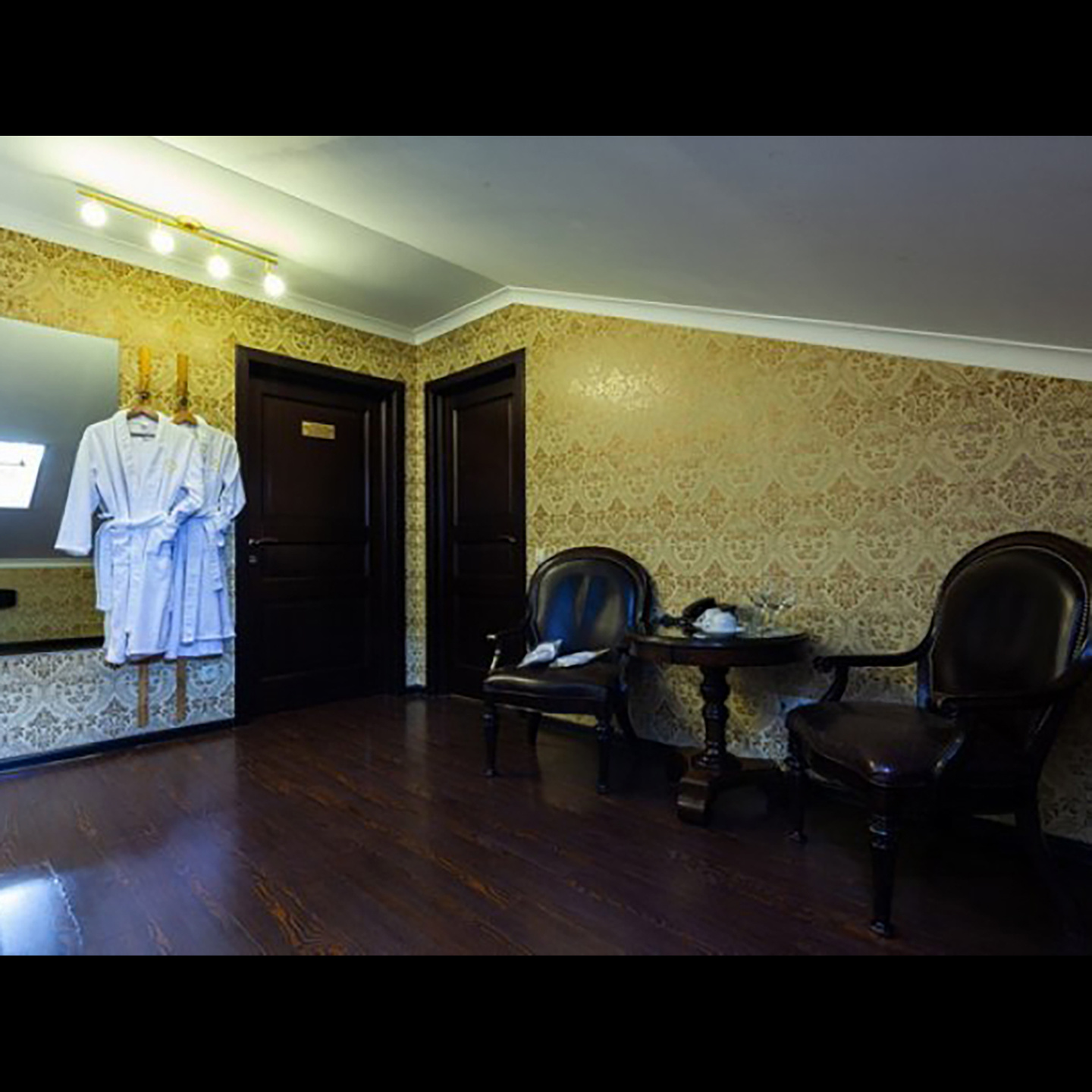 Апартаменты включают 10 помещений: 4 люкса в стиле хай-тек с прямоугольными двуспальными кроватями с кожаным изголовьем, мебелью из натуральных материалов и мансардными окнами; 2 стандарта — это вместительная комната в духе «ампир» и уютный уголок с чертами «минимализма»; 2 люкса с джакузи в разном цветовом наполнении: один в спокойной сине-голубой гамме, другой — в торжественной черно-золотой обстановке. Уникальный De Lux c освещением — имитацией звездного неба, зеркальным потолком, и английский люкс с мозаичным джакузи представлены в современном стиле «модерн» с элементами направления лофт. В каждом номере есть мини-бар. Возможно использование просторных помещений для проведения фотосессии, дружеских вечеринок и романтических свиданий влюбленных. Воспользоваться услугами отеля могут и новобрачные, роскошная мебель, мозаика и интерьерные детали в духе ампир и лучших традиций классики подарят уют и незабываемые впечатления посетителям.