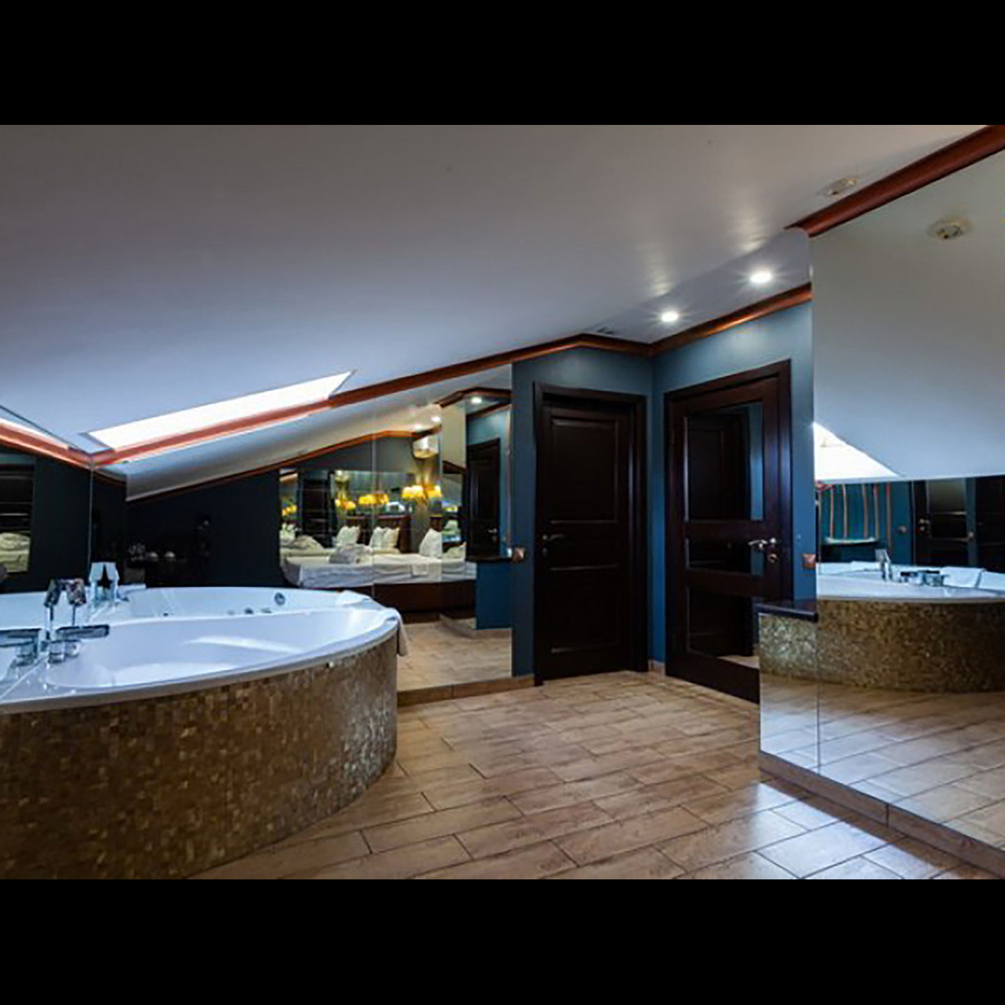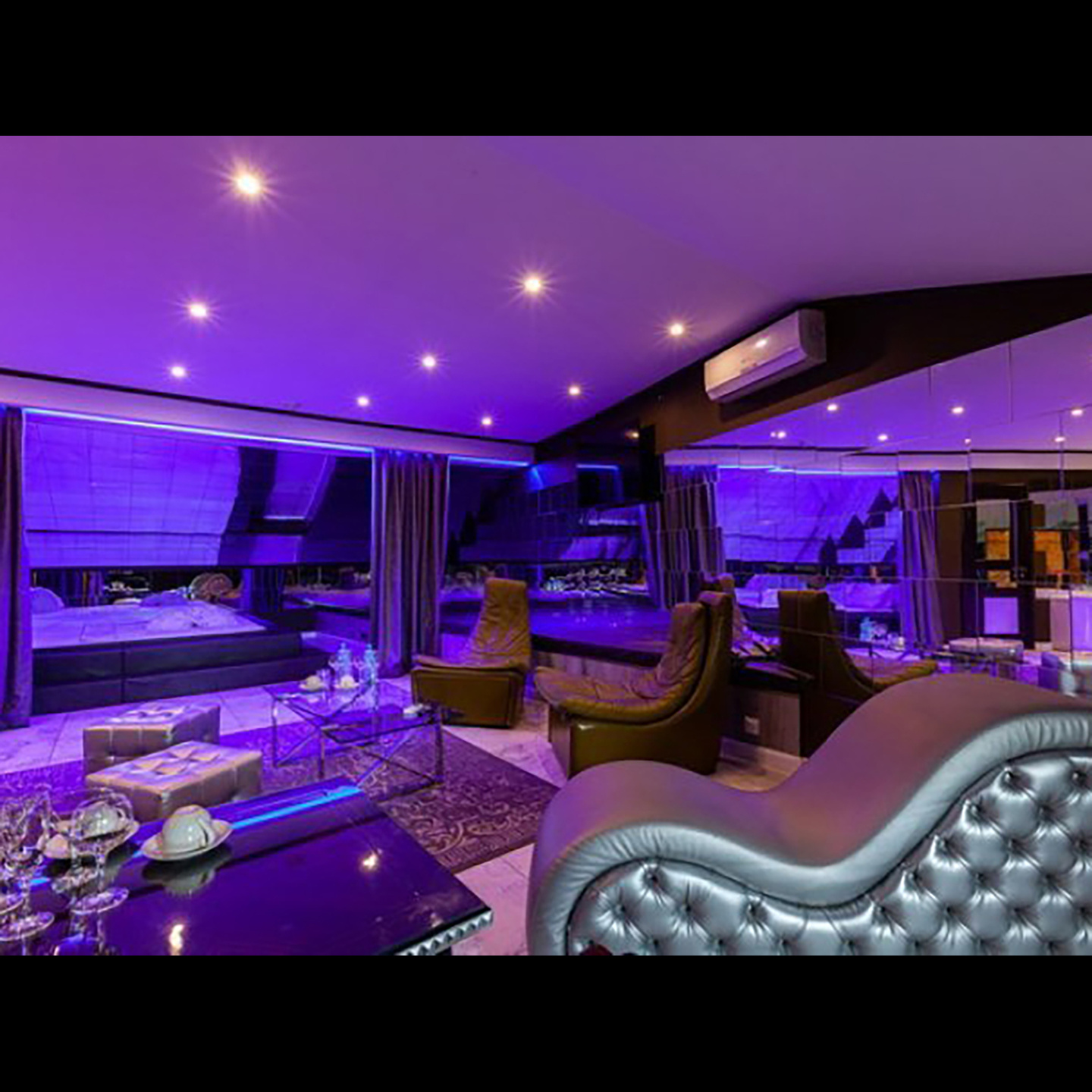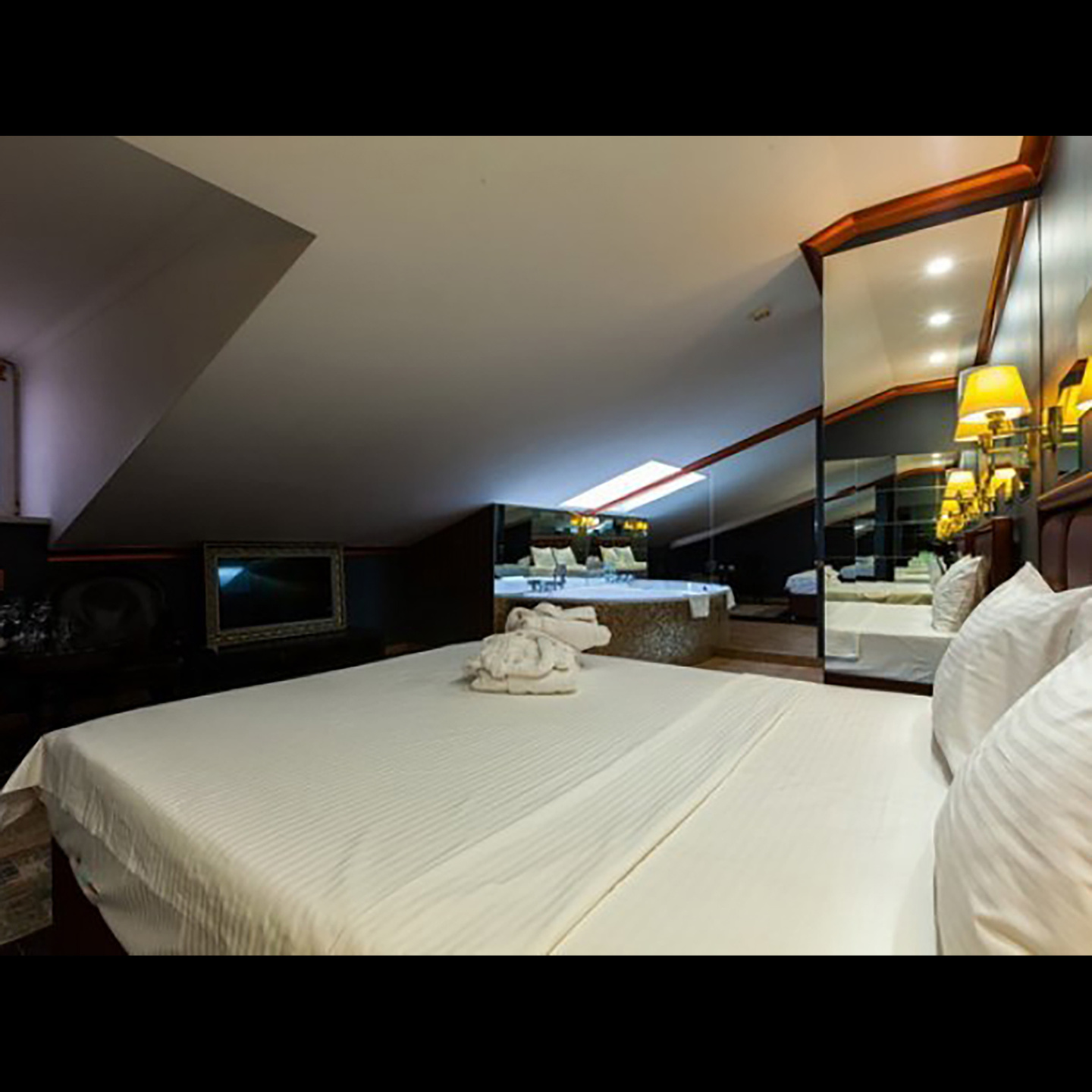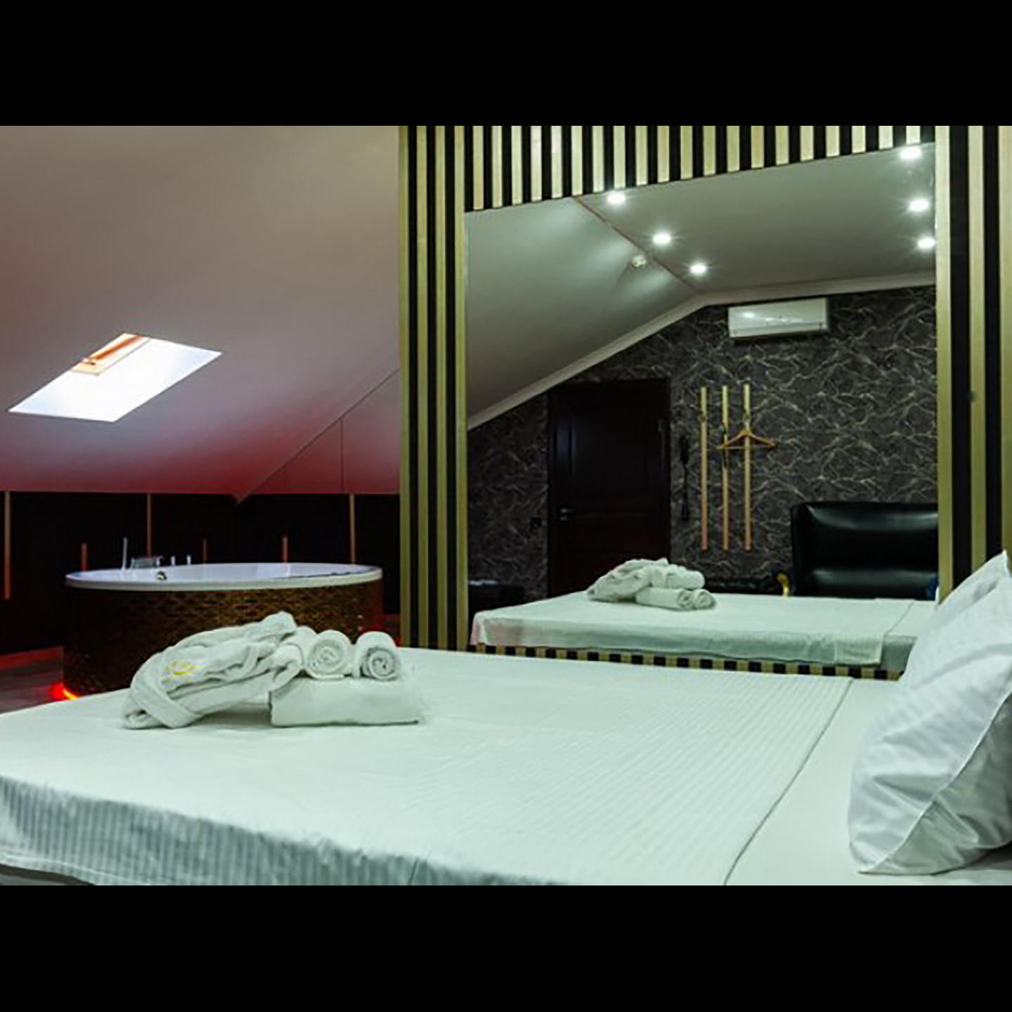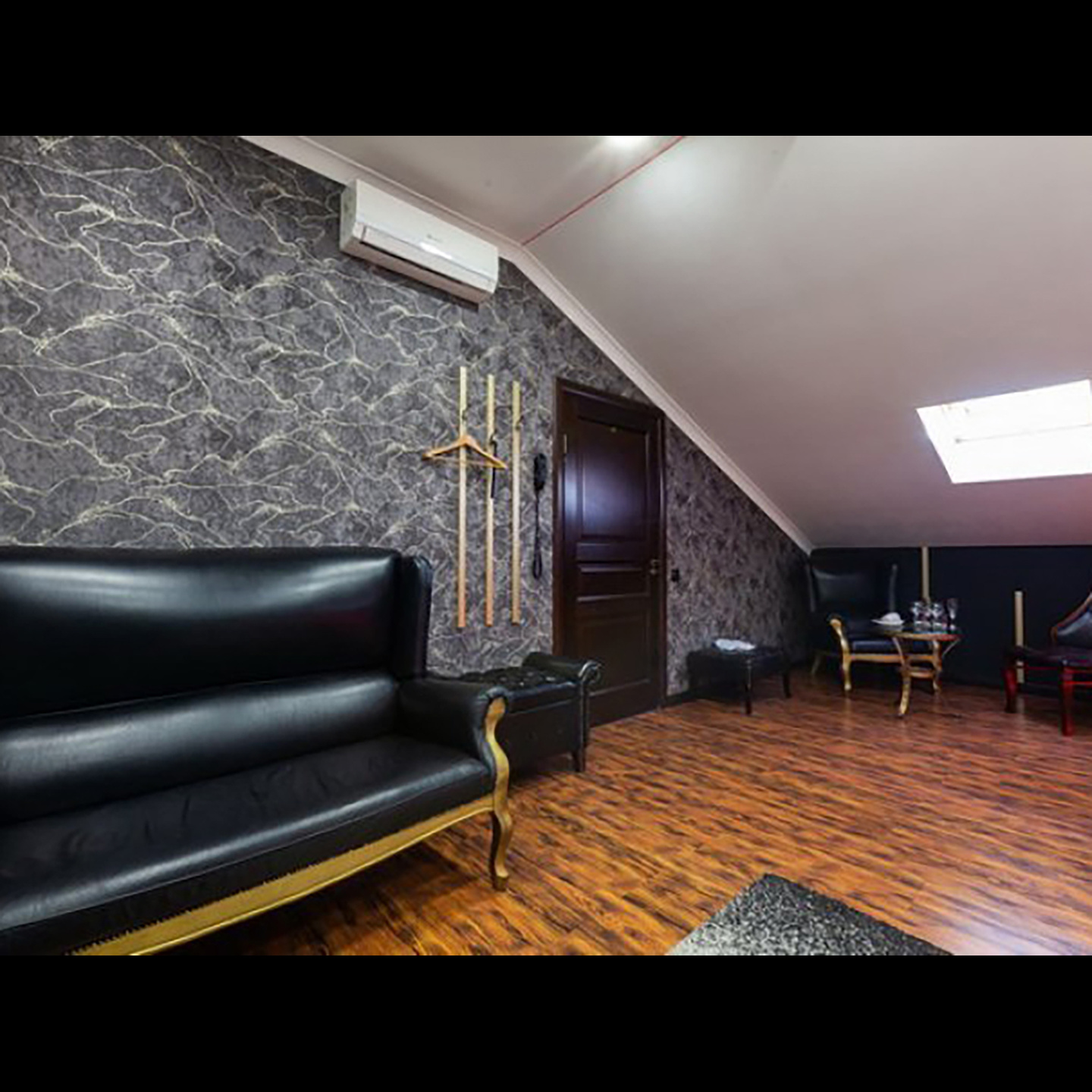 Апартаменты включают 10 помещений: 4 люкса в стиле хай-тек с прямоугольными двуспальными кроватями с кожаным изголовьем, мебелью из натуральных материалов и мансардными окнами; 2 стандарта — это вместительная комната в духе «ампир» и уютный уголок с чертами «минимализма»; 2 люкса с джакузи в разном цветовом наполнении: один в спокойной сине-голубой гамме, другой — в торжественной черно-золотой обстановке. Уникальный De Lux c освещением — имитацией звездного неба, зеркальным потолком, и английский люкс с мозаичным джакузи представлены в современном стиле «модерн» с элементами направления лофт. В каждом номере есть мини-бар. Возможно использование просторных помещений для проведения фотосессии, дружеских вечеринок и романтических свиданий влюбленных. Воспользоваться услугами отеля могут и новобрачные, роскошная мебель, мозаика и интерьерные детали в духе ампир и лучших традиций классики подарят уют и незабываемые впечатления посетителям.