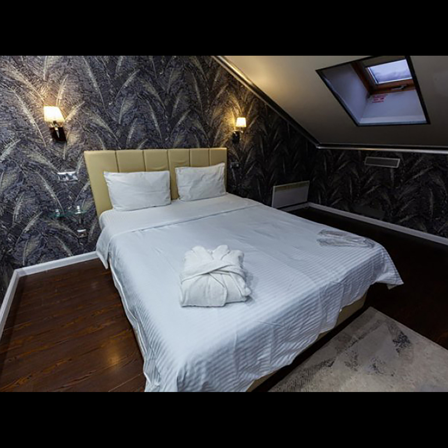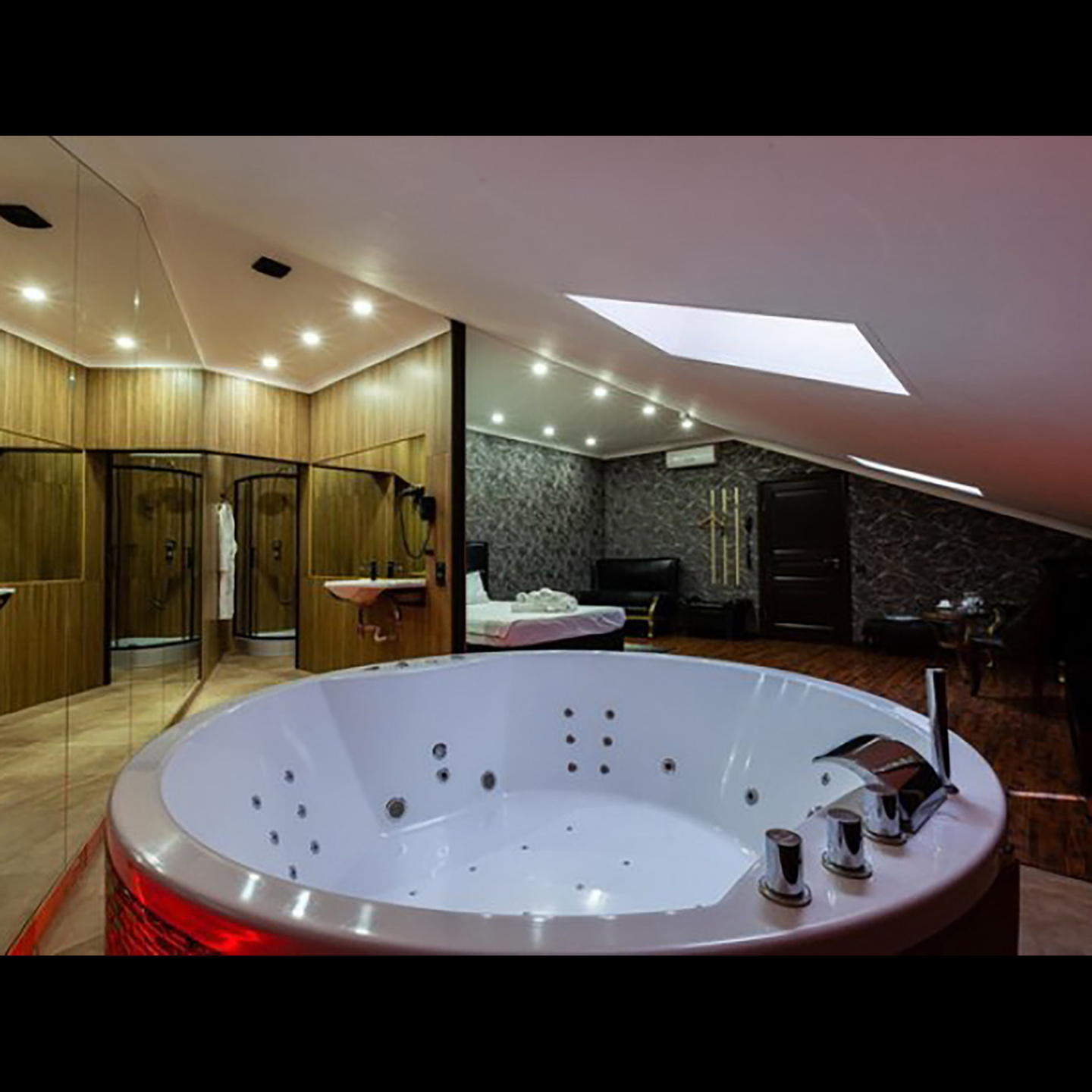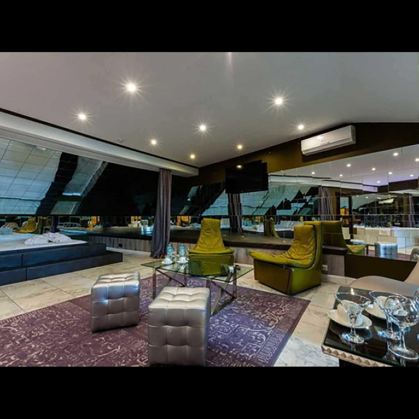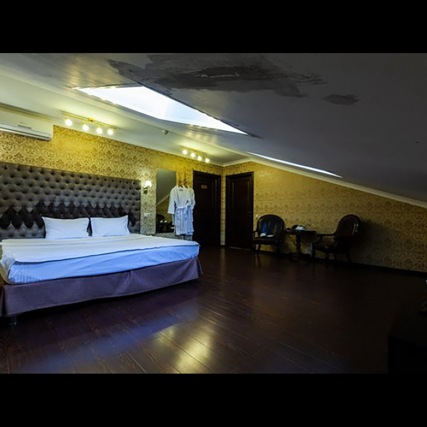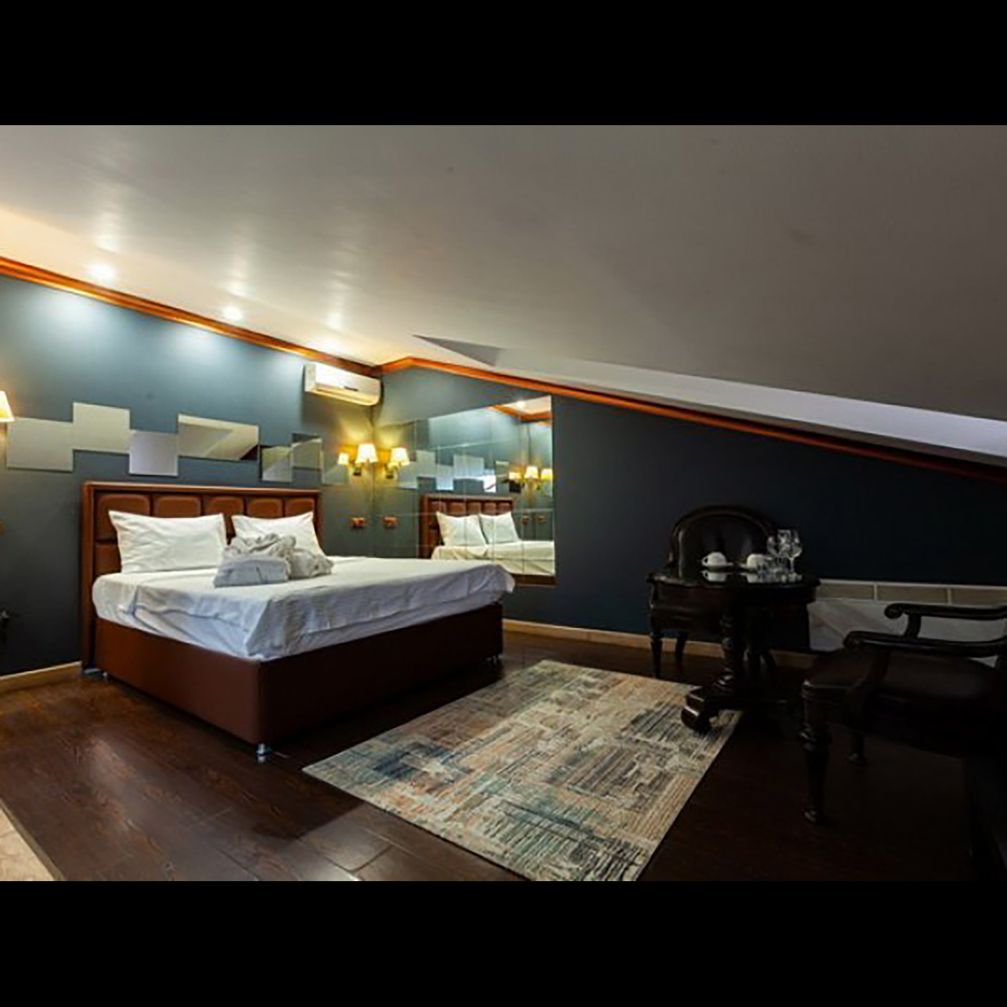 Апартаменты включают 10 помещений: 4 люкса в стиле хай-тек с прямоугольными двуспальными кроватями с кожаным изголовьем, мебелью из натуральных материалов и мансардными окнами; 2 стандарта — это вместительная комната в духе «ампир» и уютный уголок с чертами «минимализма»; 2 люкса с джакузи в разном цветовом наполнении: один в спокойной сине-голубой гамме, другой — в торжественной черно-золотой обстановке. Уникальный De Lux c освещением — имитацией звездного неба, зеркальным потолком, и английский люкс с мозаичным джакузи представлены в современном стиле «модерн» с элементами направления лофт. В каждом номере есть мини-бар. Возможно использование просторных помещений для проведения фотосессии, дружеских вечеринок и романтических свиданий влюбленных. Воспользоваться услугами отеля могут и новобрачные, роскошная мебель, мозаика и интерьерные детали в духе ампир и лучших традиций классики подарят уют и незабываемые впечатления посетителям.
