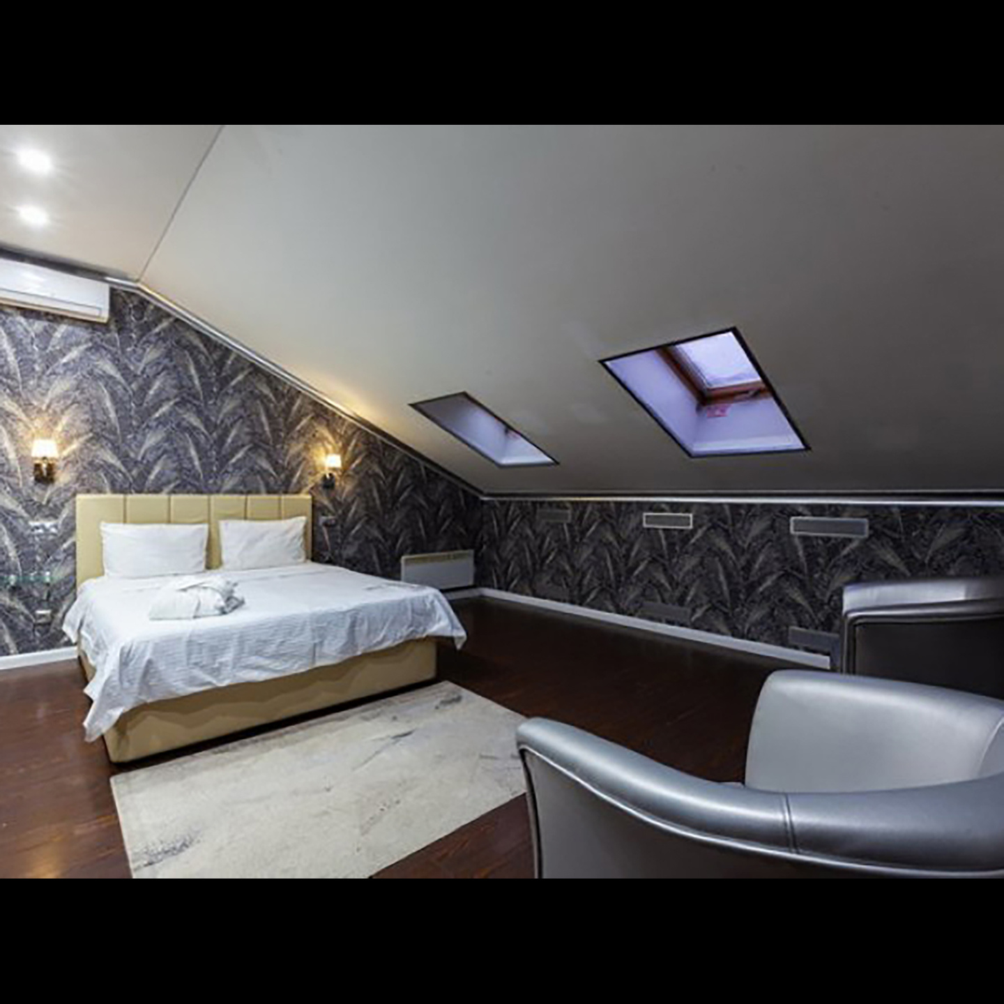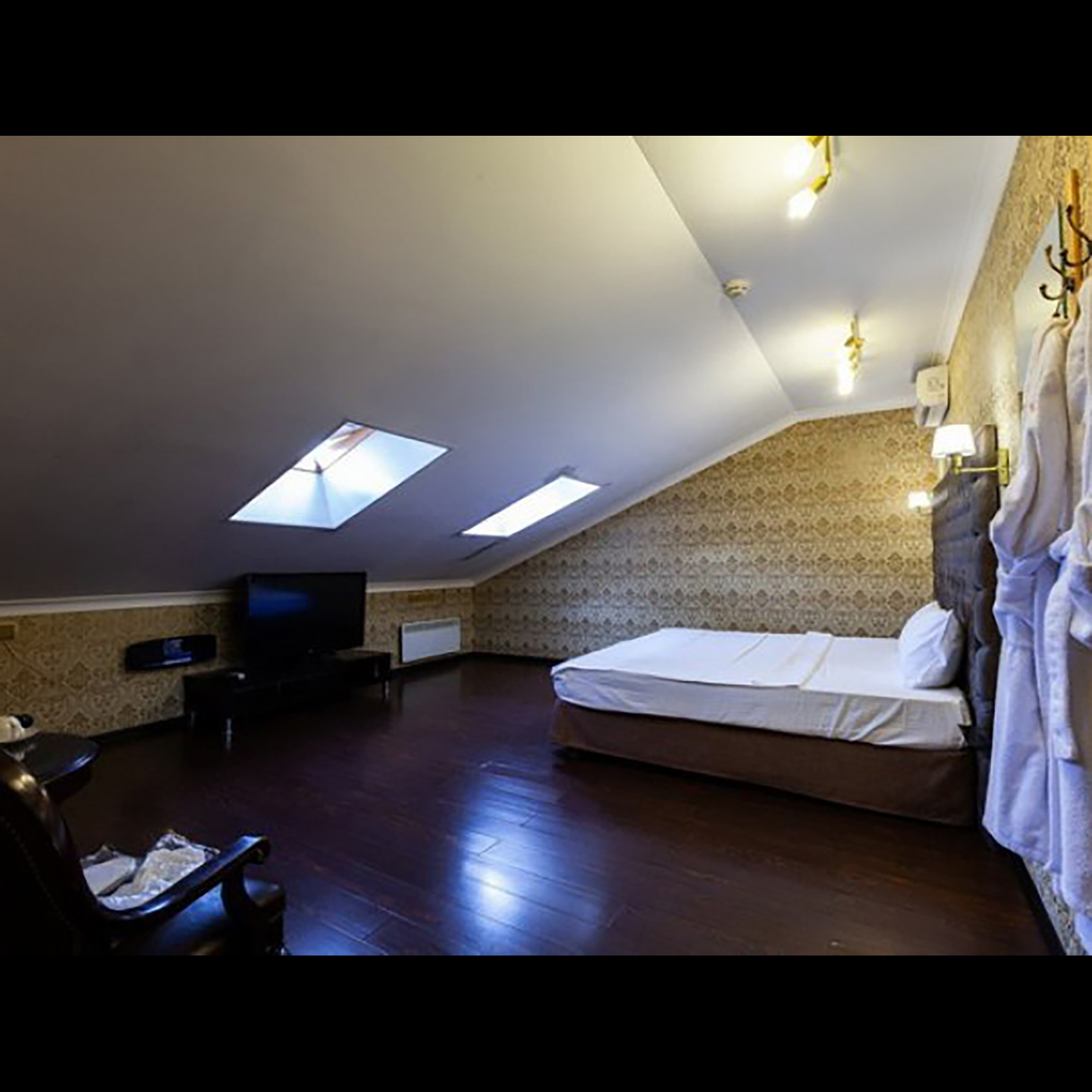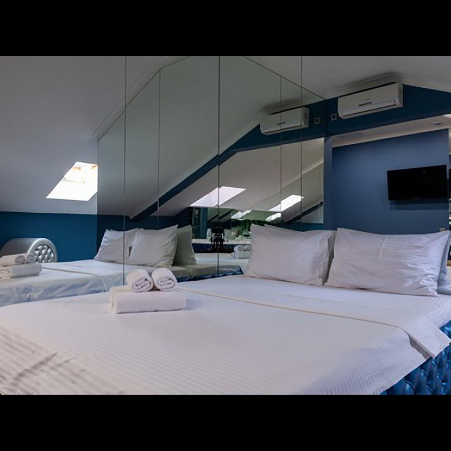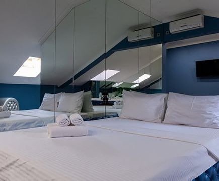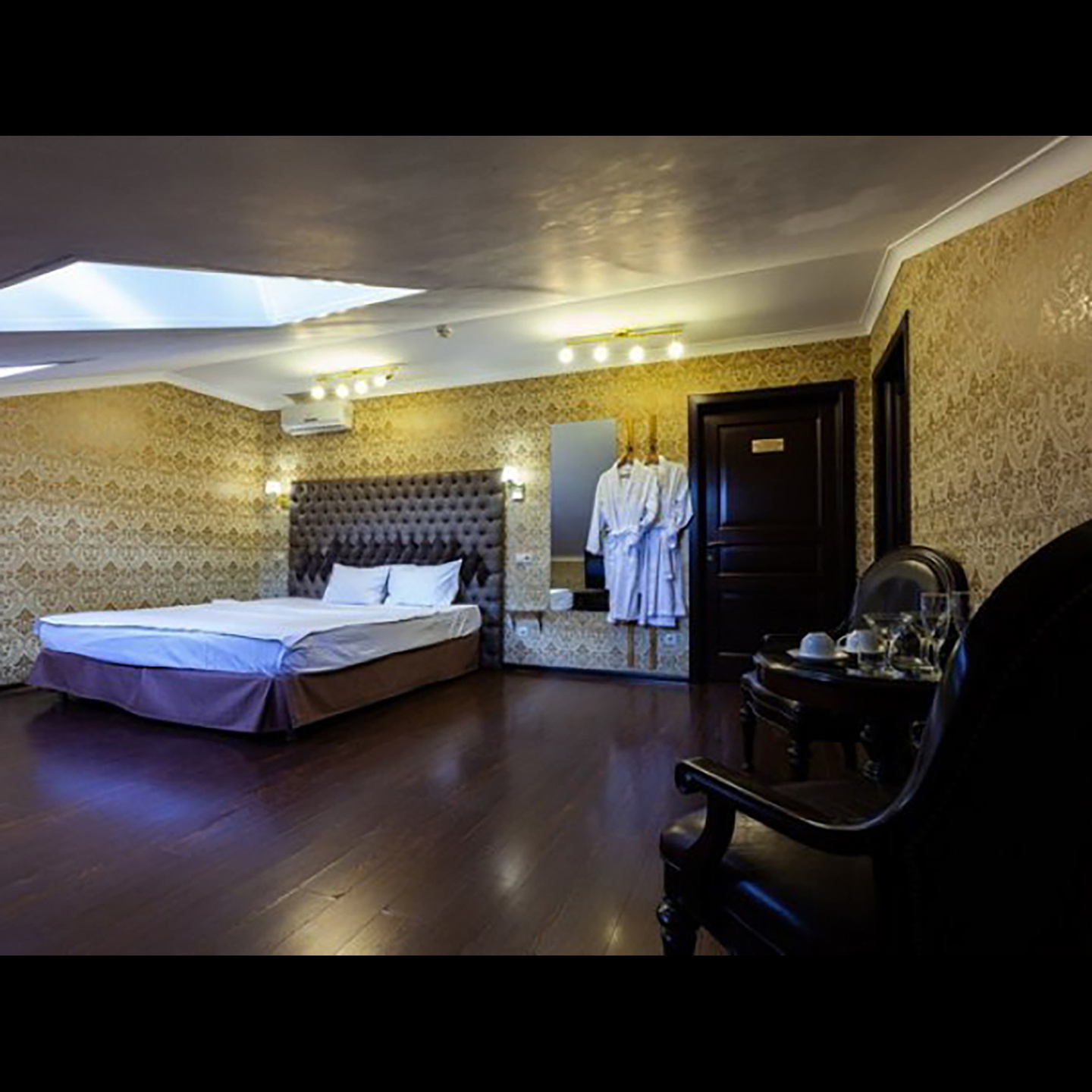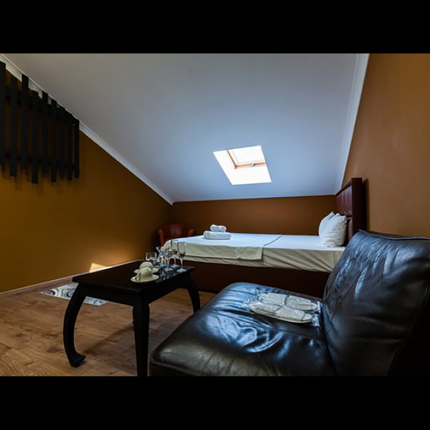 Апартаменты включают 10 помещений: 4 люкса в стиле хай-тек с прямоугольными двуспальными кроватями с кожаным изголовьем, мебелью из натуральных материалов и мансардными окнами; 2 стандарта — это вместительная комната в духе «ампир» и уютный уголок с чертами «минимализма»; 2 люкса с джакузи в разном цветовом наполнении: один в спокойной сине-голубой гамме, другой — в торжественной черно-золотой обстановке. Уникальный De Lux c освещением — имитацией звездного неба, зеркальным потолком, и английский люкс с мозаичным джакузи представлены в современном стиле «модерн» с элементами направления лофт. В каждом номере есть мини-бар. Возможно использование просторных помещений для проведения фотосессии, дружеских вечеринок и романтических свиданий влюбленных. Воспользоваться услугами отеля могут и новобрачные, роскошная мебель, мозаика и интерьерные детали в духе ампир и лучших традиций классики подарят уют и незабываемые впечатления посетителям.