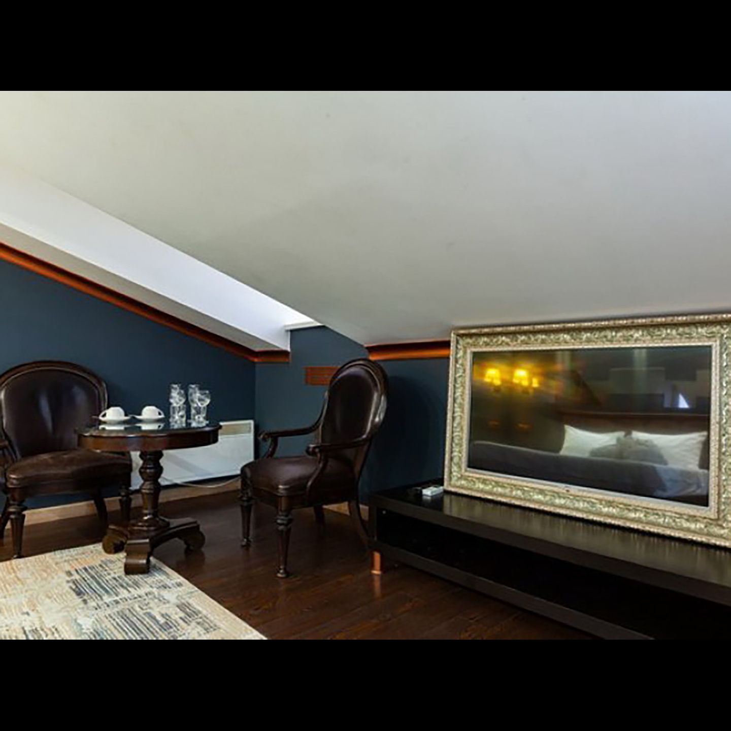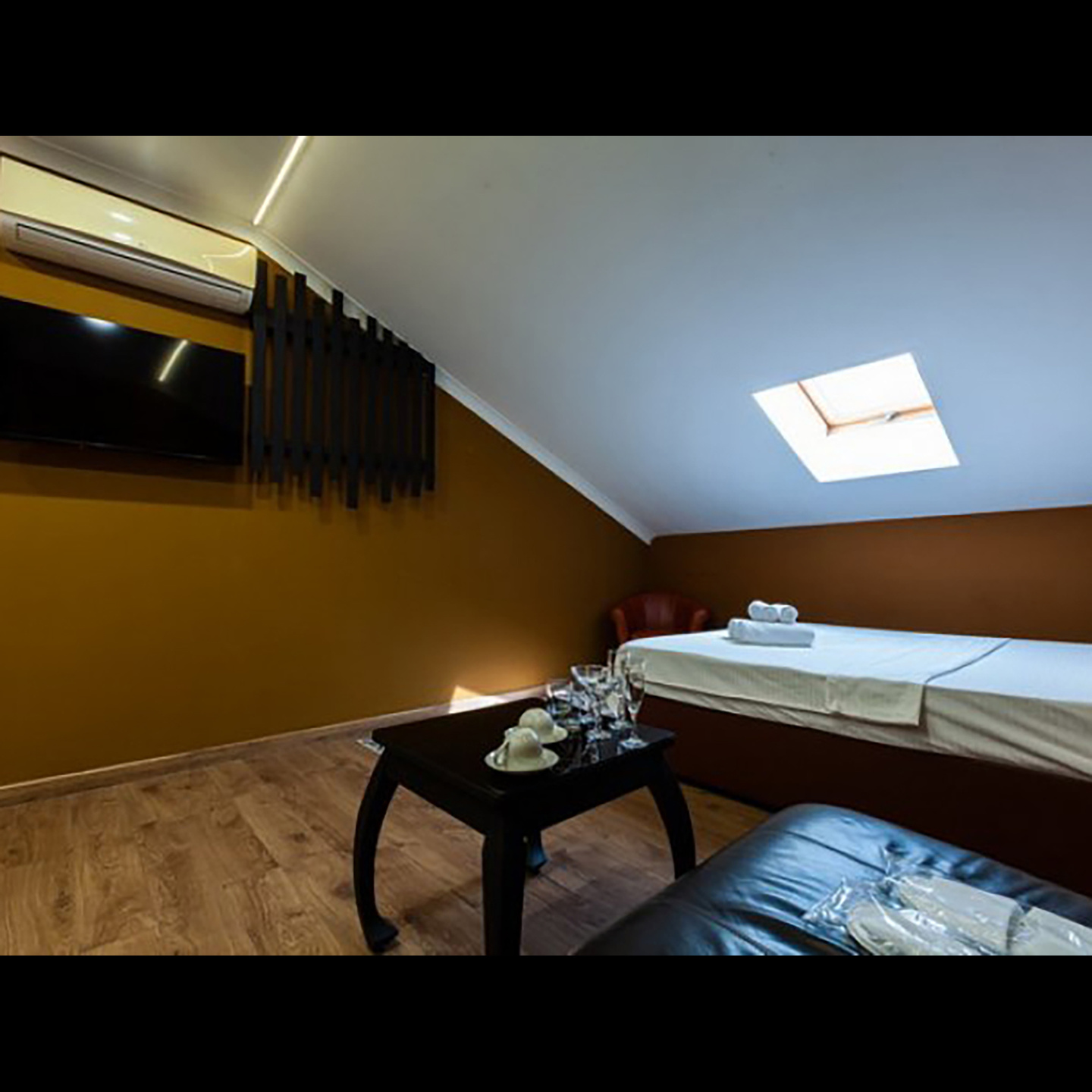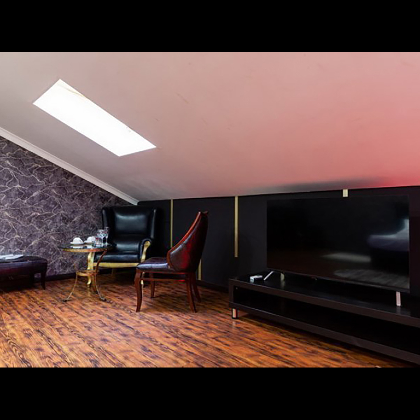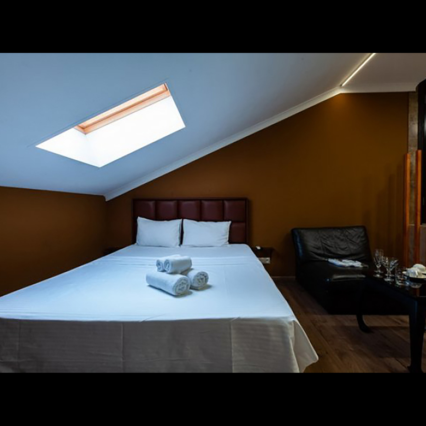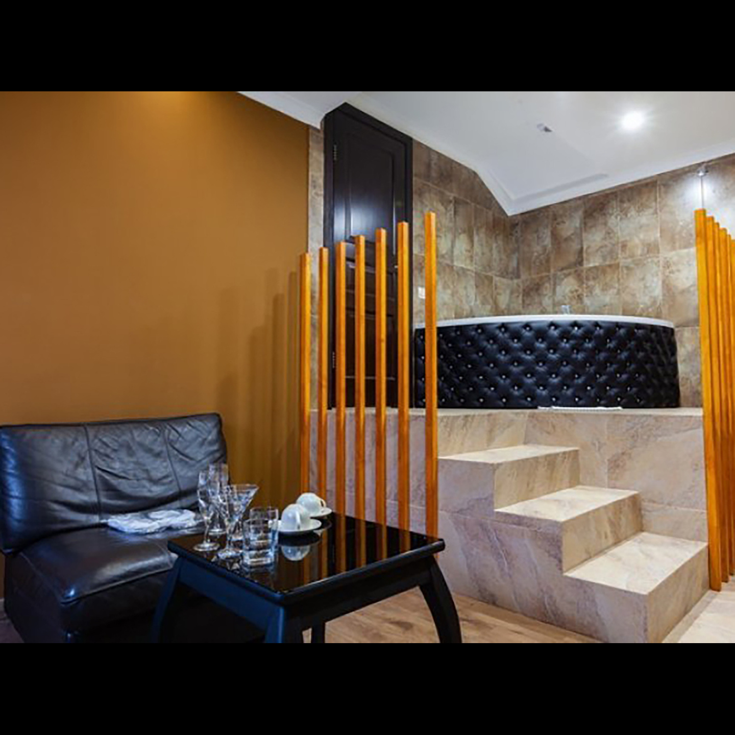 Апартаменты включают 10 помещений: 4 люкса в стиле хай-тек с прямоугольными двуспальными кроватями с кожаным изголовьем, мебелью из натуральных материалов и мансардными окнами; 2 стандарта — это вместительная комната в духе «ампир» и уютный уголок с чертами «минимализма»; 2 люкса с джакузи в разном цветовом наполнении: один в спокойной сине-голубой гамме, другой — в торжественной черно-золотой обстановке. Уникальный De Lux c освещением — имитацией звездного неба, зеркальным потолком, и английский люкс с мозаичным джакузи представлены в современном стиле «модерн» с элементами направления лофт. В каждом номере есть мини-бар. Возможно использование просторных помещений для проведения фотосессии, дружеских вечеринок и романтических свиданий влюбленных. Воспользоваться услугами отеля могут и новобрачные, роскошная мебель, мозаика и интерьерные детали в духе ампир и лучших традиций классики подарят уют и незабываемые впечатления посетителям.