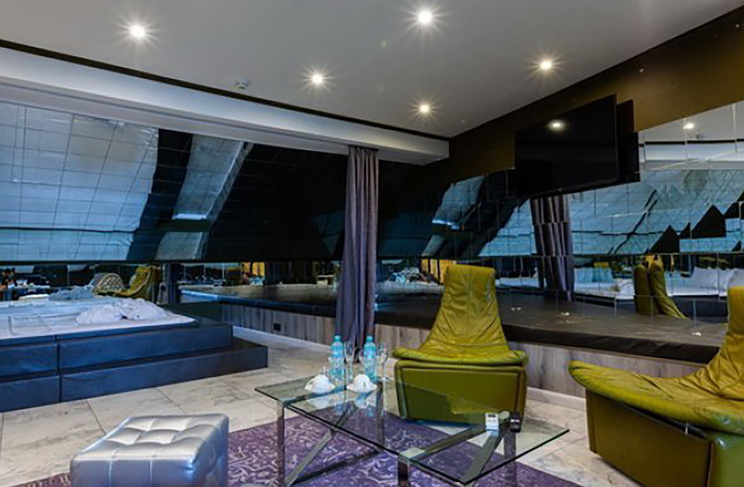 Все помещения с панорамным видом, оборудованы системами шумоизоляции и Wi-Fi. Постояльцам заведения доступно все, что требуется для краткосрочных встреч и длительного отдыха: парковка, чайник, телевизор, холодильник, фен, косметические и банные принадлежности. Возможна доставка еды в номер: чай и кофе бесплатно. Оплатить можно по безналичному расчету. Приезжим оформляются отчетные документы. Соблюдается конфиденциальность проживания.