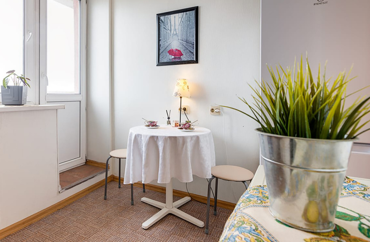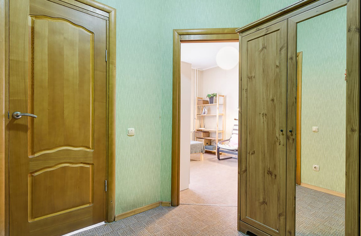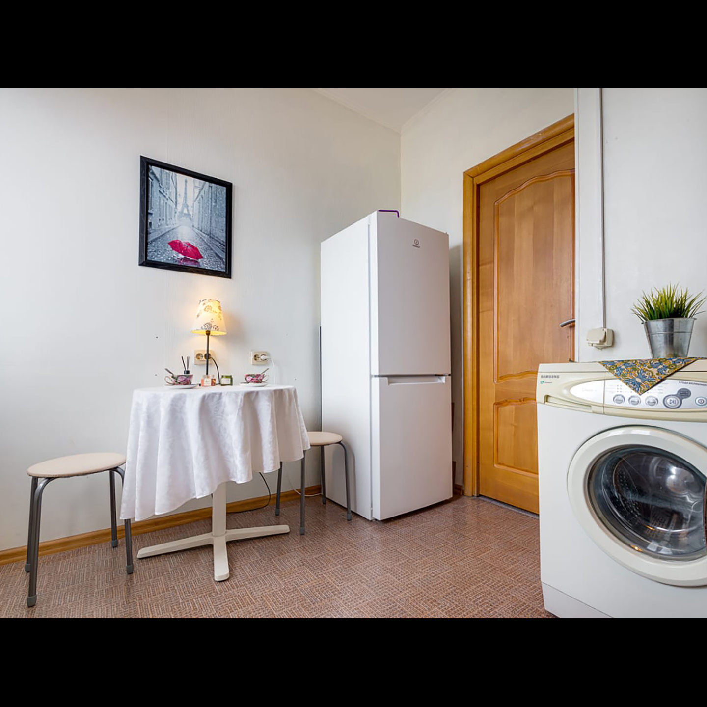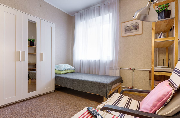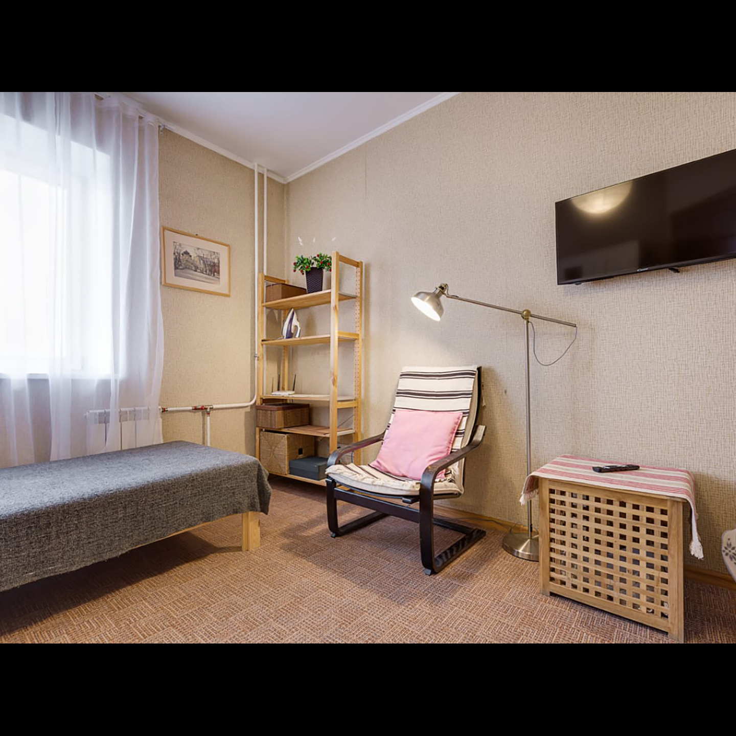 В квартире чистота и порядок, есть все необходимое для комфортного пребывания гостей. количество спальных мест может быть увеличено с двух (кровать) до четырех (кресло-кровать и полутораспальный диванчик). Для хранения одежды — платяной шкаф в комнате и гардероб с вешалками в прихожей.
