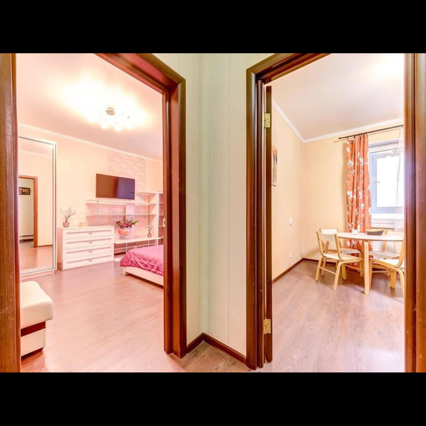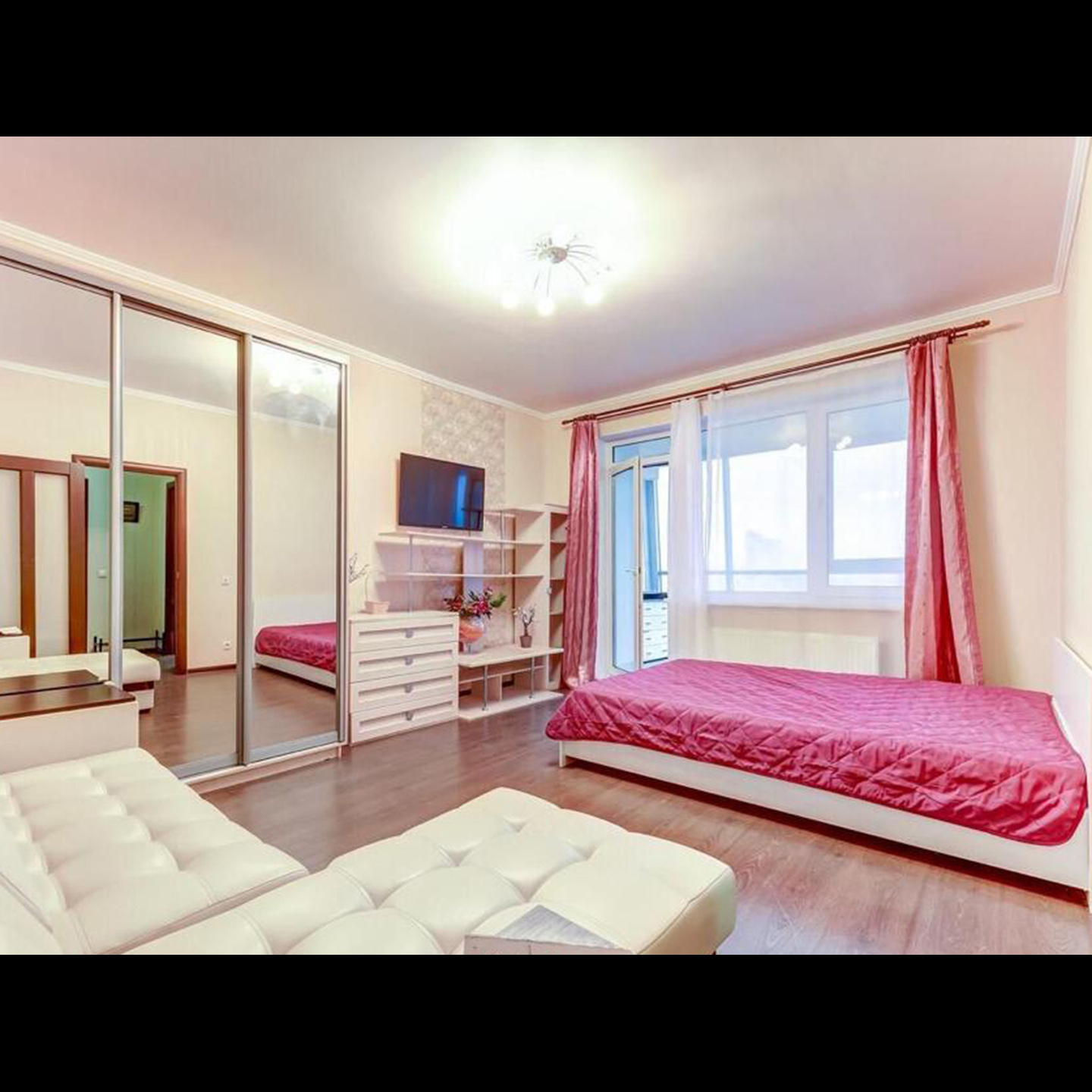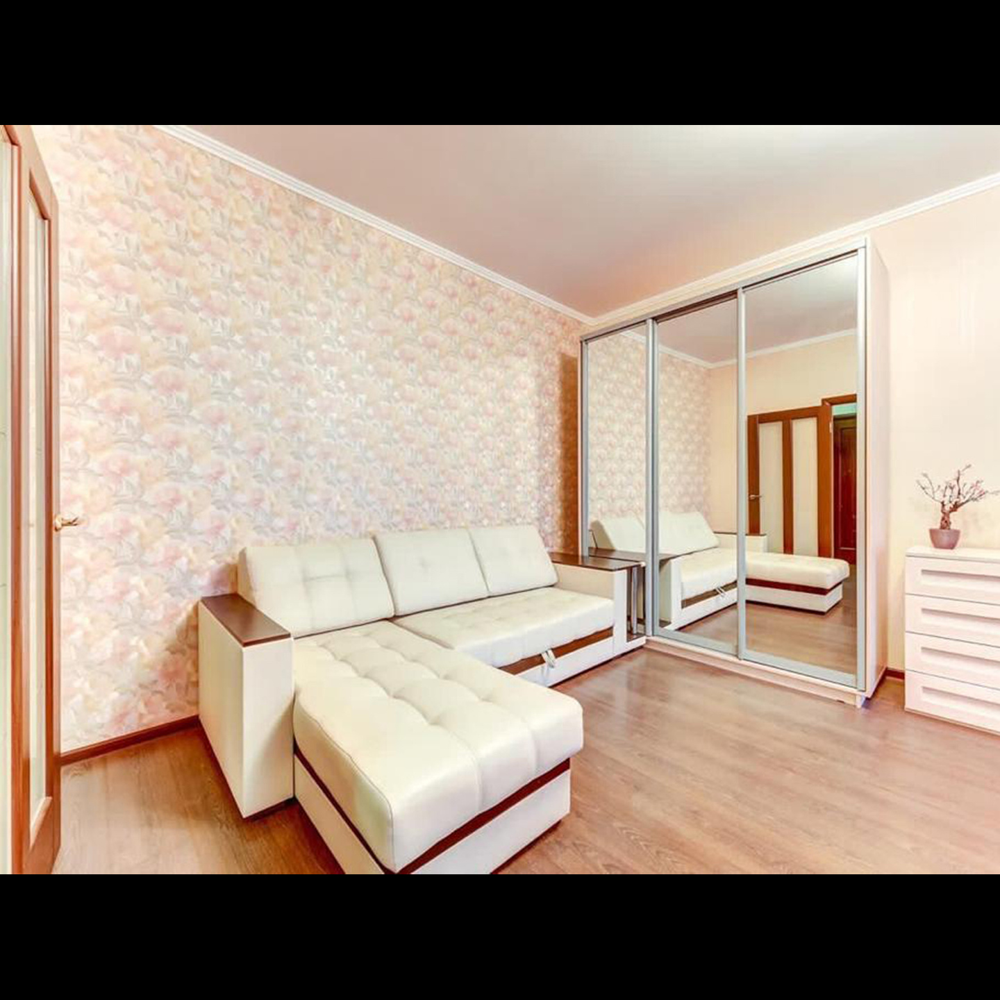 Гостиная объединяет комфорт и стиль. Здесь мягкий диван, на котором приятно расслабиться после долгого дня, шкаф для хранения ваших вещей и зеркало в полный рост. Для вечера кино или любимого сериала в комнате имеется телевизор, который станет отличным дополнением к вашему отдыху. Двуспальная кровать с удобным матрасом гарантирует вам хороший сон и полное восстановление сил. Это идеальное место для отдыха после насыщенного дня. Обилие естественного света и продуманная отделка создают атмосферу спокойствия.