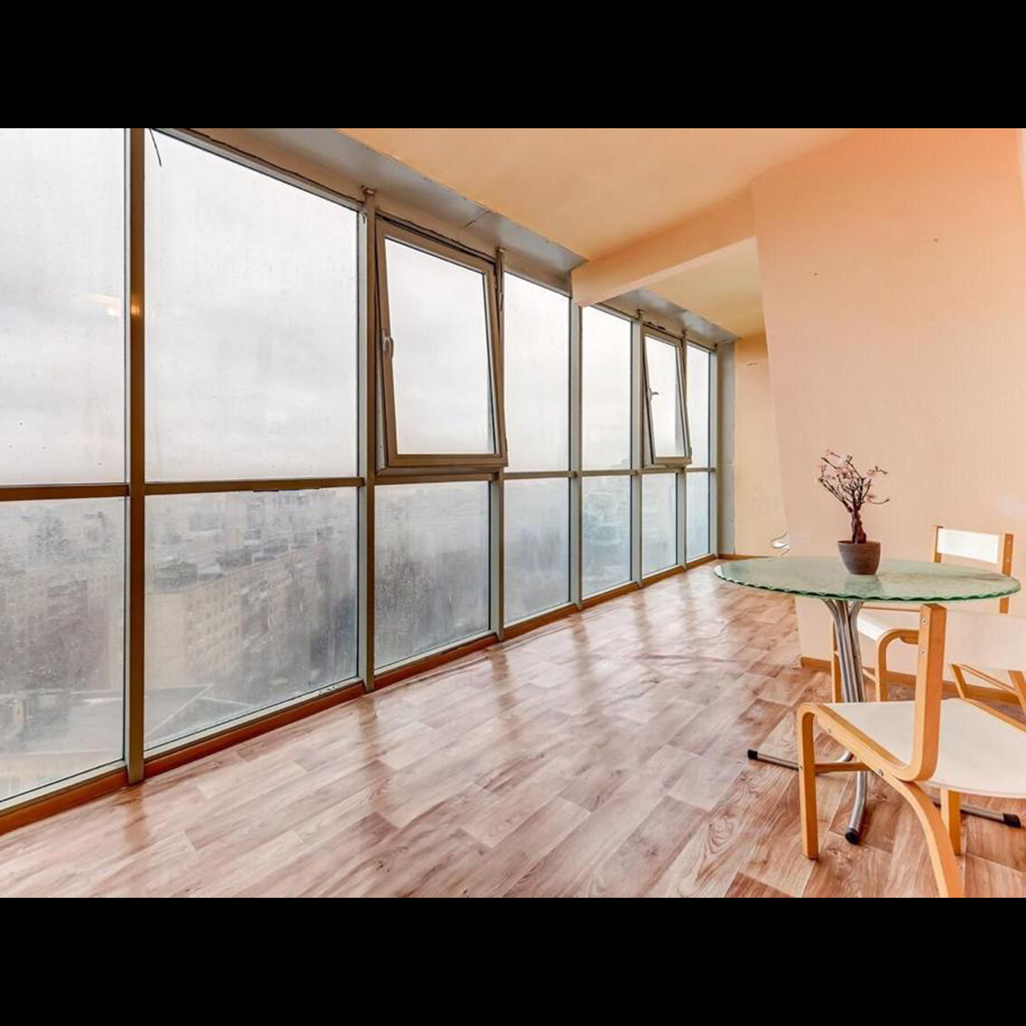 Интерьер оформлен в светлых тонах. Просторный балкон — настоящее украшение квартиры, с которого открывается живописный вид на город. Здесь вы сможете насладиться утренним кофе или вечерним бокалом вина, любуясь панорамой Невского района, либо устроить фотосессию