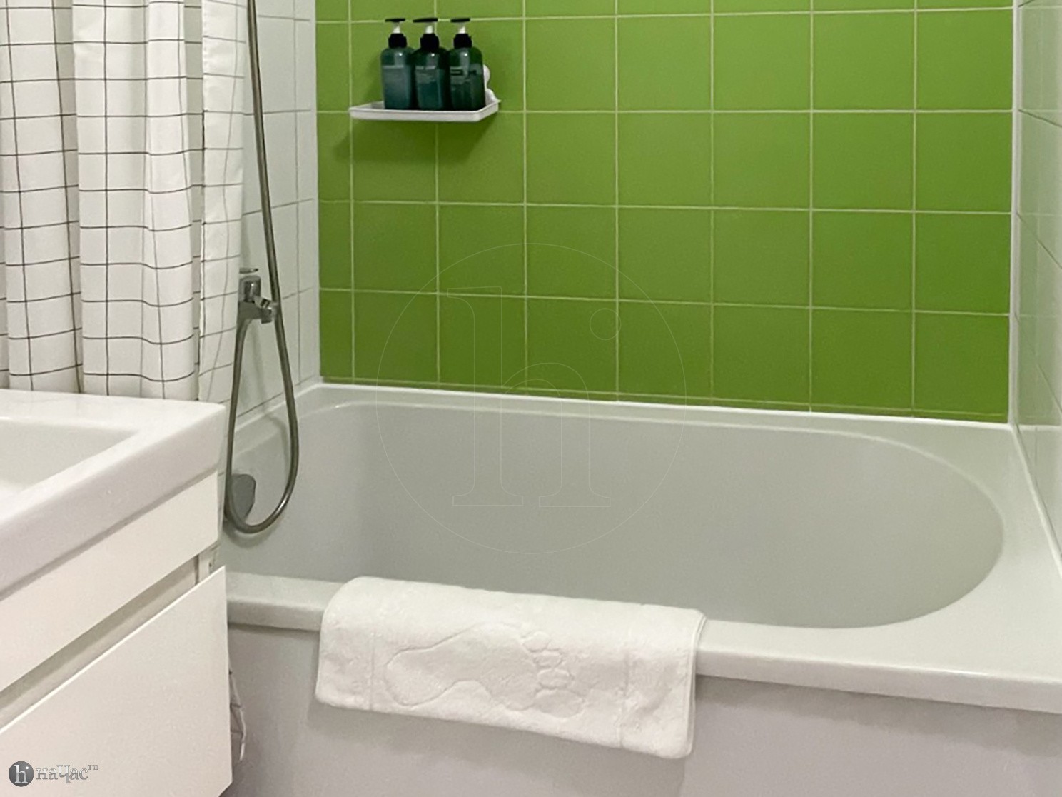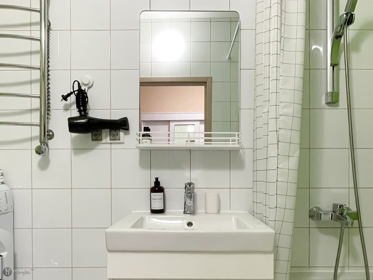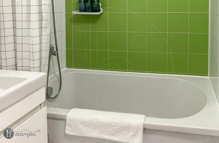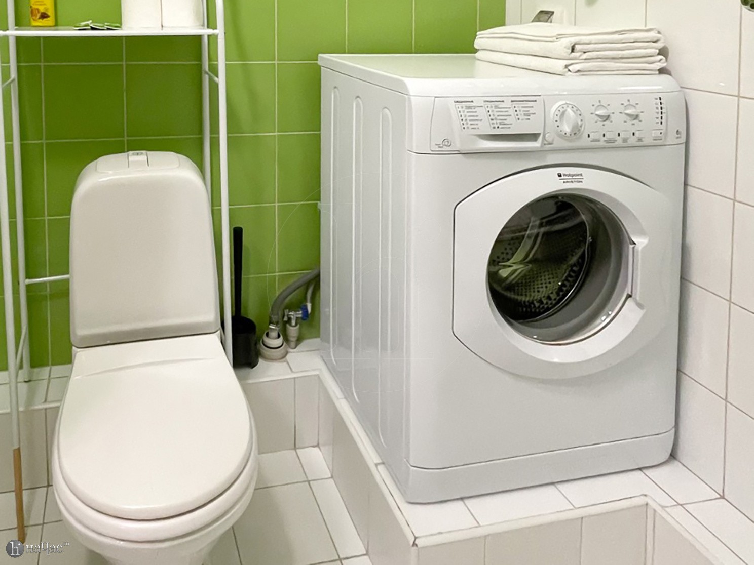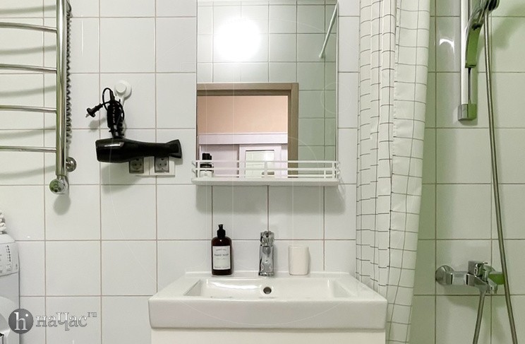 Привести себя в порядок гости могут, воспользовавшись ванной. В квартире имеется современная стиральная машинка, фен и утюг.