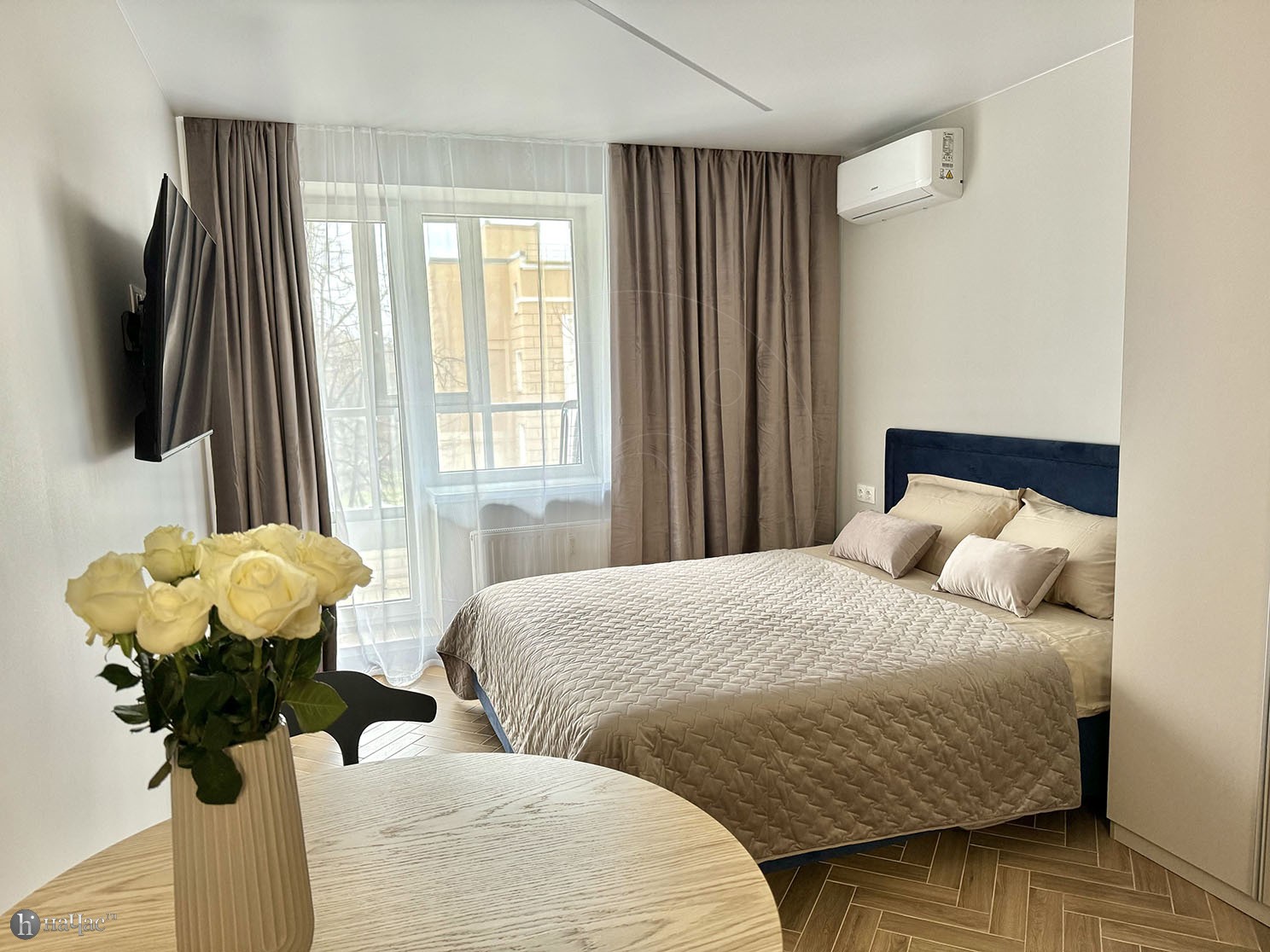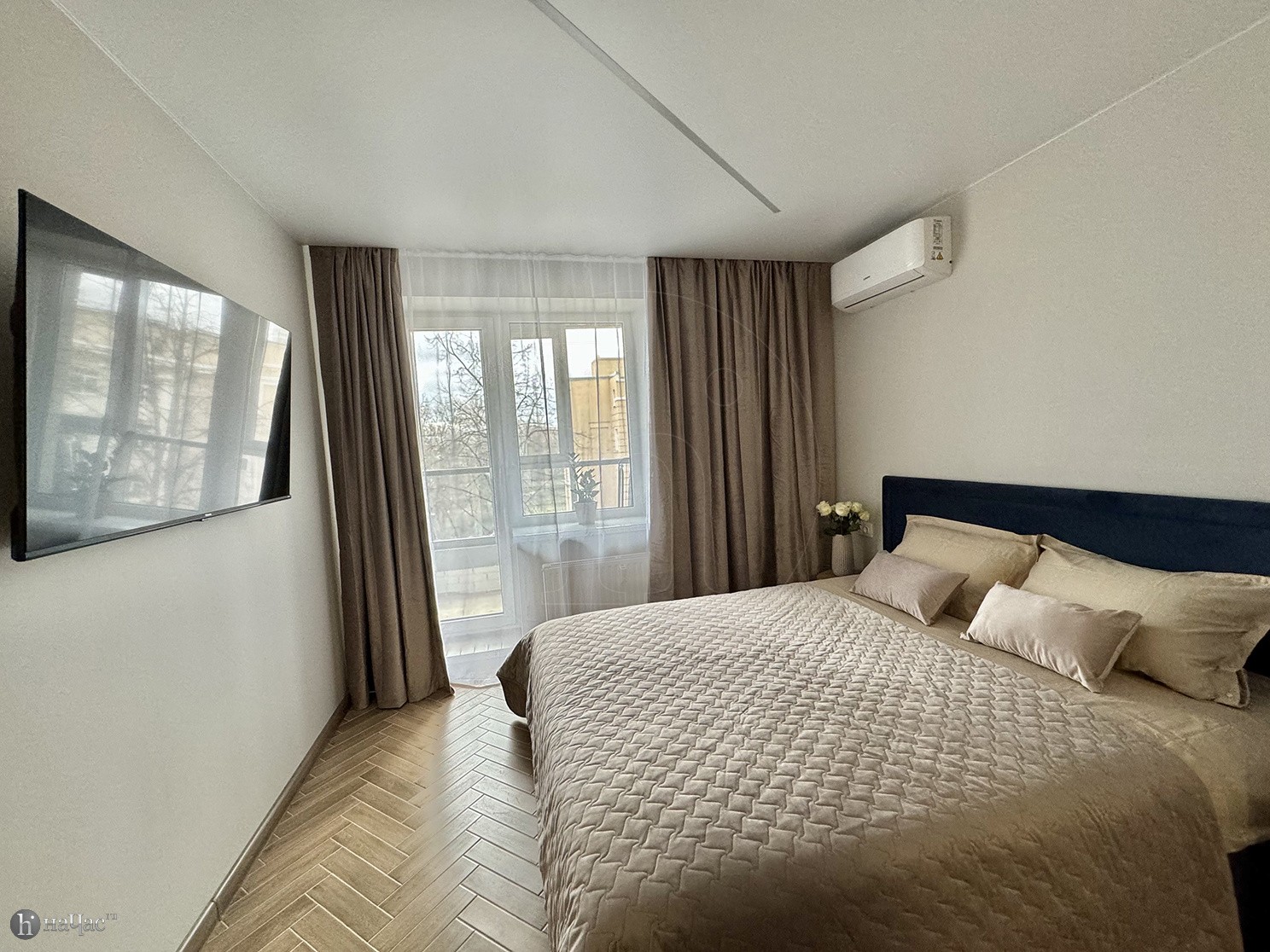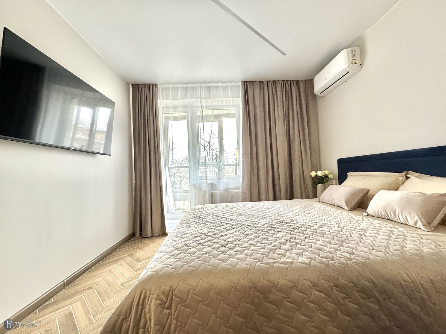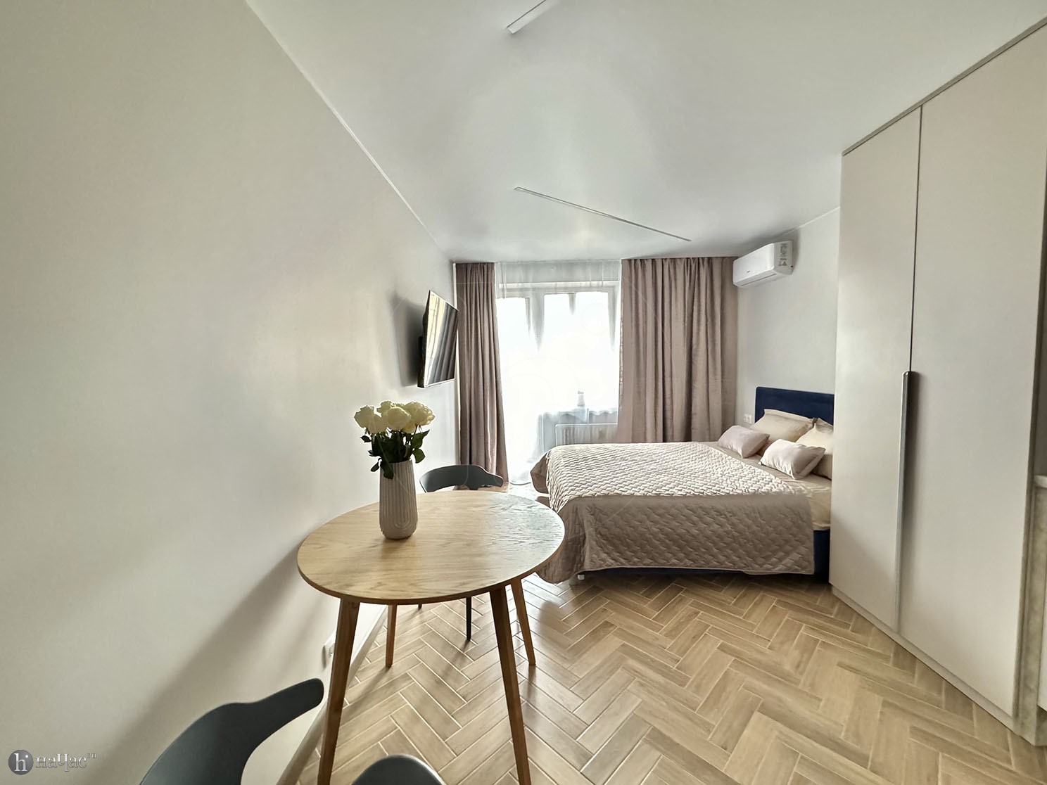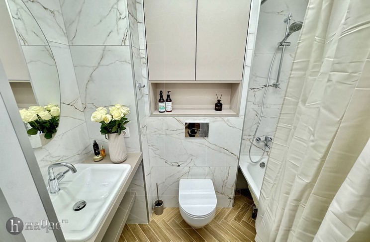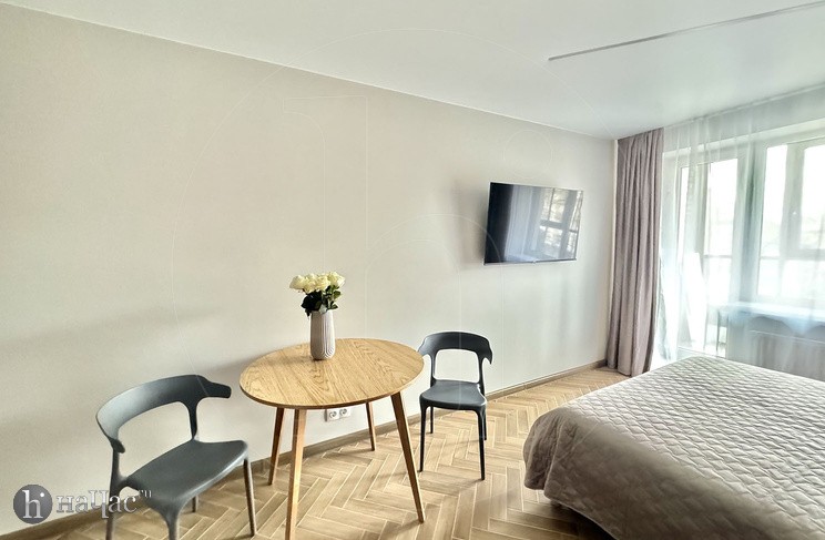 Здесь вы найдете все необходимое для комфортного проживания. Просторная спальня с удобной кроватью и современным телевизором со Smart TV позволит вам наслаждаться вашими любимыми фильмами и сериалами после насыщенного дня. Высококачественный американский матрас высотой 31 см обеспечит вам отличный сон и полный релакс после долгих прогулок по городу.