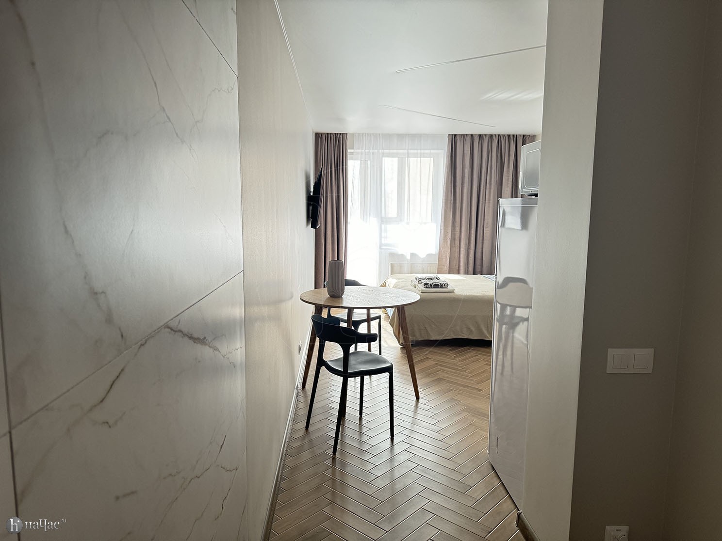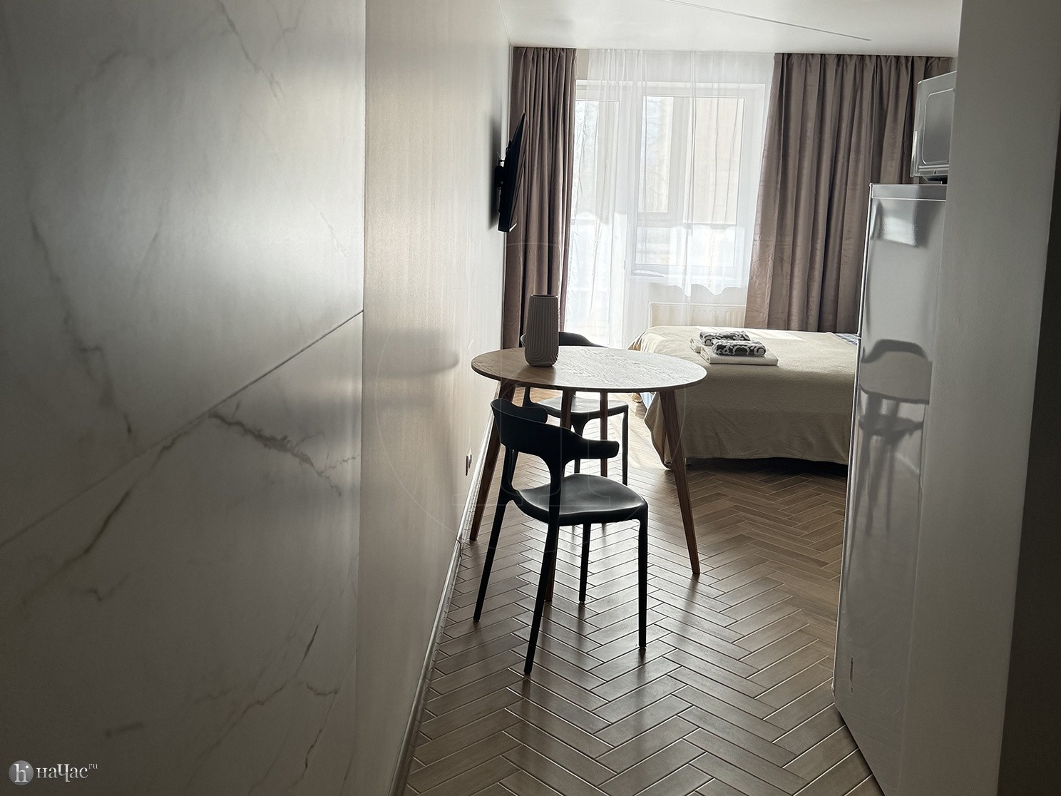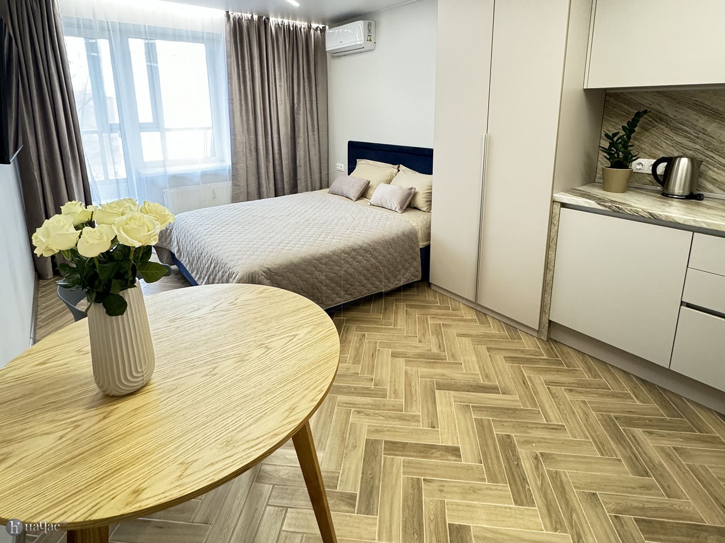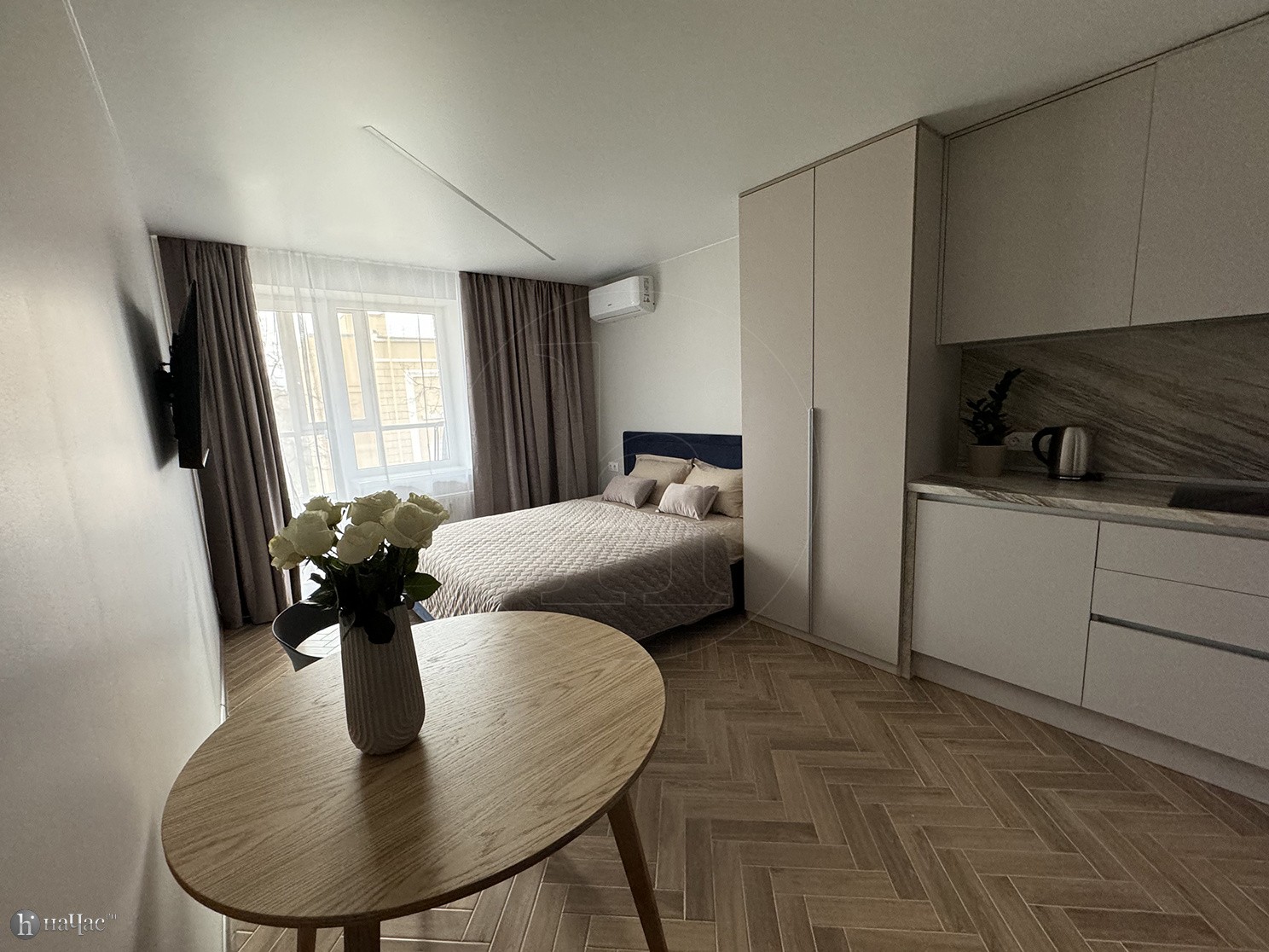 Здесь вы найдете все необходимое для комфортного проживания. Просторная спальня с удобной кроватью и современным телевизором со Smart TV позволит вам наслаждаться вашими любимыми фильмами и сериалами после насыщенного дня. Высококачественный американский матрас высотой 31 см обеспечит вам отличный сон и полный релакс после долгих прогулок по городу.