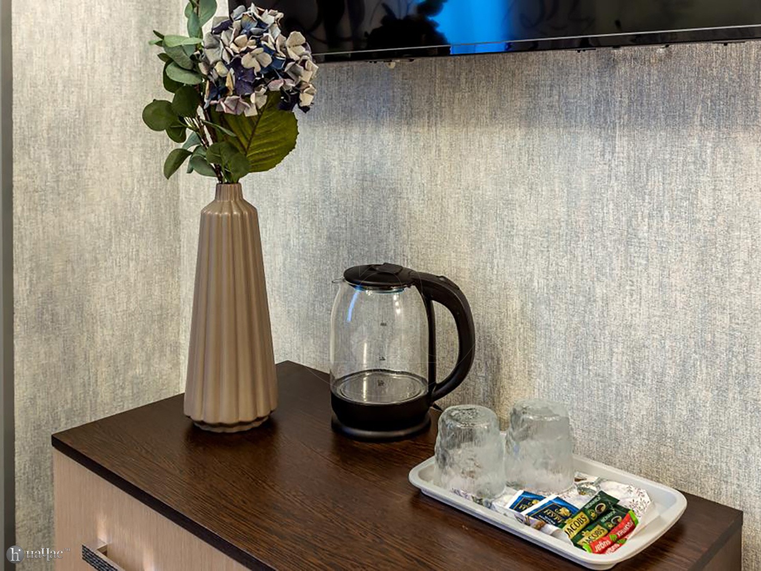 В каждом номере есть индивидуальный санузел, большой плоский телевизор, кондиционер (работает и на обогрев), холодильник, чайник. В некоторых номерах есть кофемашины Nespresso.