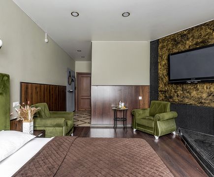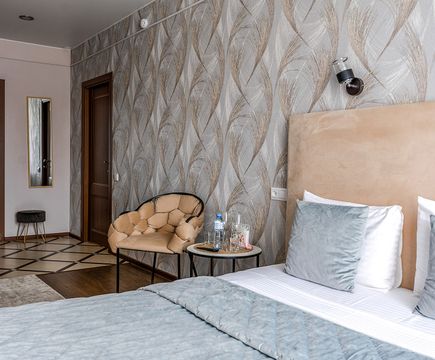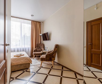 В этом небольшом, но чистом и аккуратном отеле можно снять комфортабельный номер от нескольких часов до нескольких дней. В номерах гостей ждут все условия для отдыха после утомительной дороги — удобная мебель и телевизор. Каждый из 7 номеров в мини-отеле имеет собственный санузел, где гости найдут необходимые банные и туалетные принадлежности.