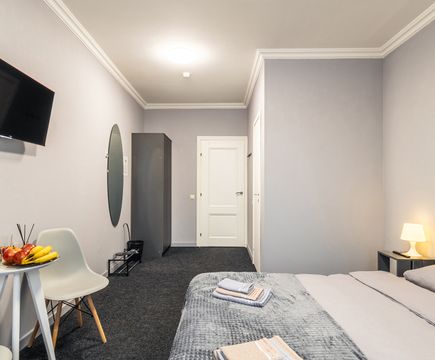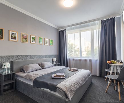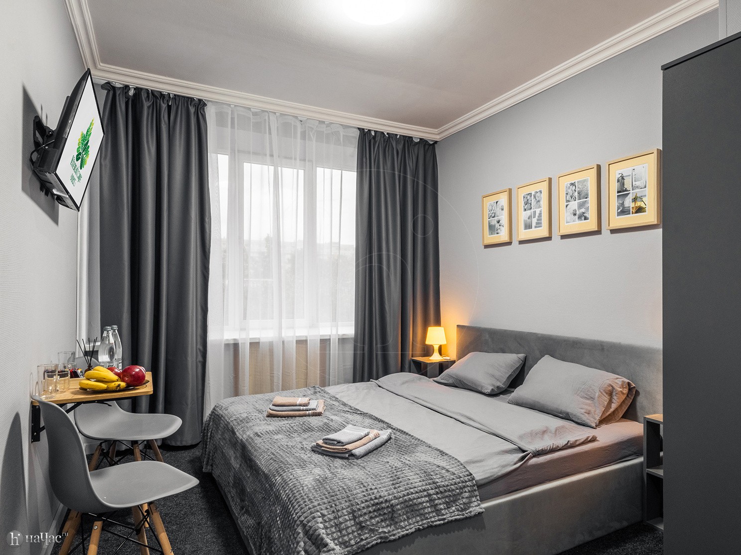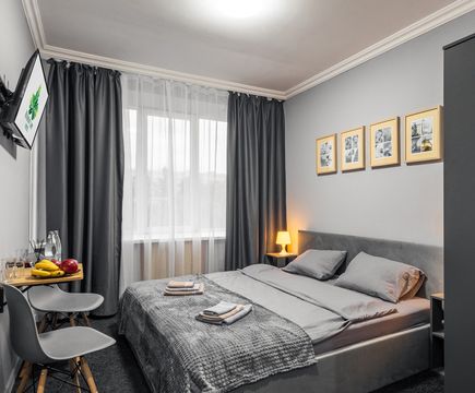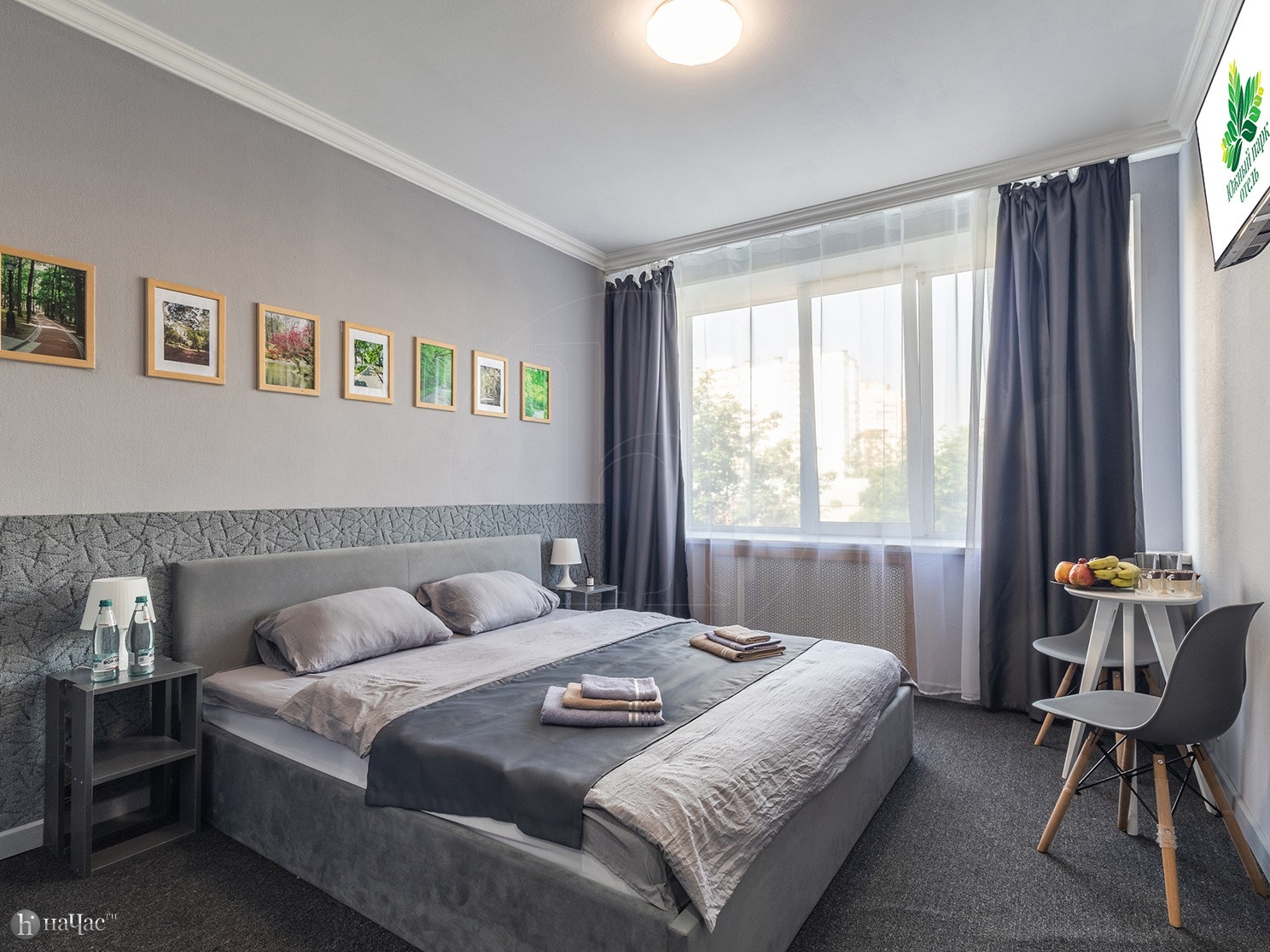 К вашим услугам — элегантные номера категорий Стандарт и Люкс, в каждом из которых продумана каждая деталь для вашего удобства. Для тех, кто ищет особенного уединения и релаксации, мы с гордостью предлагаем роскошный номер Люкс с сауной. А если вы желаете расширить горизонты удовольствия, всего в нескольких шагах от отеля вас ждет превосходный банный комплекс с просторным бассейном.